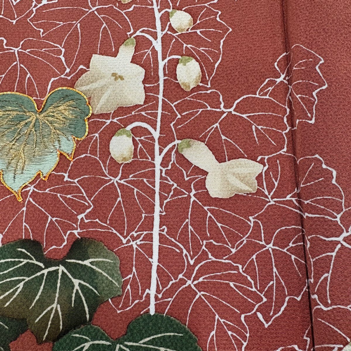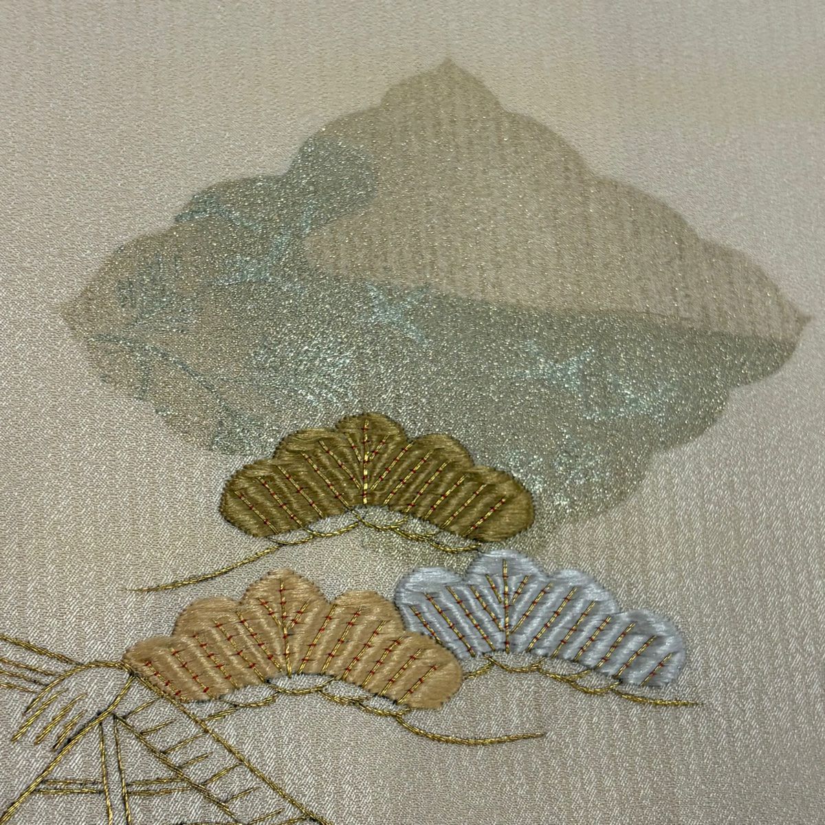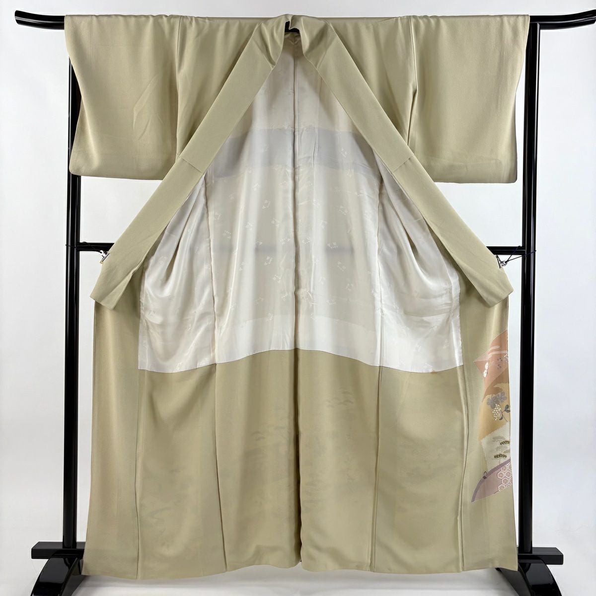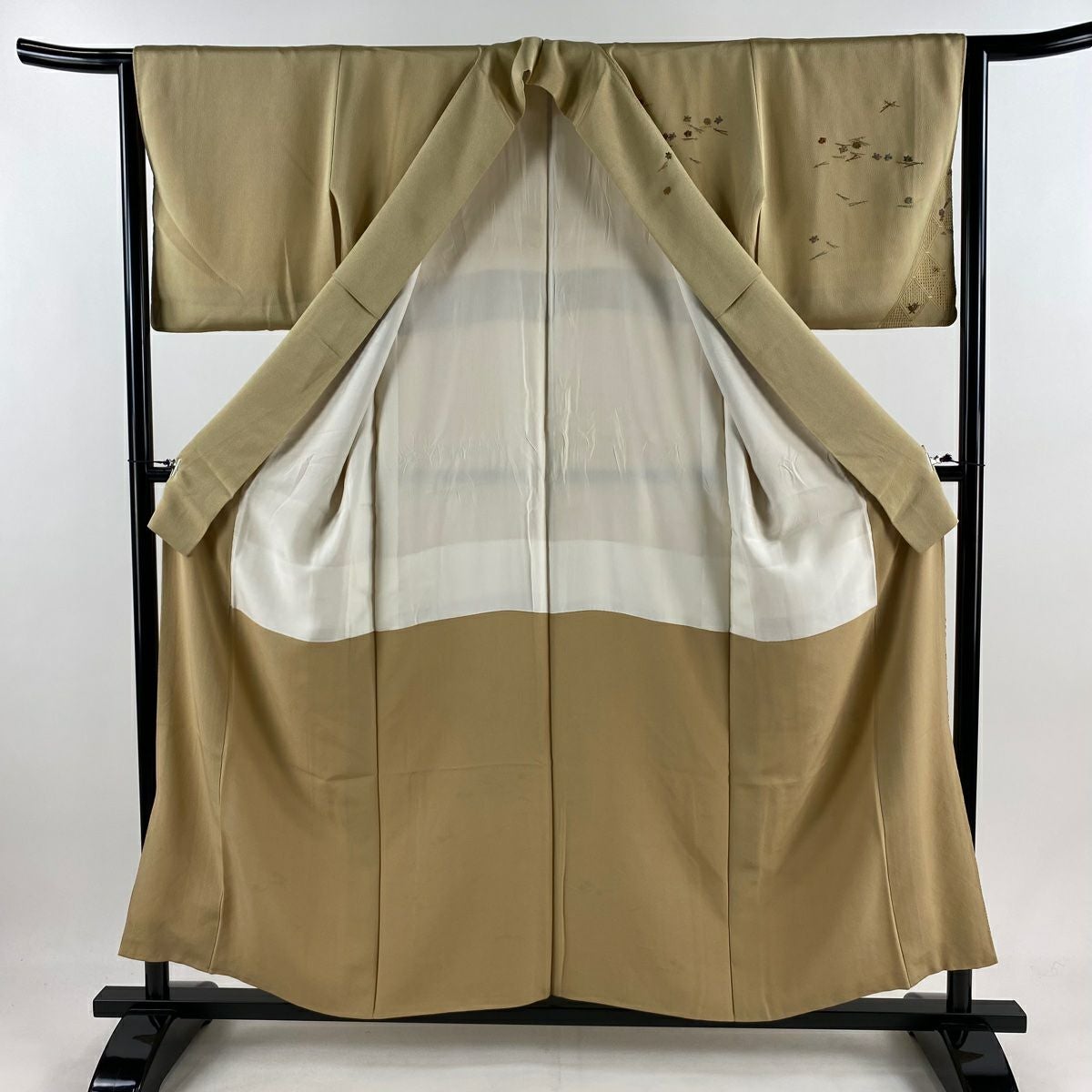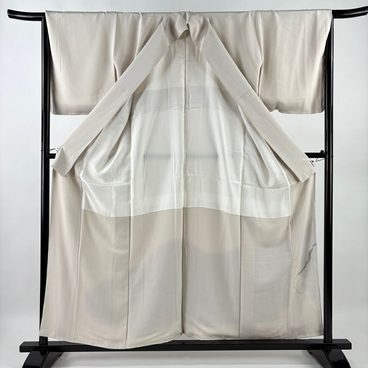 【在庫一掃】 付下げ 身丈150cm 裄丈62.5cm S 袷 かんざし 葉 刺繍 金糸 ベージュ 正絹 秀品 一つ紋