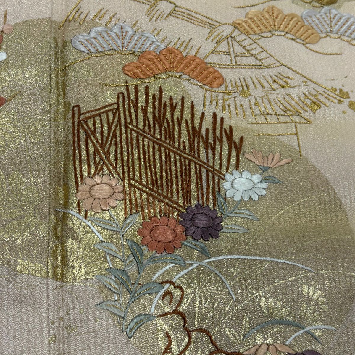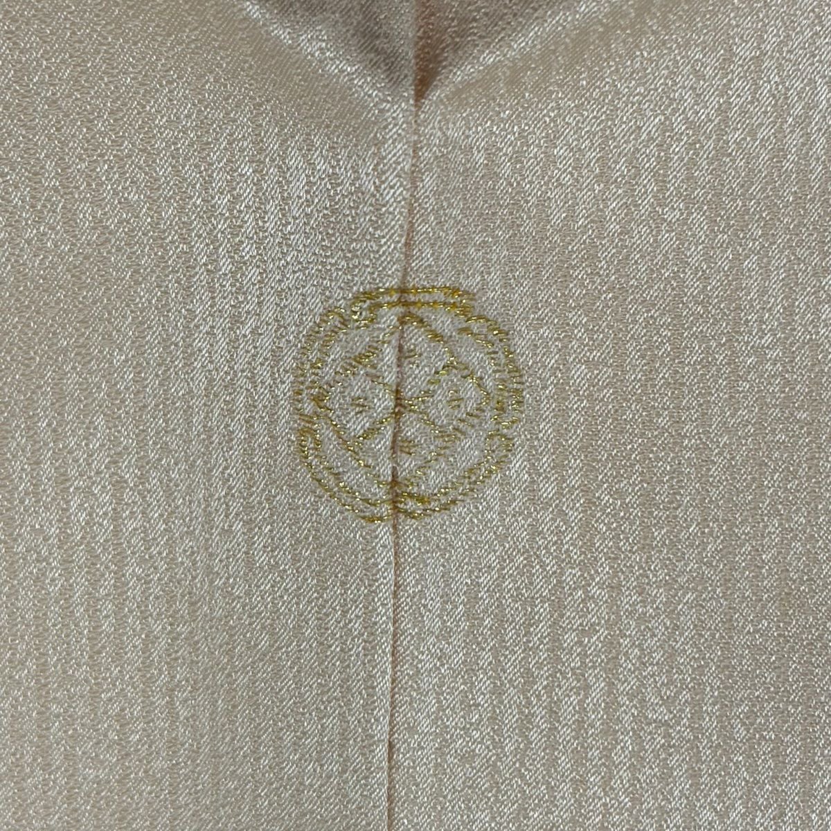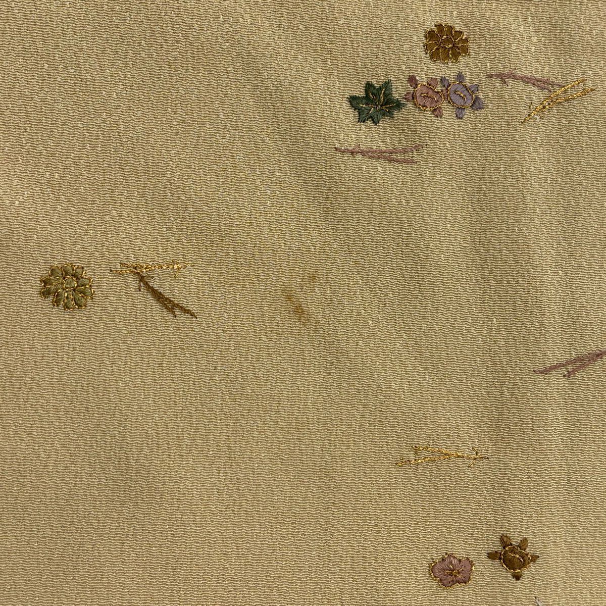 【在庫一掃】 付下げ 身丈164cm 裄丈64cm M 袷 紬地 花唐草 有職文様 刺繍 金糸 ピンクベージュ 正絹 秀品