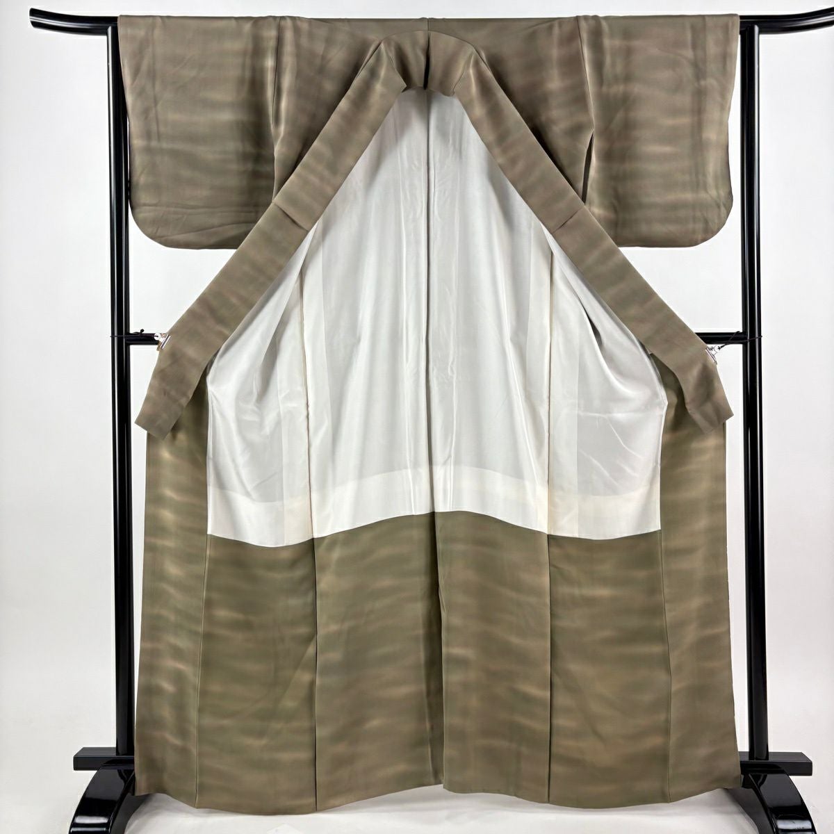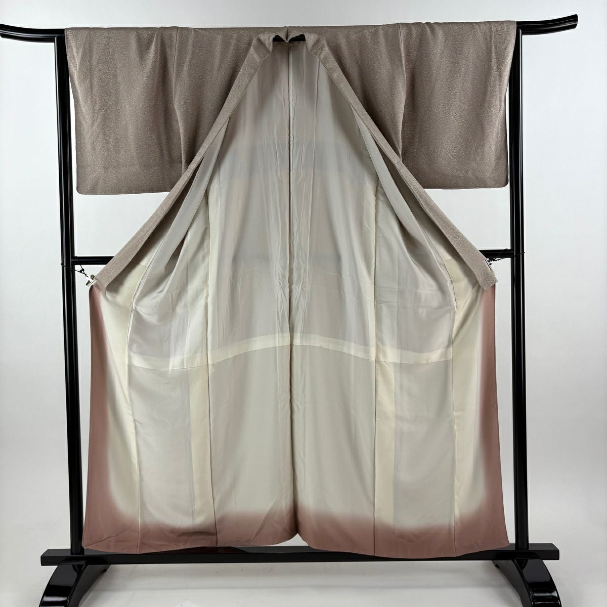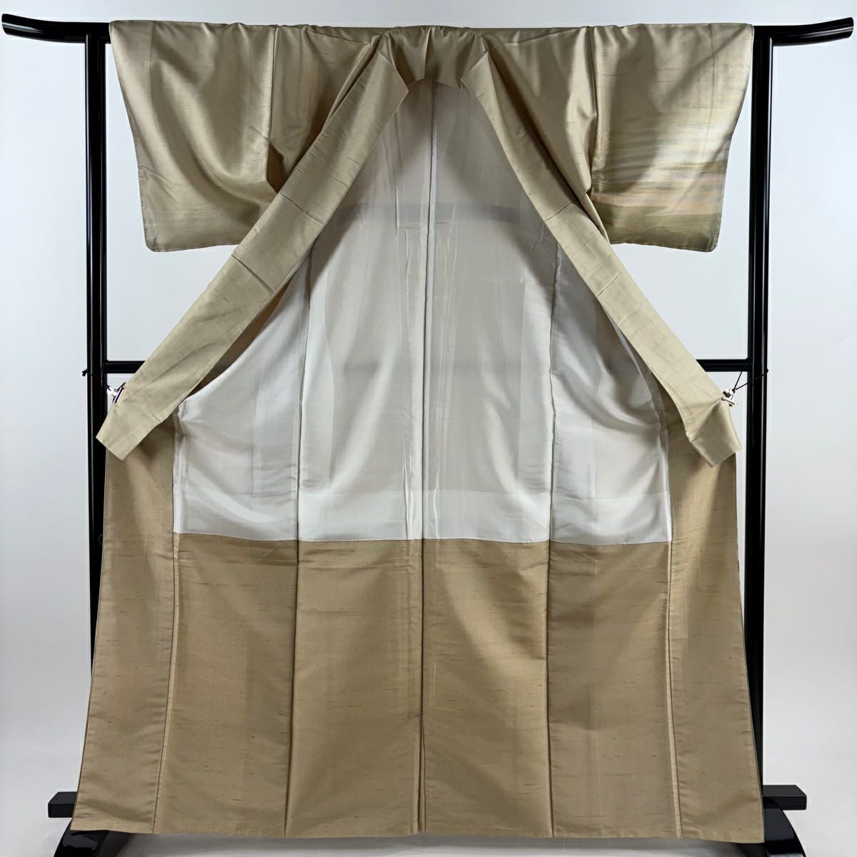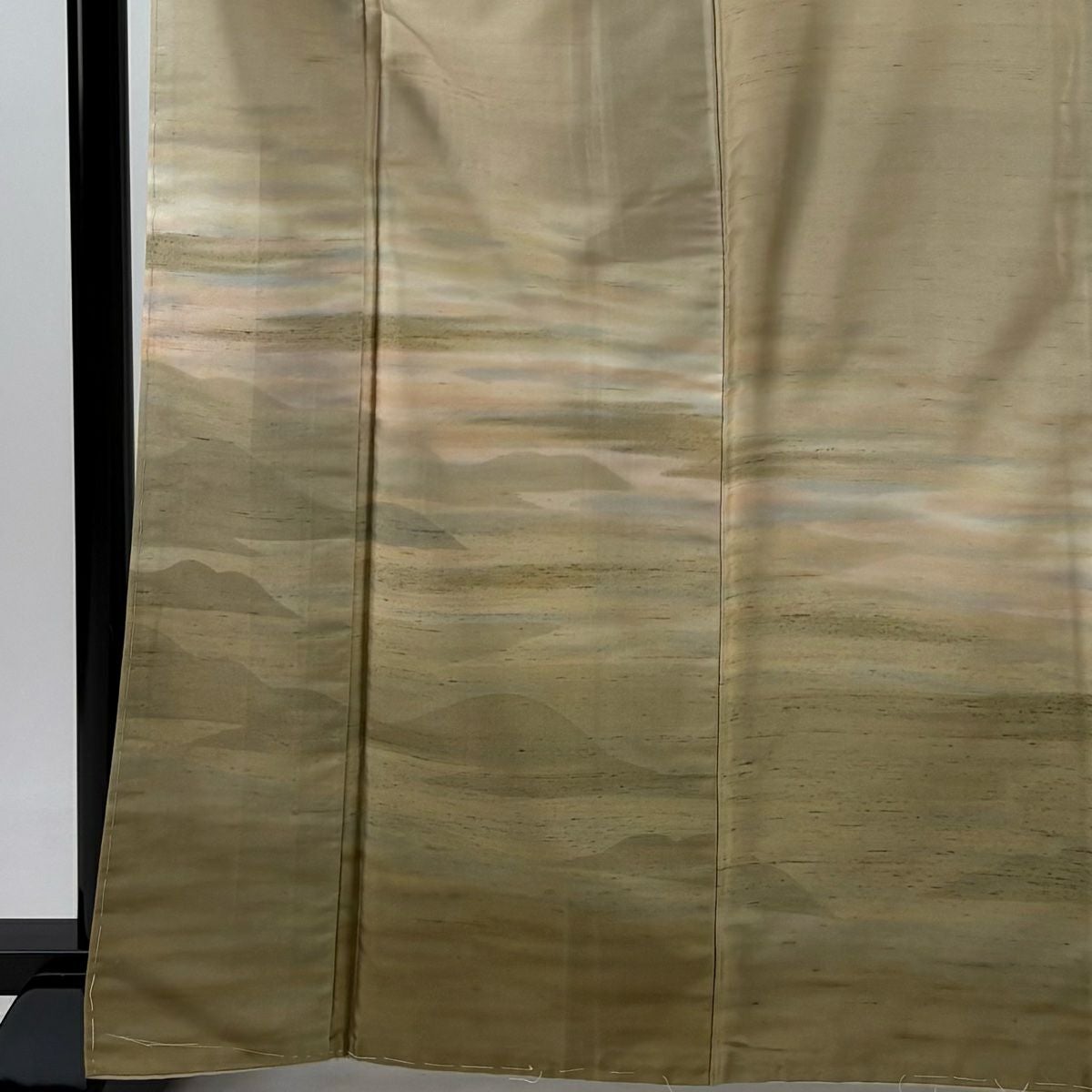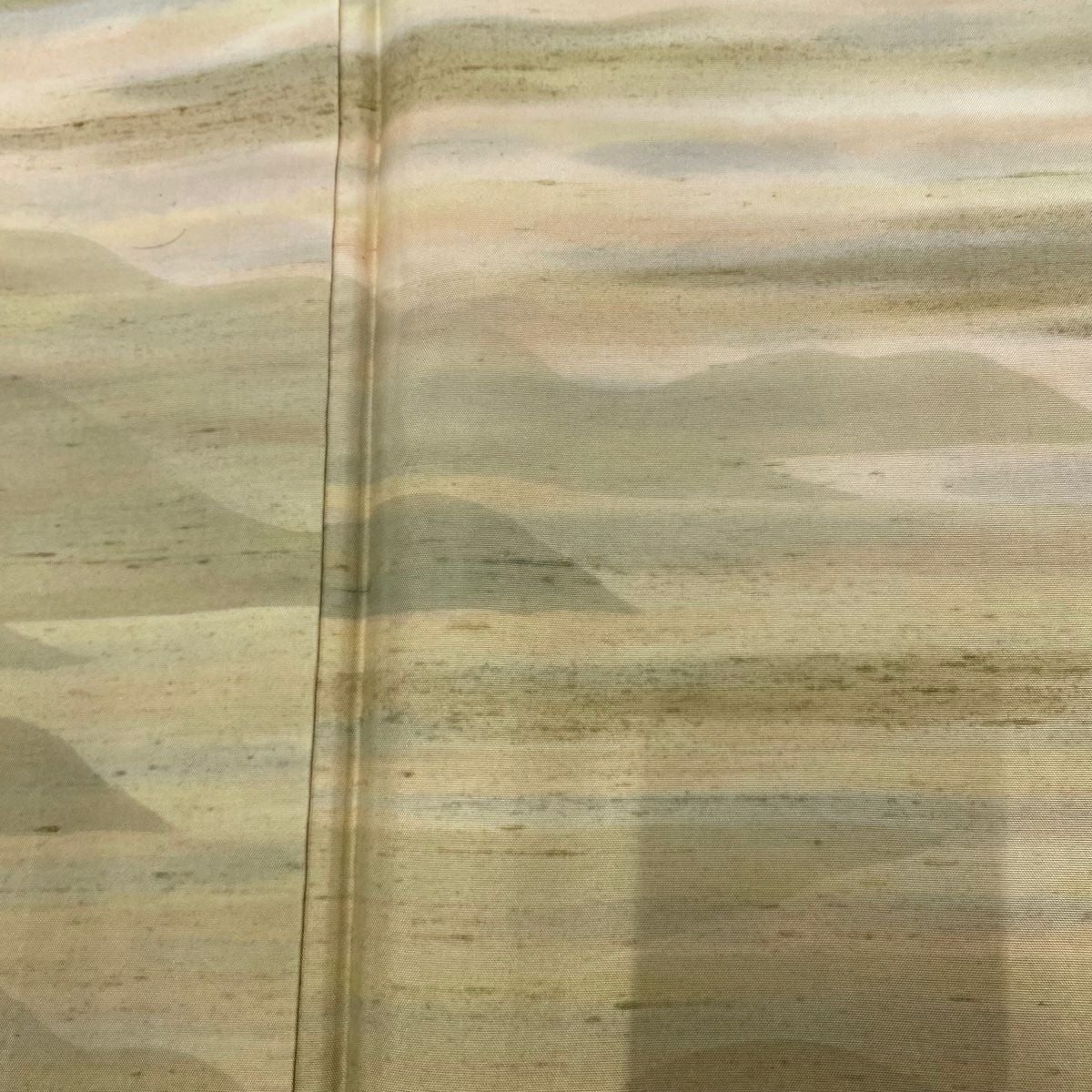 【在庫一掃】 【美品】 付下げ 身丈166.5cm 裄丈62cm S 袷 紬地 山並み 霞 ぼかし ベージュ 正絹 秀品