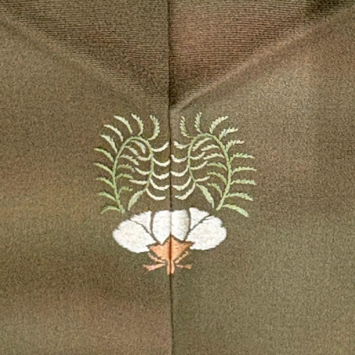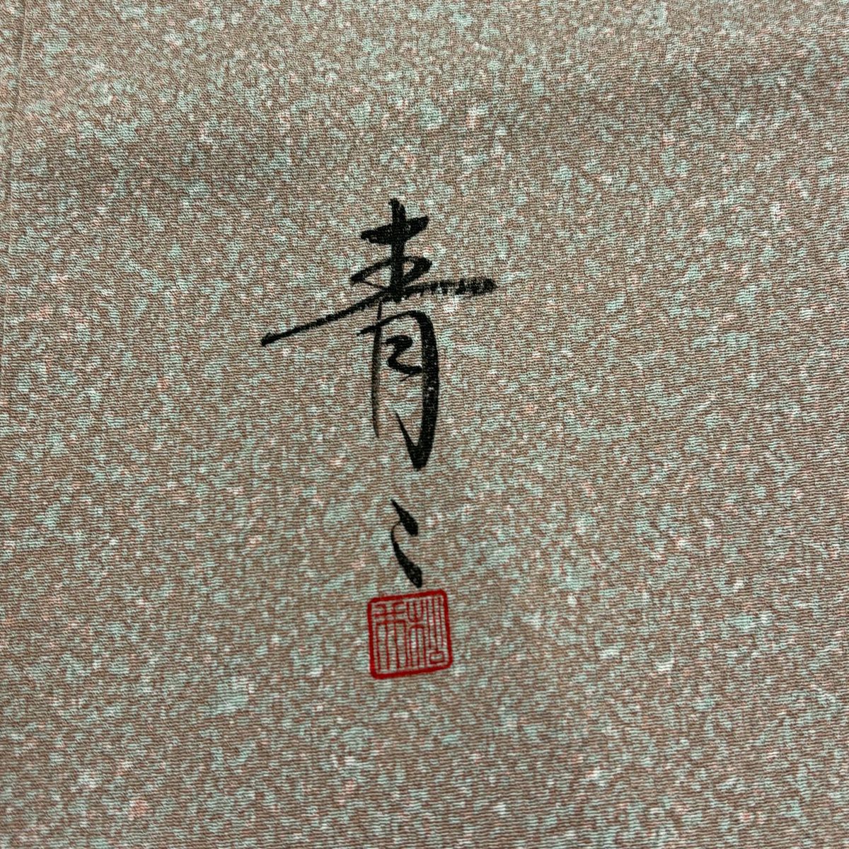【在庫一掃】 付下げ 身丈156cm 裄丈65.5cm M 袷 二代目清次郎 落款あり 樹木 山 ぼかし 茶緑色 正絹 秀品