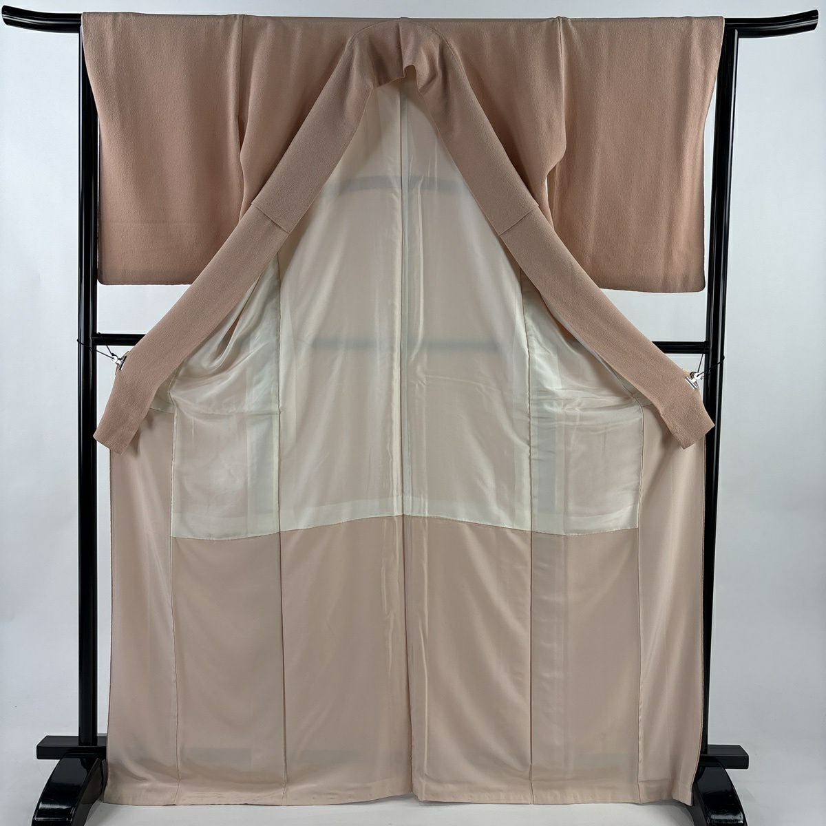 色留袖 身丈161.5cm 裄丈63cm S 袷 ふき綿仕立て 辻が花 縮緬 絞り ピンクベージュ 正絹 秀品 三つ紋