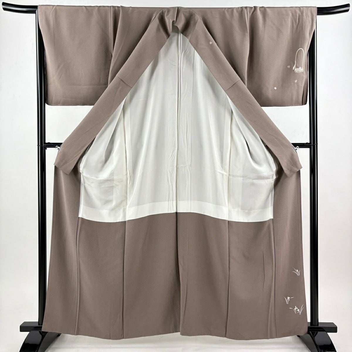 【美品】 道行 身丈105cm 裄丈62.5cm S 和装コート 千代田衿 鈴乃屋 草花 橋 ぼかし ベージュ 正絹 秀品