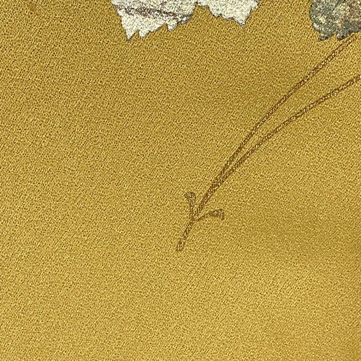 訪問着 身丈159.5cm 裄丈66.5cm M 袷 TOKI志すい 落款あり 鏡裏文 蝶 金銀彩 ぼかし 山吹茶色 正絹 秀品