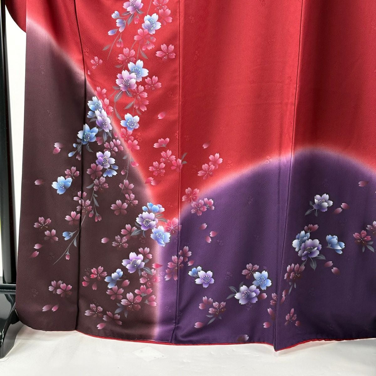 【美品】 振袖 身丈167cm 裄丈66cm M 袷 袋帯フルセット 落款あり 藤 花びら 金彩 染め分け 赤紫 正絹 秀品