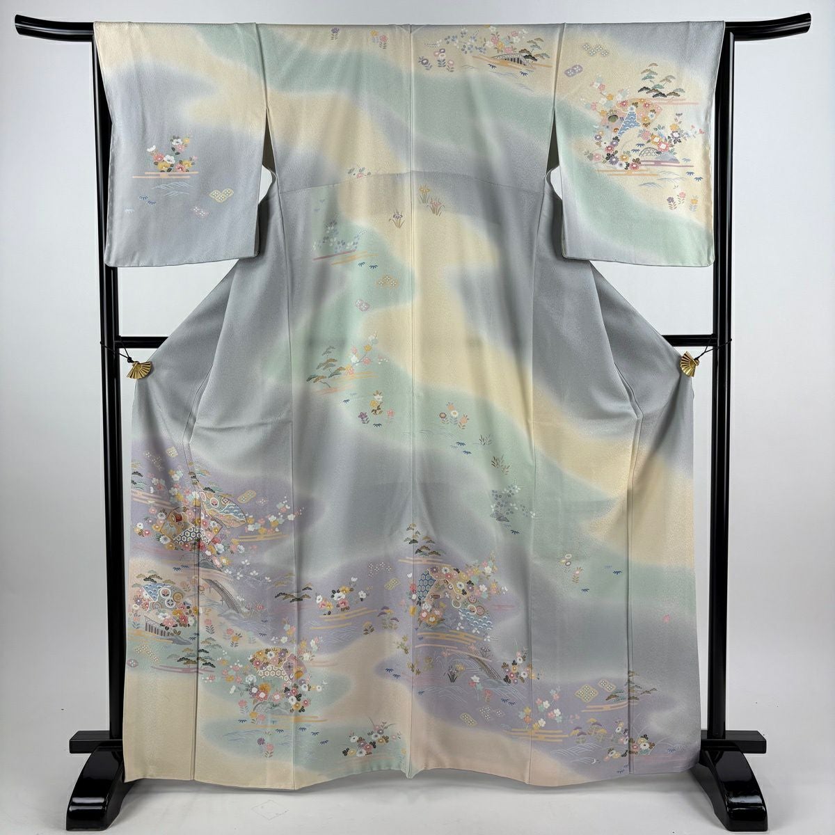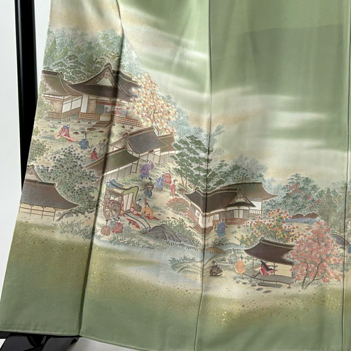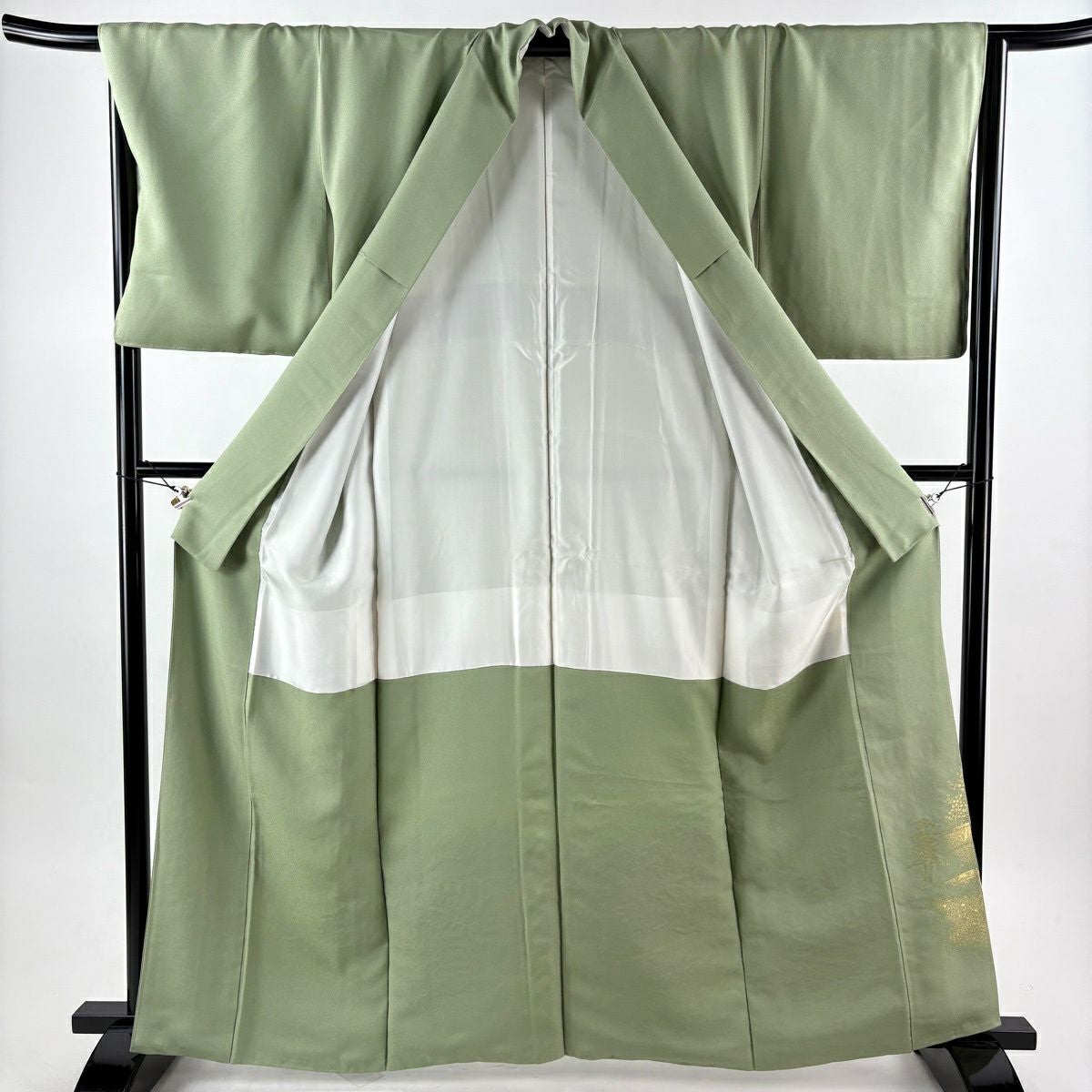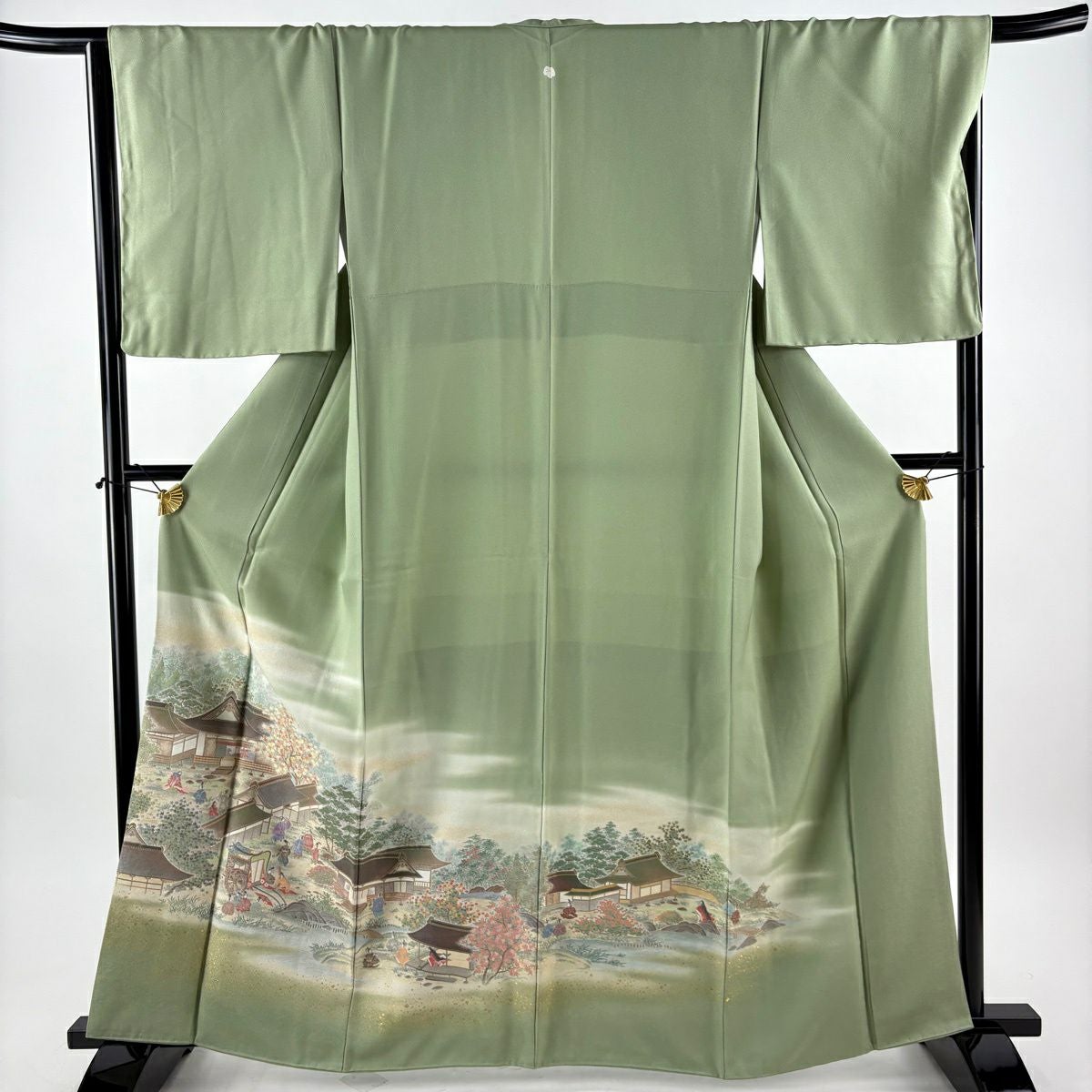 【美品】 色留袖 身丈156.5cm 裄丈68cm L 袷 阿部佳雪 家屋 枝梅 染め分け ぼかし 薄緑 正絹 秀品 三つ紋