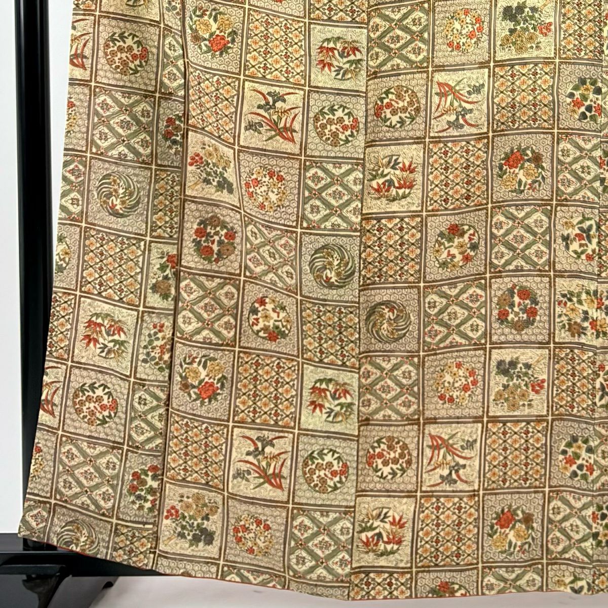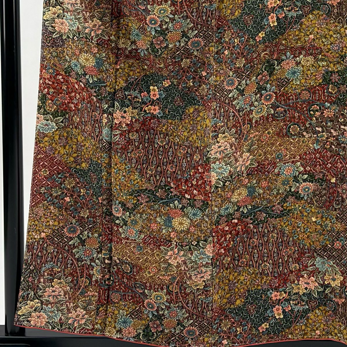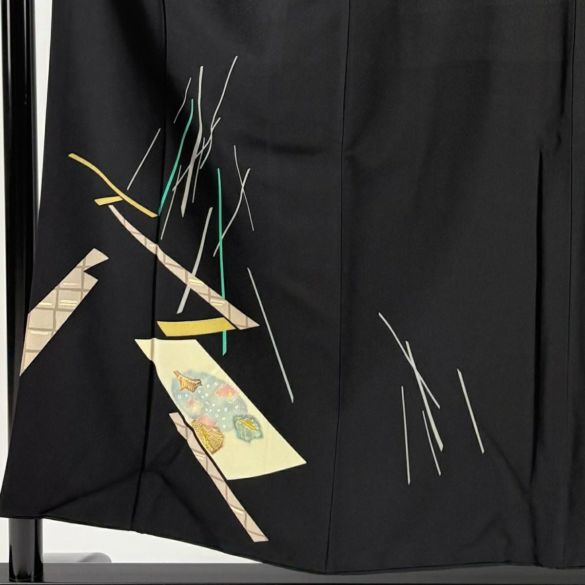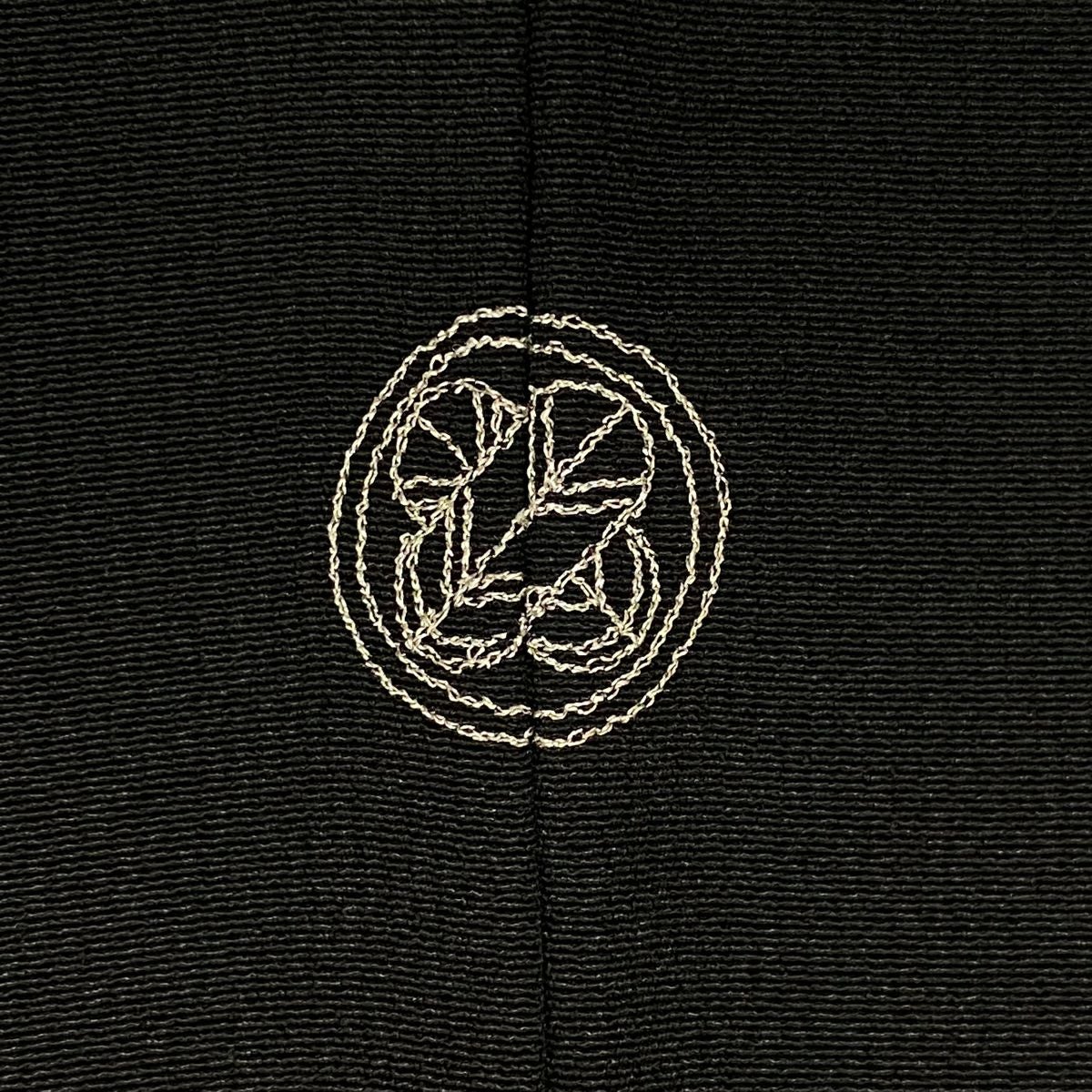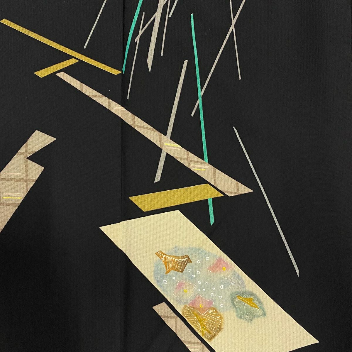 【在庫一掃】 付下げ 身丈153cm 裄丈60.5cm S 袷 鈴乃屋 落款あり 草花 幾何学模様 黒 正絹 秀品 一つ紋