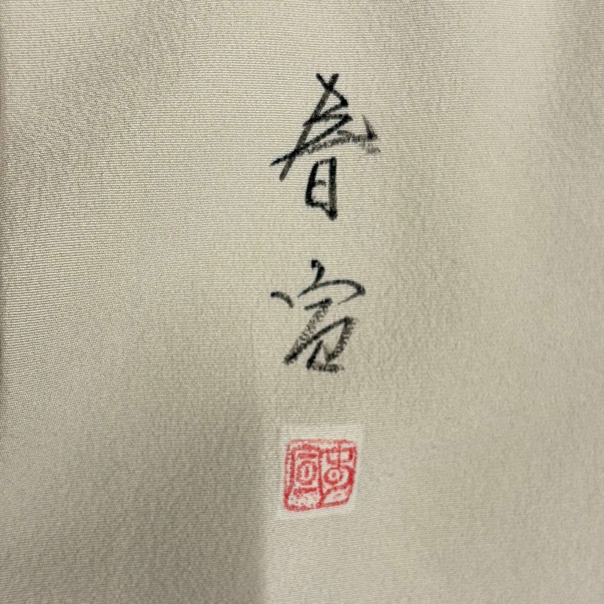 【美品】 付下げ 身丈160.5cm 裄丈66cm M 袷 名古屋帯セット 落款あり 文字文 草花 ぼかし 灰色 正絹 秀品