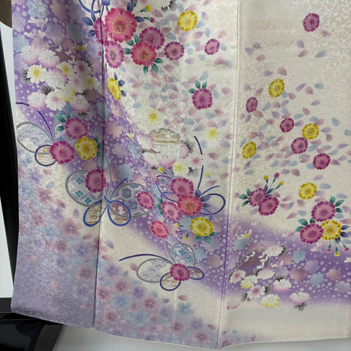 【在庫一掃】 付下げ 身丈153.5cm 裄丈62cm S 袷 宝尽くし 地紋 金彩 ぼかし ピンクベージュ 正絹 秀品 一つ紋
