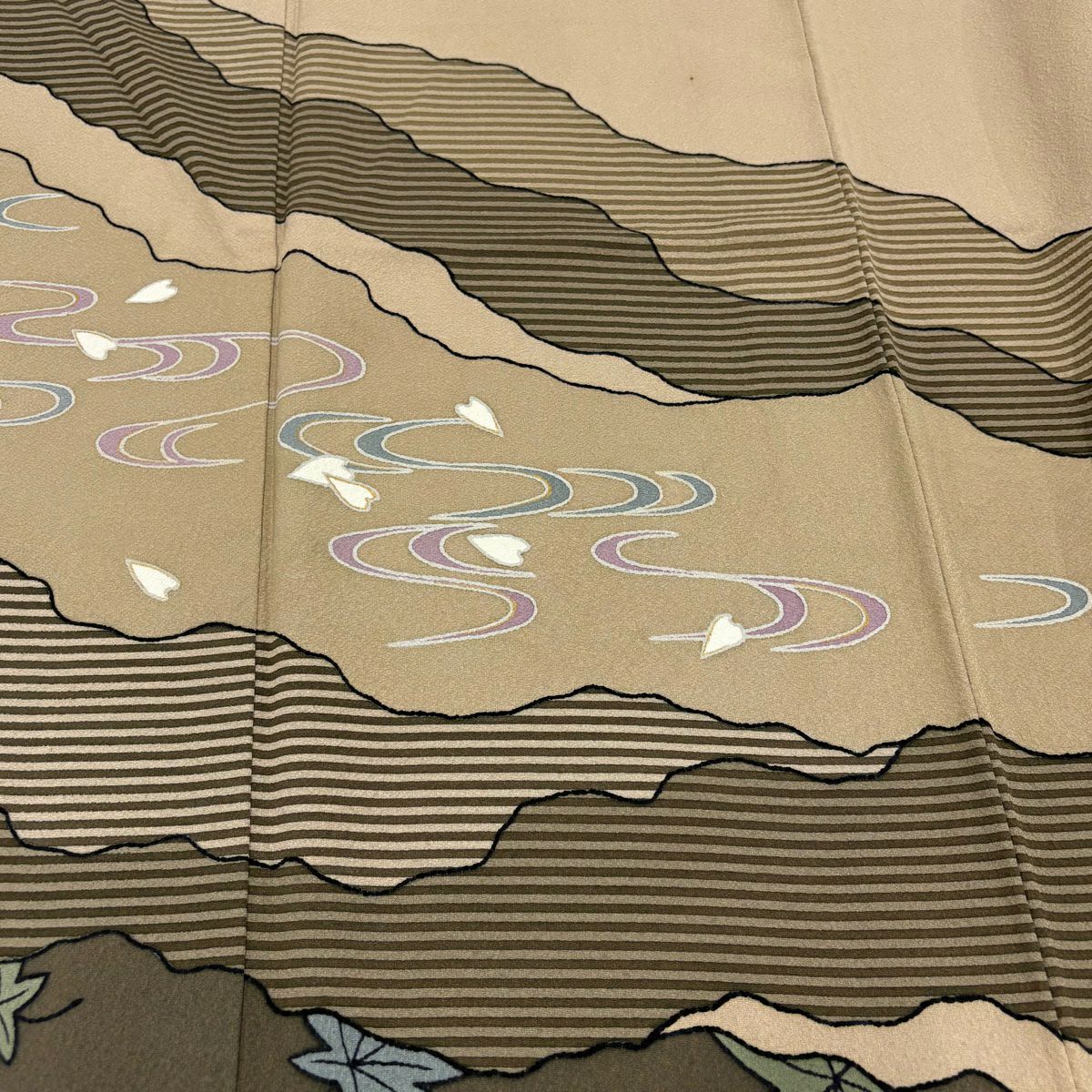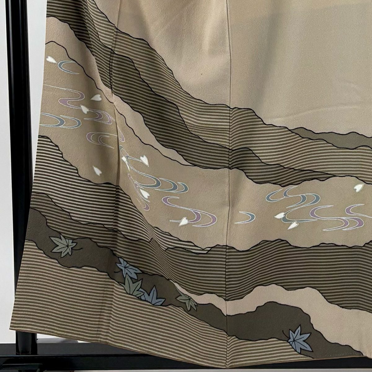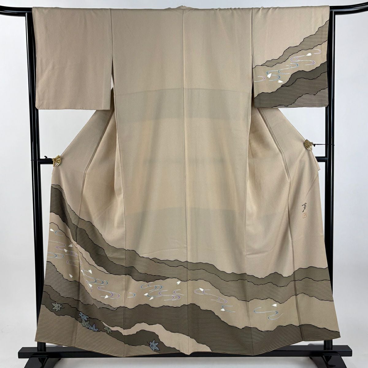 他の画像を見る 【最終値引き】 70%OFF 付下げ 身丈157cm 裄丈64.5cm M 袷 大久保玄才 落款あり 花びら 流水 金彩 ベージュ 正絹 秀品 K70 当店通常価格 ¥ 6,800 ¥ 1,980 税込