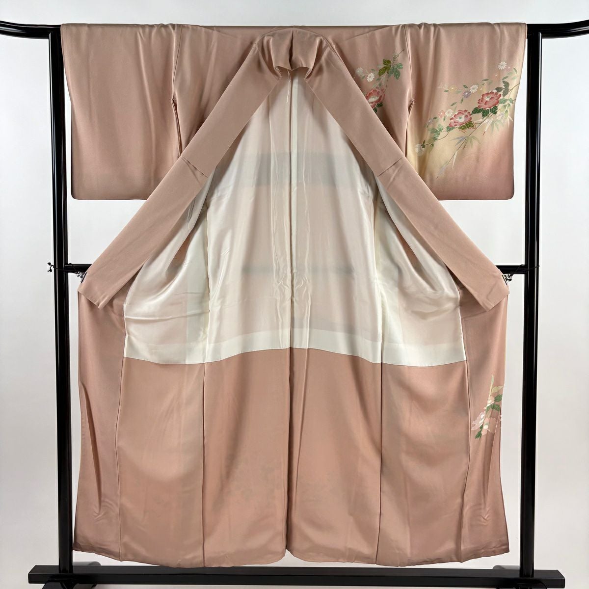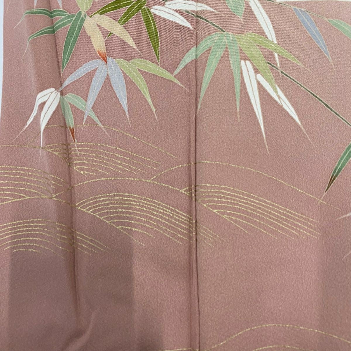他の画像を見る 【最終値引き】 83%OFF 【美品】 訪問着 身丈155cm 裄丈63.5cm S 袷 枝花 笹 金彩 染め分け ピンクベージュ 正絹 秀品 K70 当店通常価格 ¥ 11,800 ¥ 1,980 税込