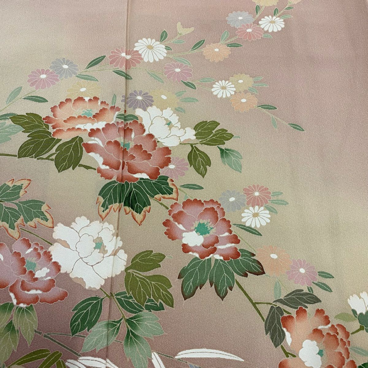 他の画像を見る 70%OFF 【美品】 付下げ 身丈161cm 裄丈63.5cm S 袷 落款あり 菊 草花 ぼかし ピンクベージュ 正絹 秀品 一つ紋 K70 当店通常価格 ¥ 8,800 ¥ 2,640 税込