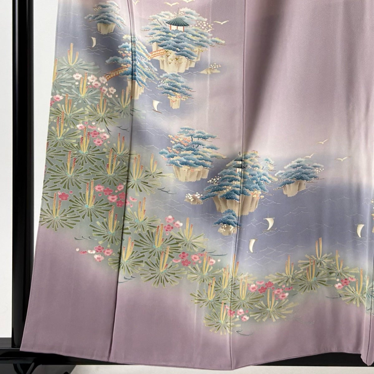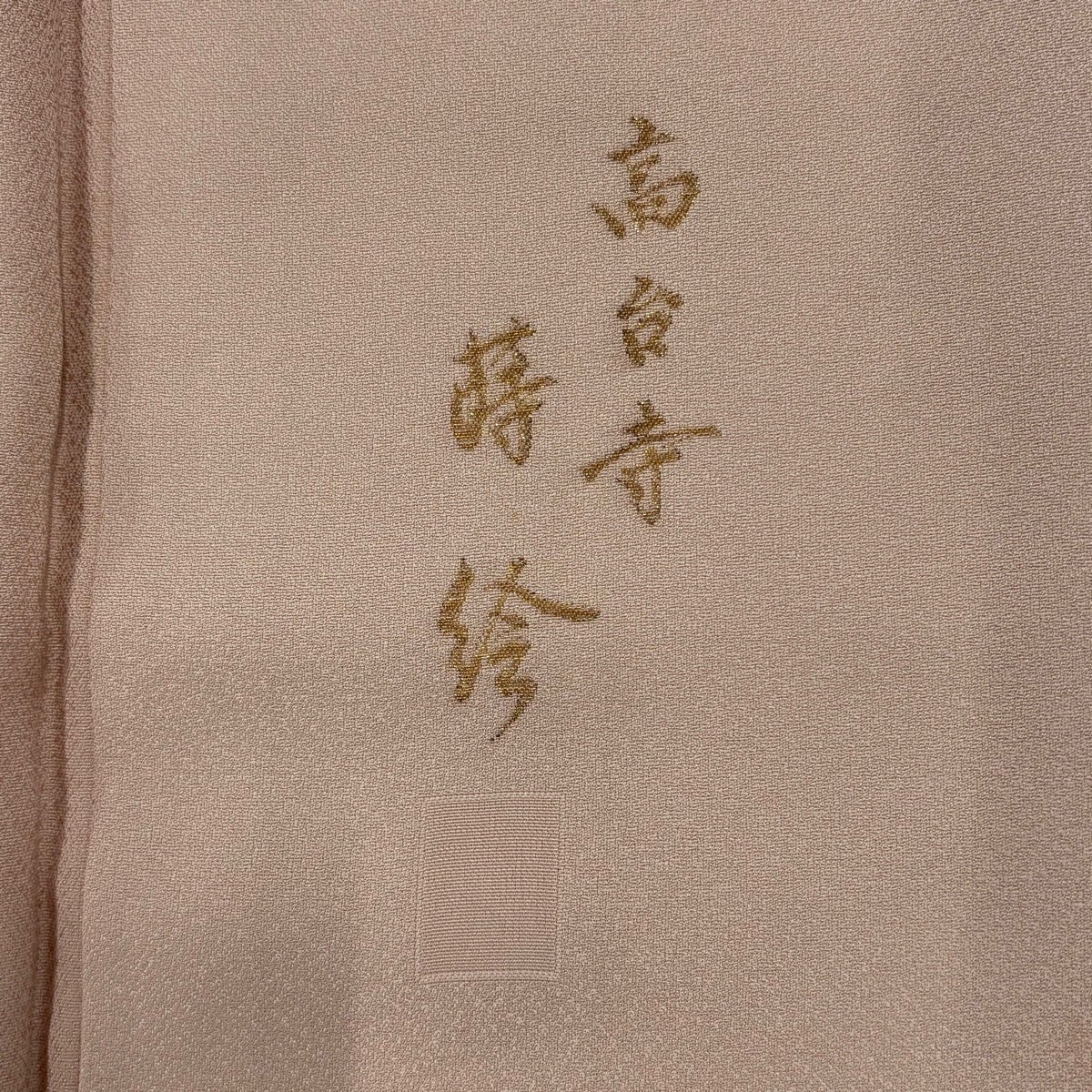 【在庫一掃】 訪問着 身丈166cm 裄丈67cm M 袷 滝泰 落款あり 蝶 芝 金彩 絞り ピンクベージュ 正絹 秀品