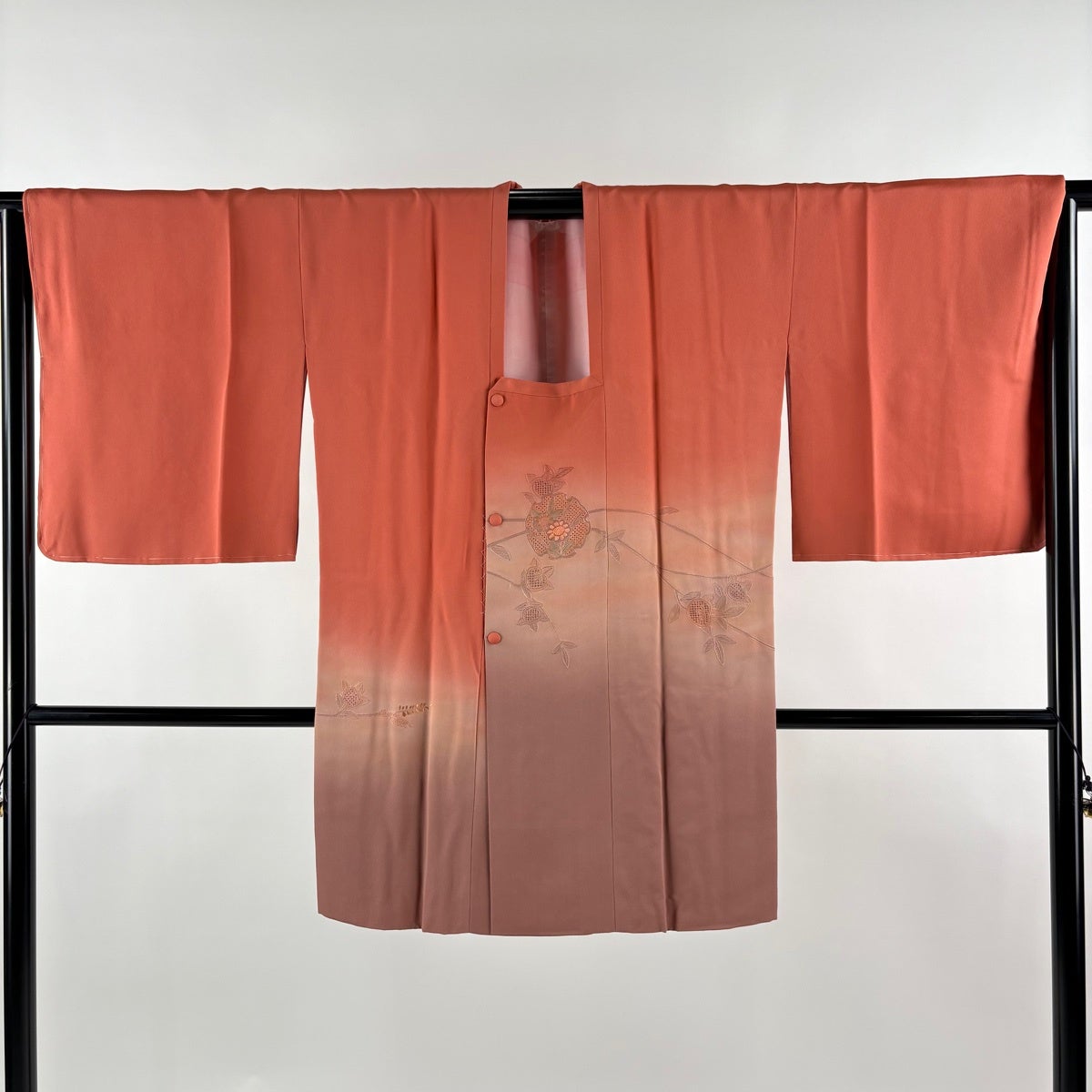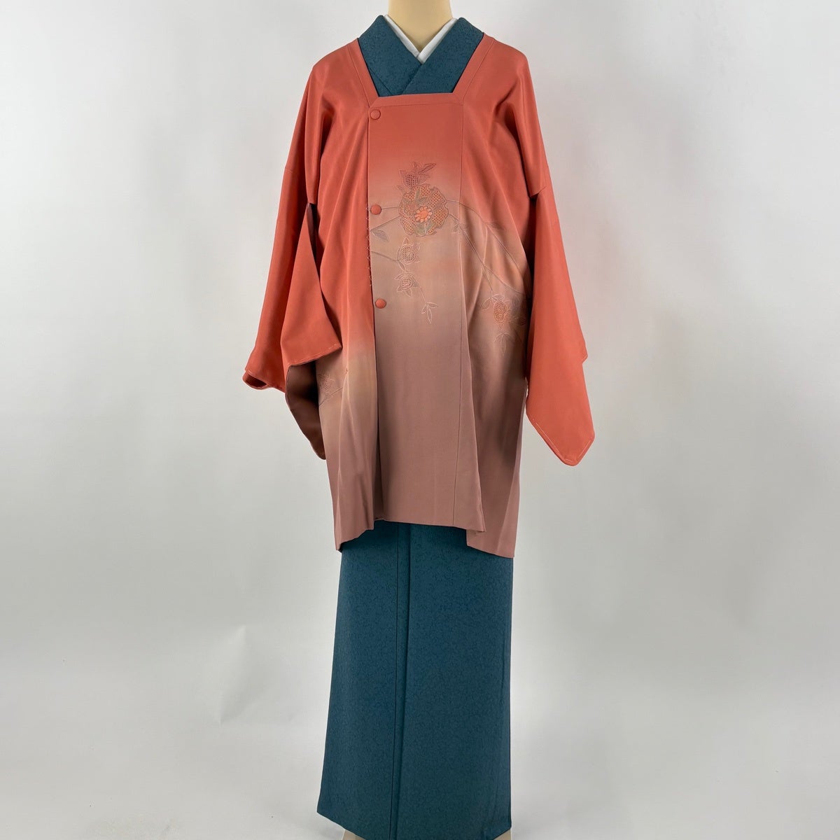【在庫一掃】 【美品】 道行 身丈85.5cm 裄丈64.5cm M 和装コート 角衿 やまと 地紋 よろけ縞 ぼかし オレンジ 正絹 秀品