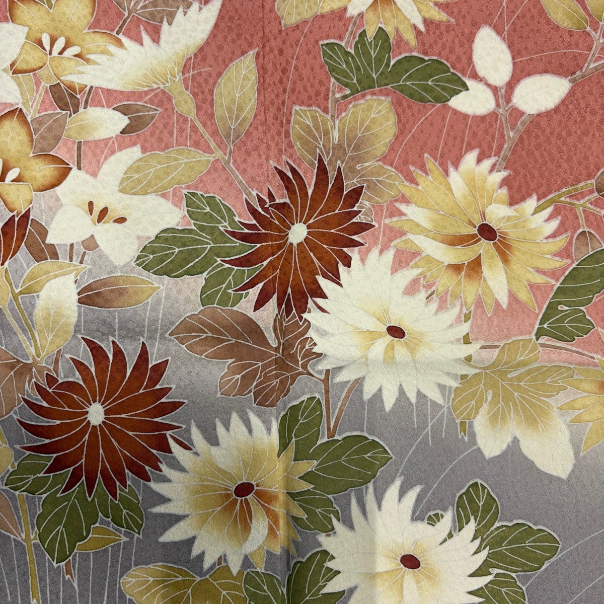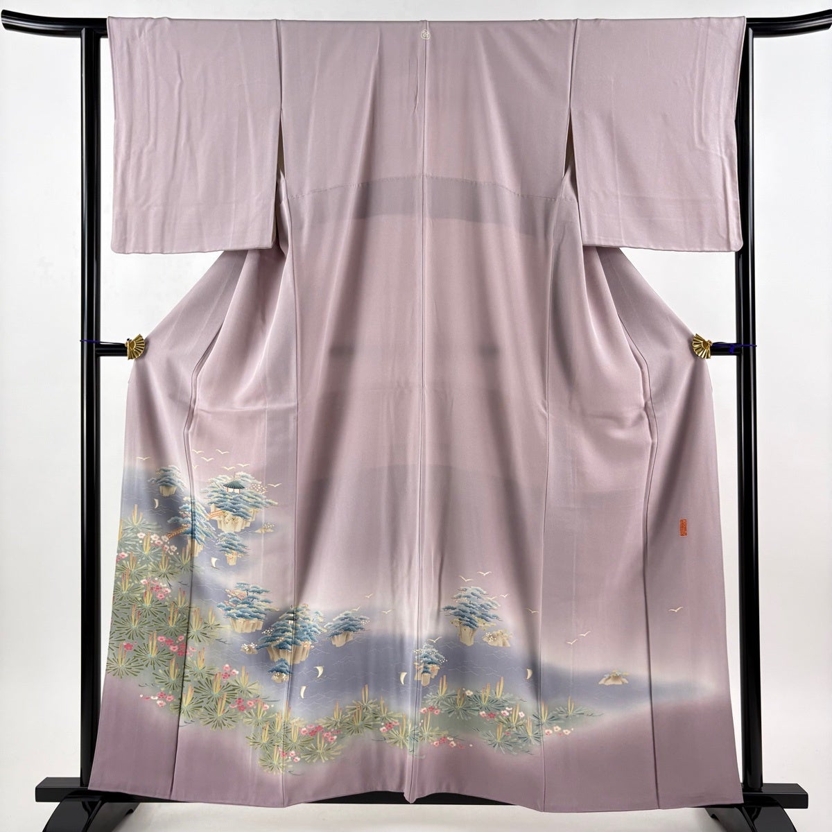 【在庫一掃】 訪問着 身丈161cm 裄丈63.5cm S 袷 落款あり 菊 鳥 金彩 ぼかし ピンクベージュ 正絹 秀品