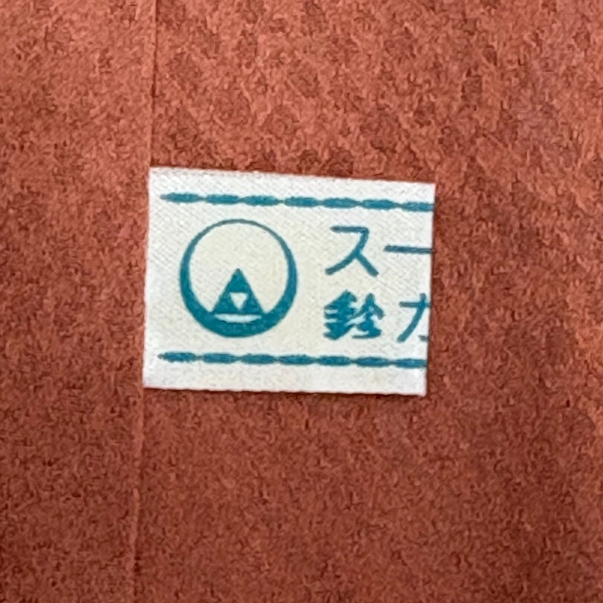 【美品】 江戸小紋 身丈157cm 裄丈64cm M 袷 黒岩秀規 鈴乃屋 落款あり 市松 角通し サーモンピンク 正絹 秀品 一つ紋