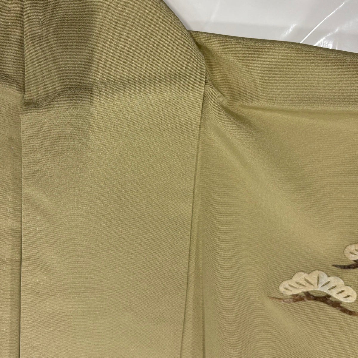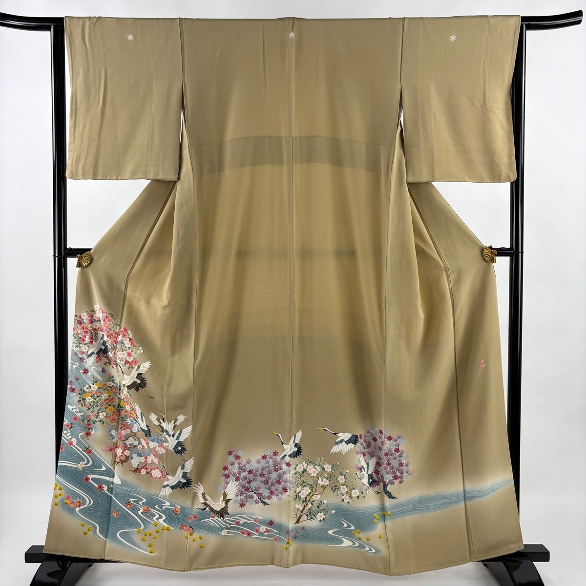【美品】 色留袖 身丈161cm 裄丈64.5cm M 袷 落款あり 鶴 枝梅 染め分け ぼかし ベージュ 正絹 秀品 三つ紋