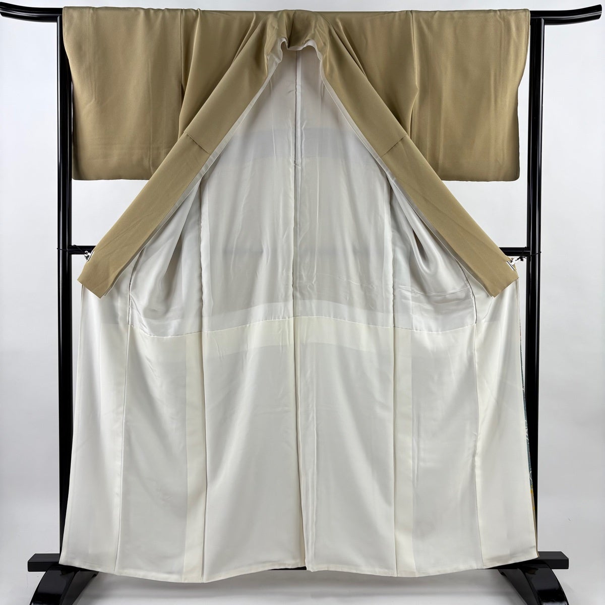 【美品】 色留袖 身丈155.5cm 裄丈64.5cm M 袷 岡村蒼風 落款あり 鴛鴦 枝花 金彩 ぼかし ベージュ 正絹 秀品 一つ紋