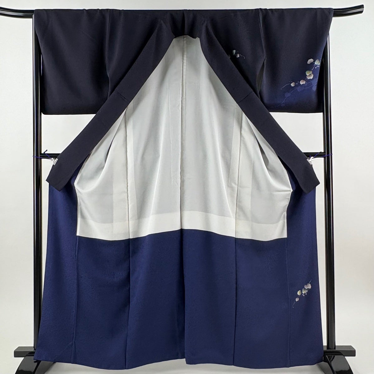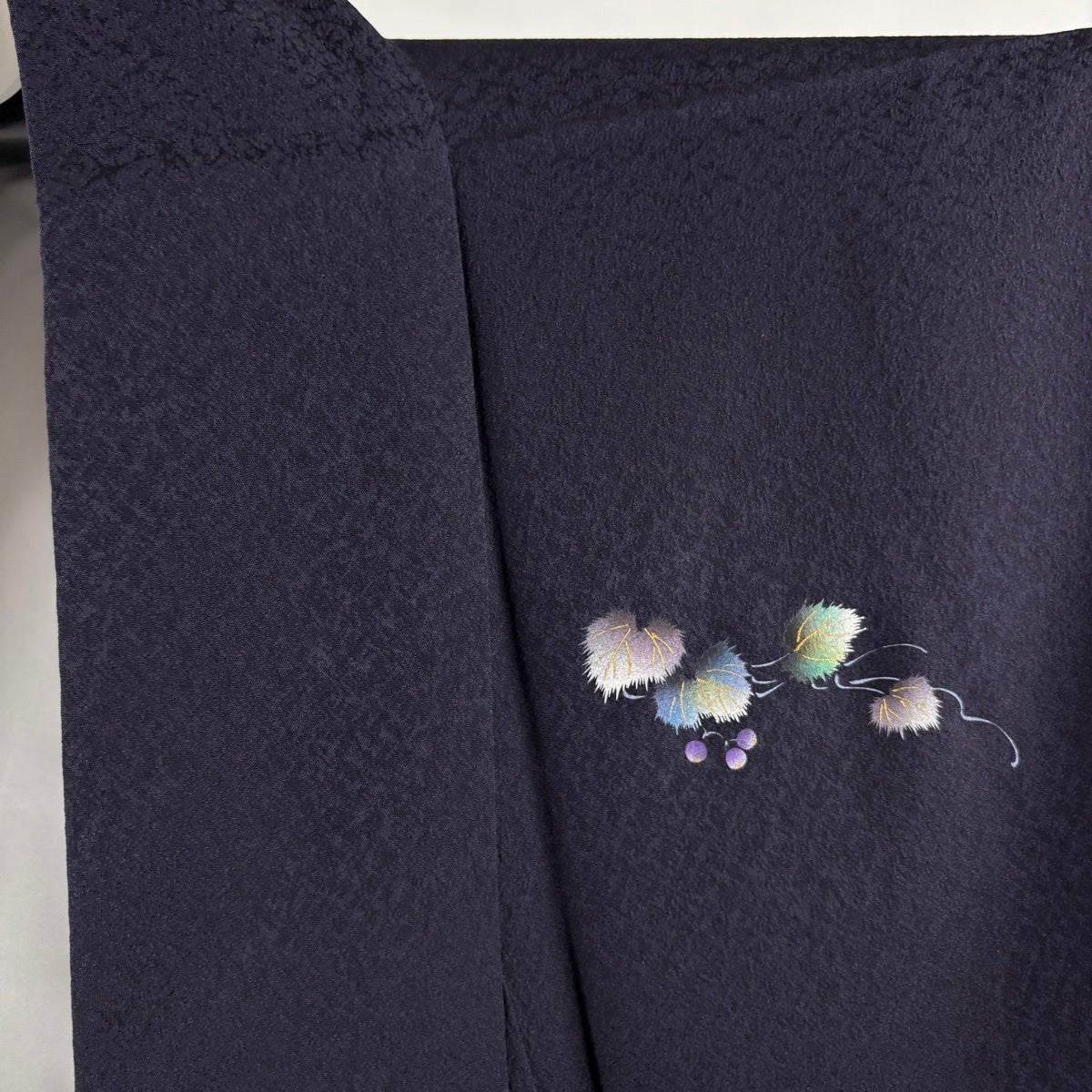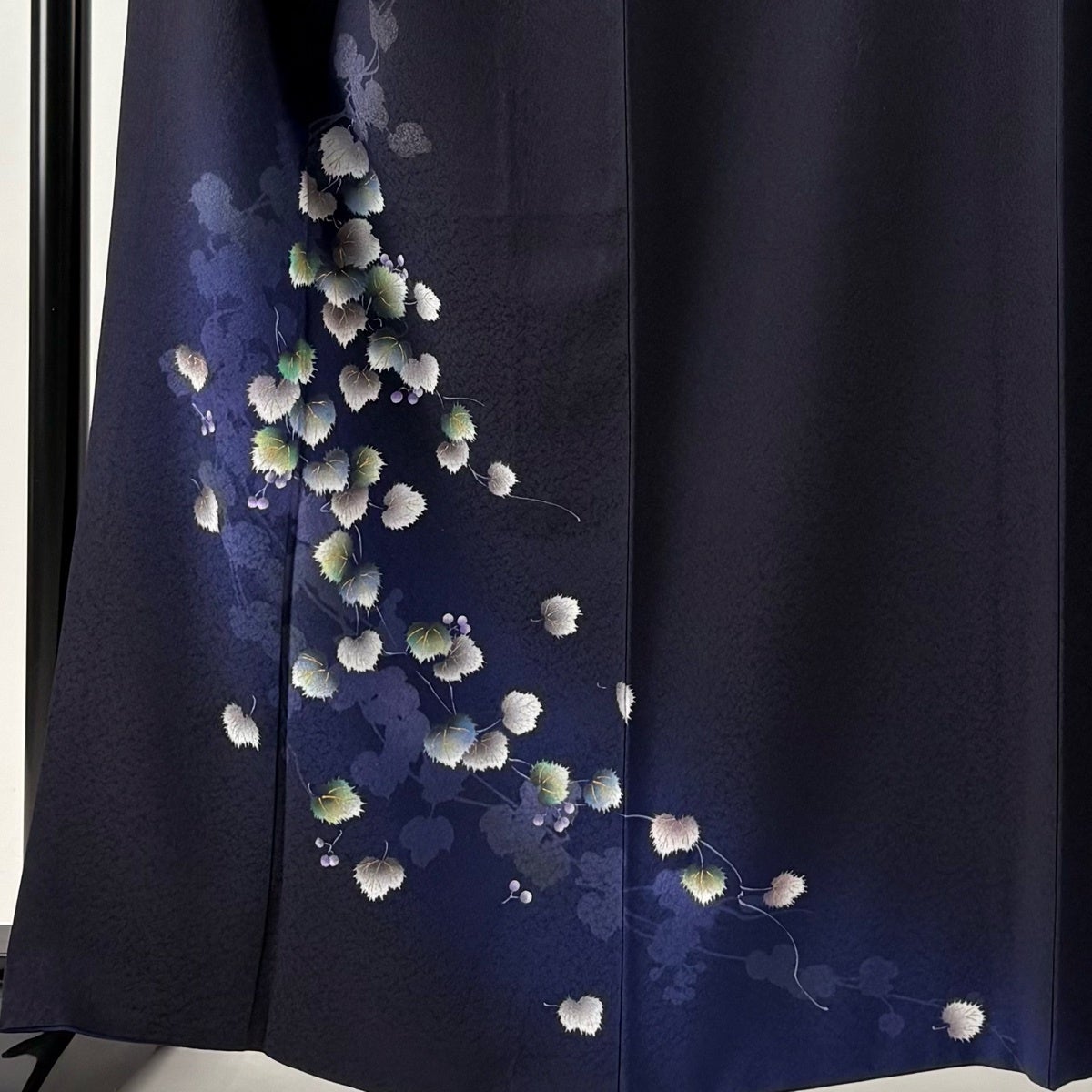【美品】 付下げ 身丈163cm 裄丈67cm M 袷 袋帯セット やまと 落款あり 葉と実 シルエット 金彩 ぼかし 濃紺 正絹 秀品