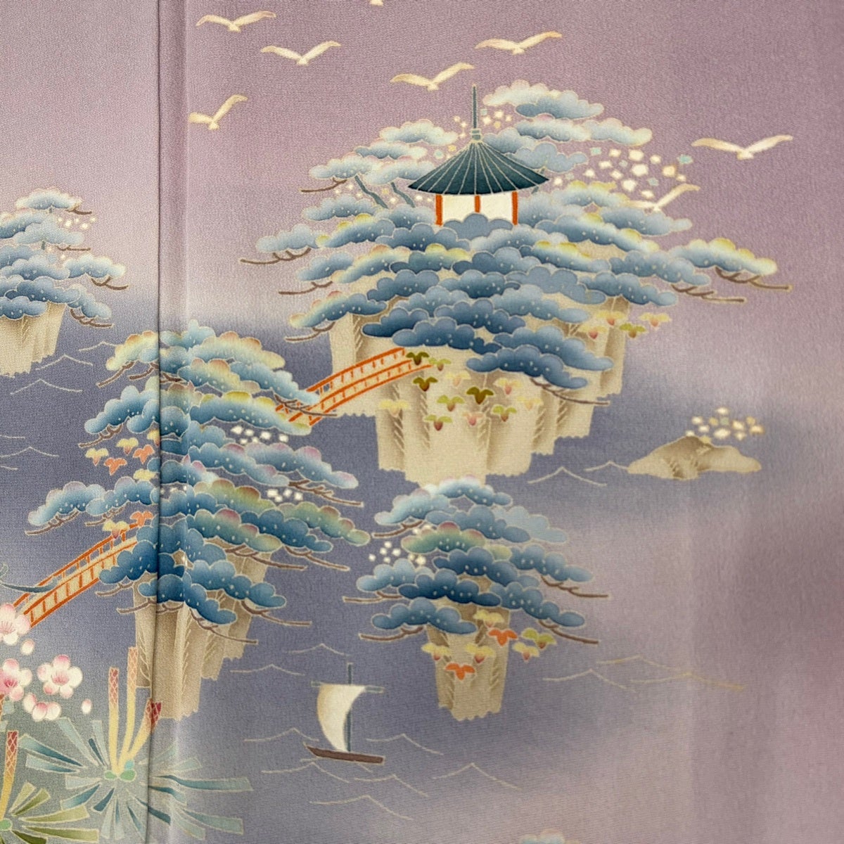 【在庫一掃】 【美品】 色留袖 身丈159.5cm 裄丈66.5cm M 袷 薬師寺 落款あり 風景 建物 金彩 ぼかし ベージュ 正絹 秀品 一つ紋