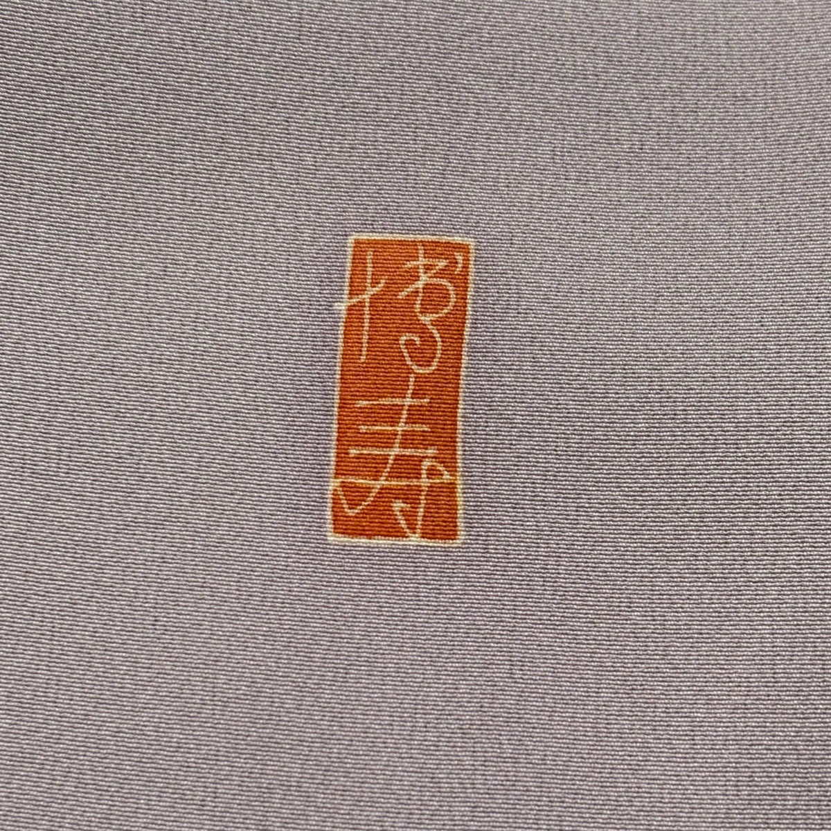 名品 小紋 両面染 落款 小花 幾何学模様 濃紫 正絹