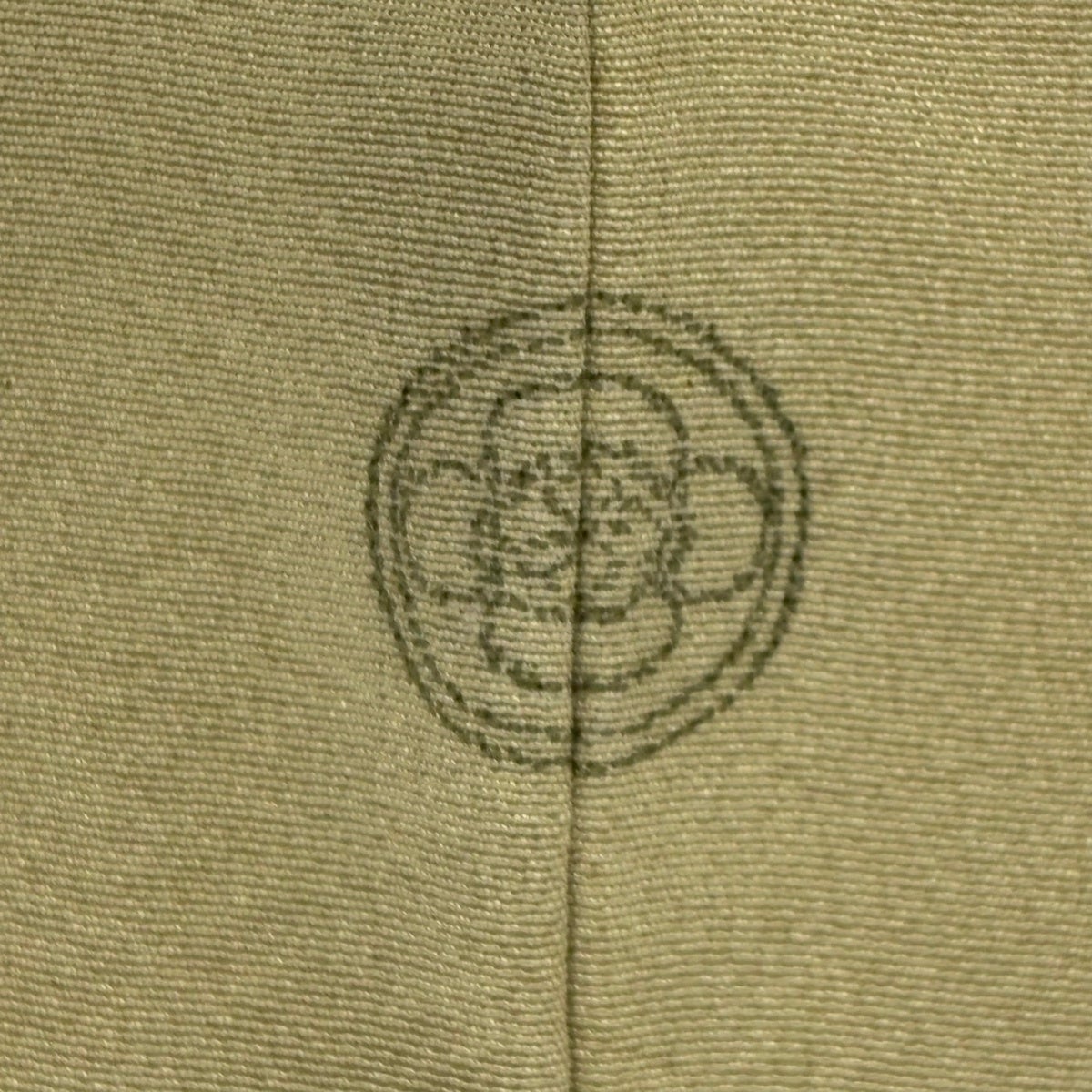 【在庫一掃】 【美品】 付下げ 身丈158cm 裄丈62.5cm S 袷 地紋 幾何学模様 金糸 金彩 薄オレンジ 正絹 秀品 一つ紋