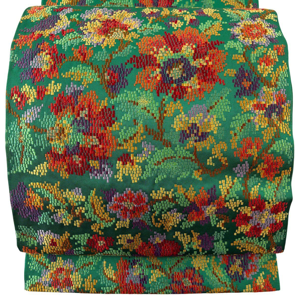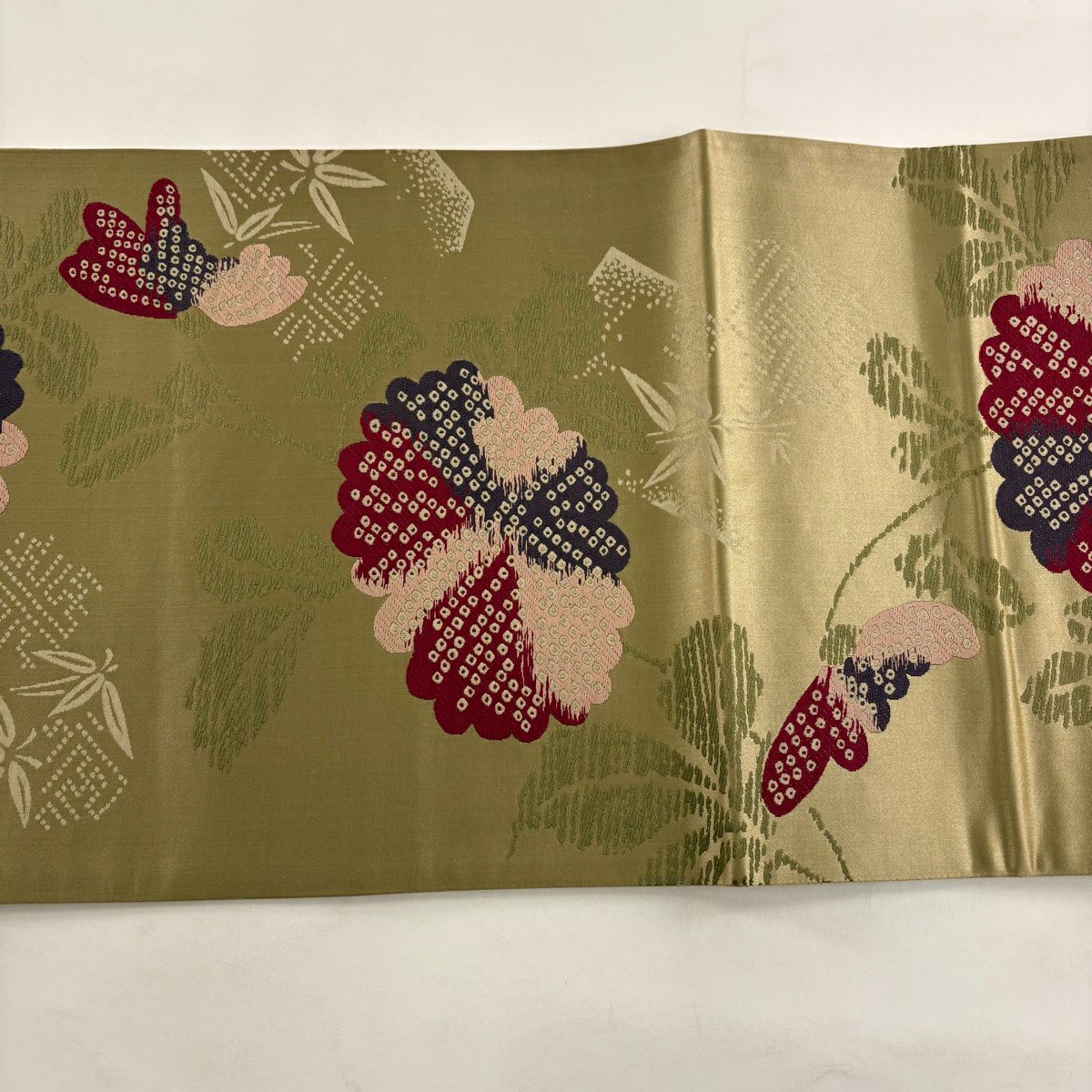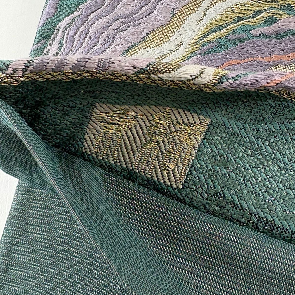 袋帯 秀品 草花 金糸 緑 六通 正絹