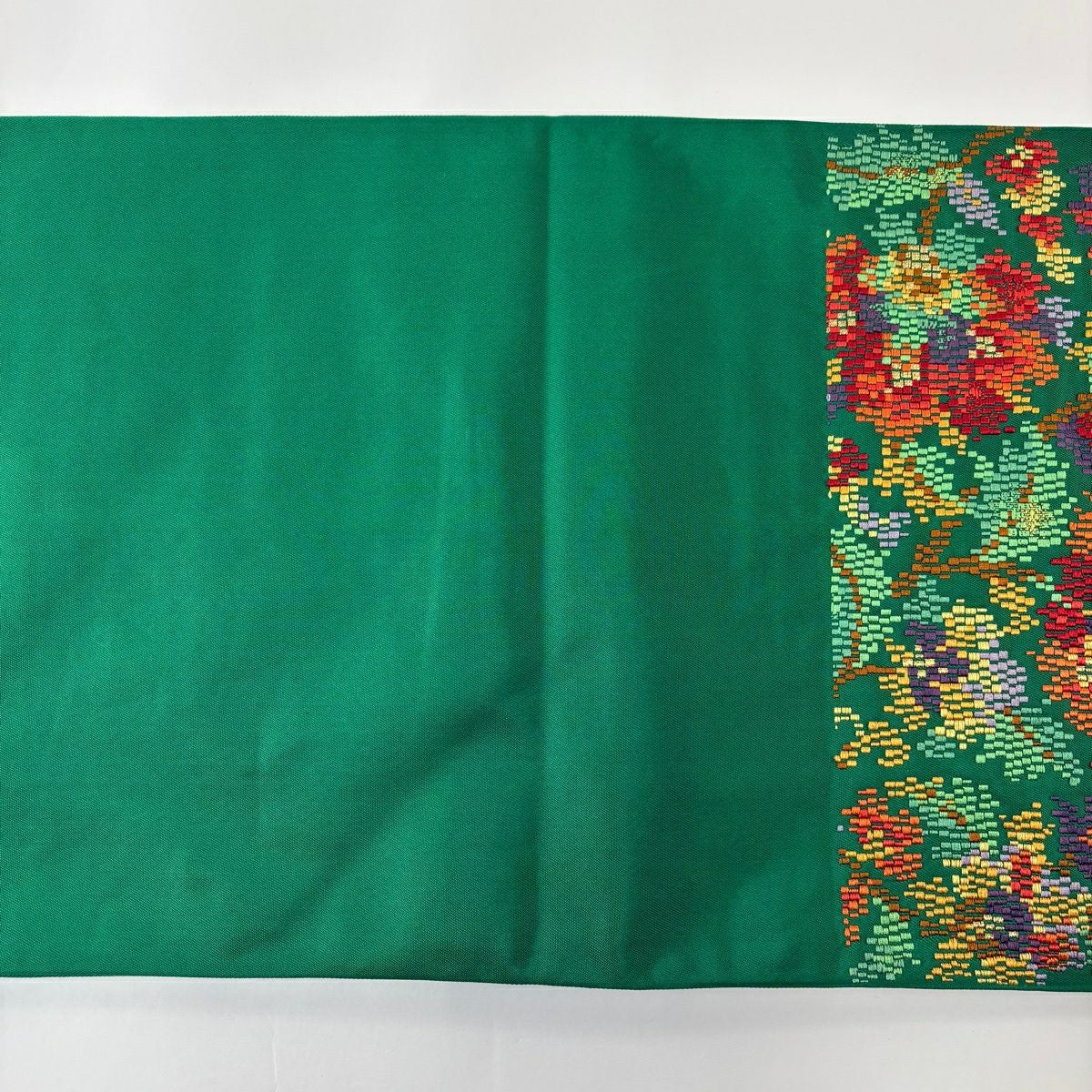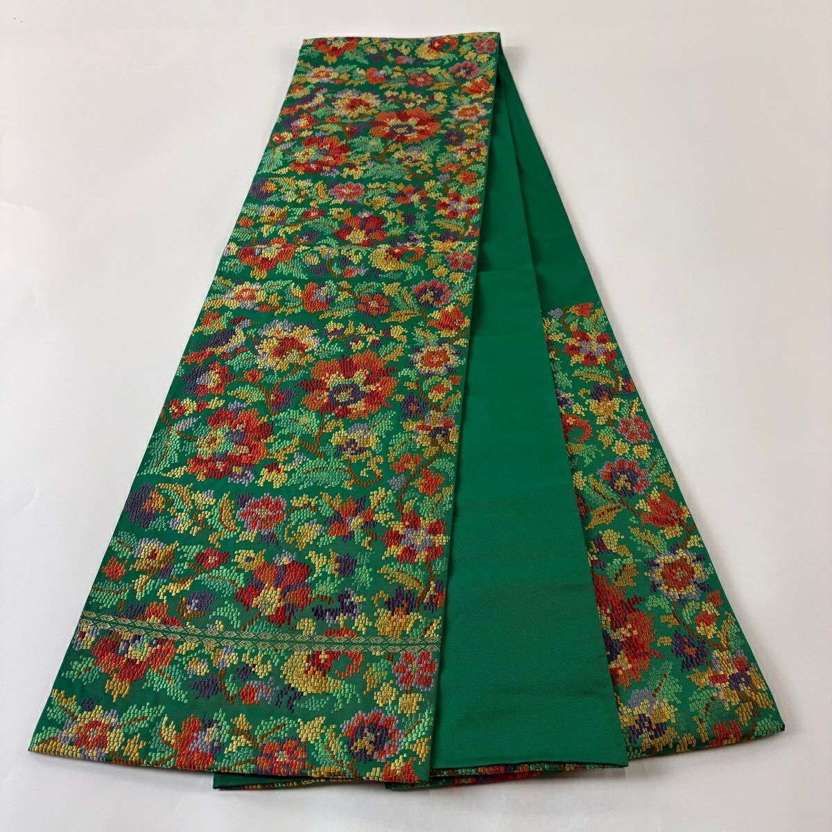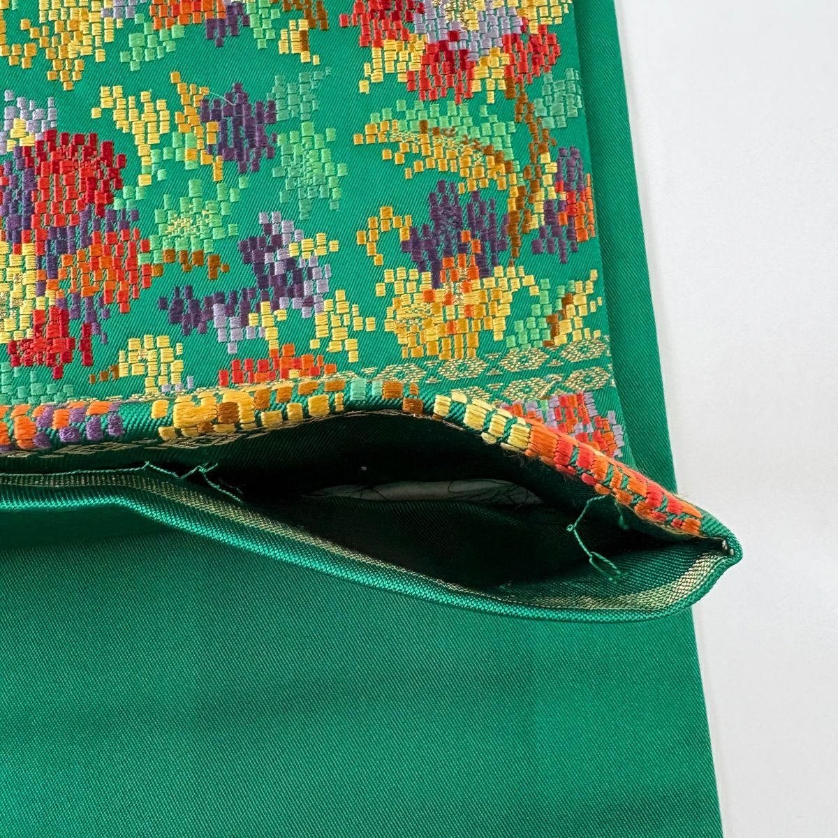 袋帯 秀品 草花 金糸 緑 六通 正絹