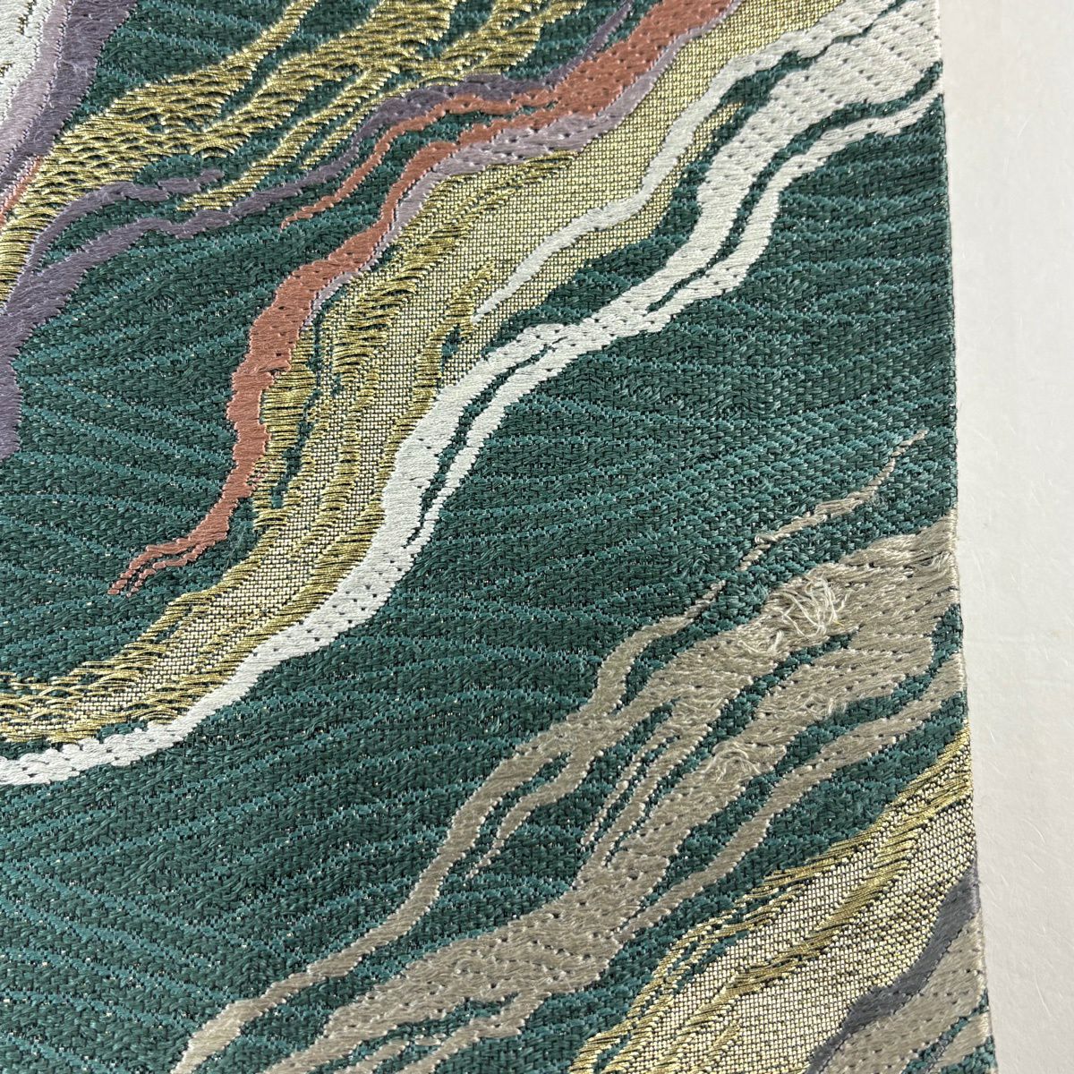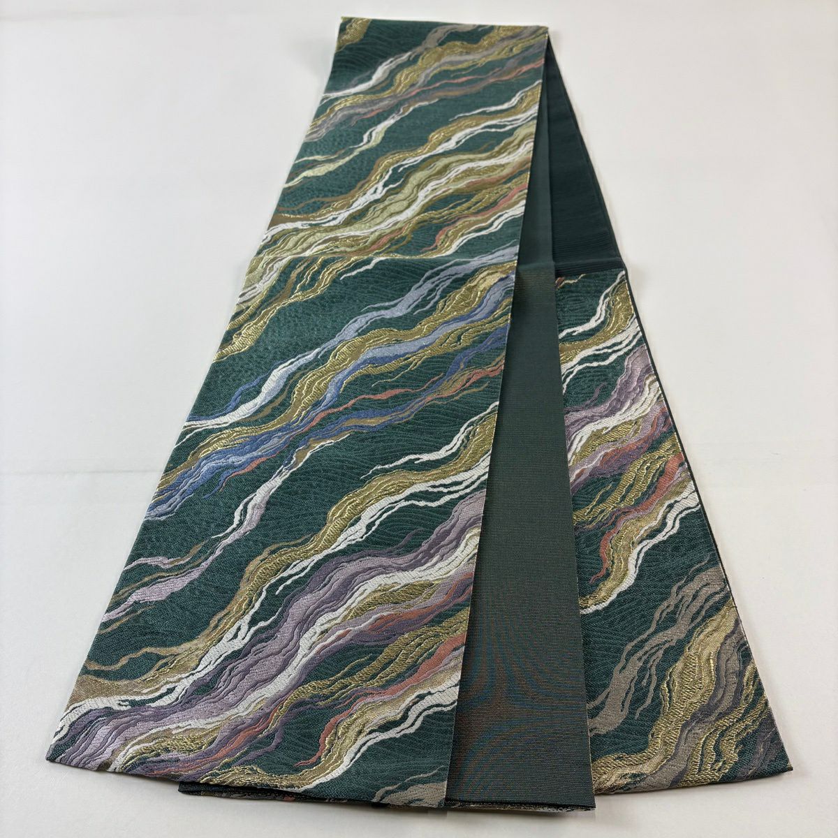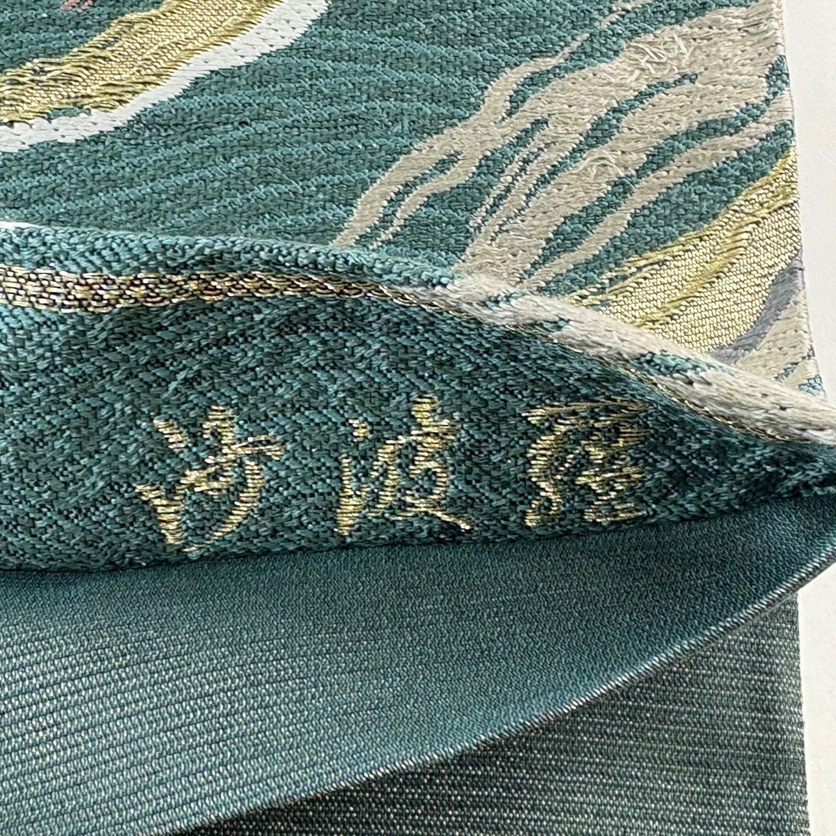 袋帯 秀品 流水 金糸 緑 六通 正絹