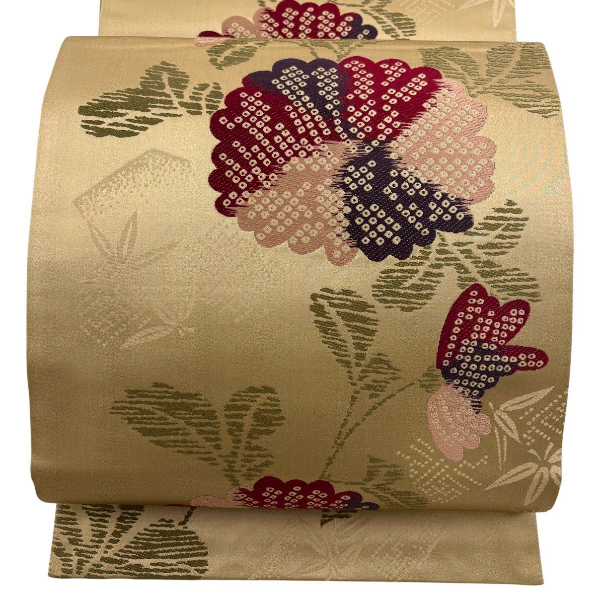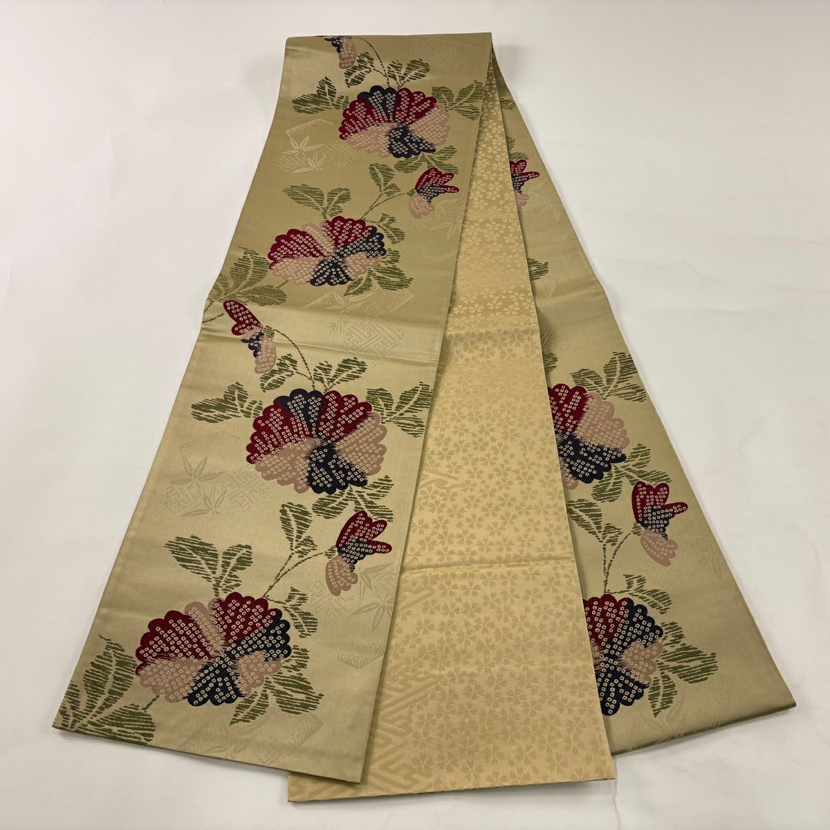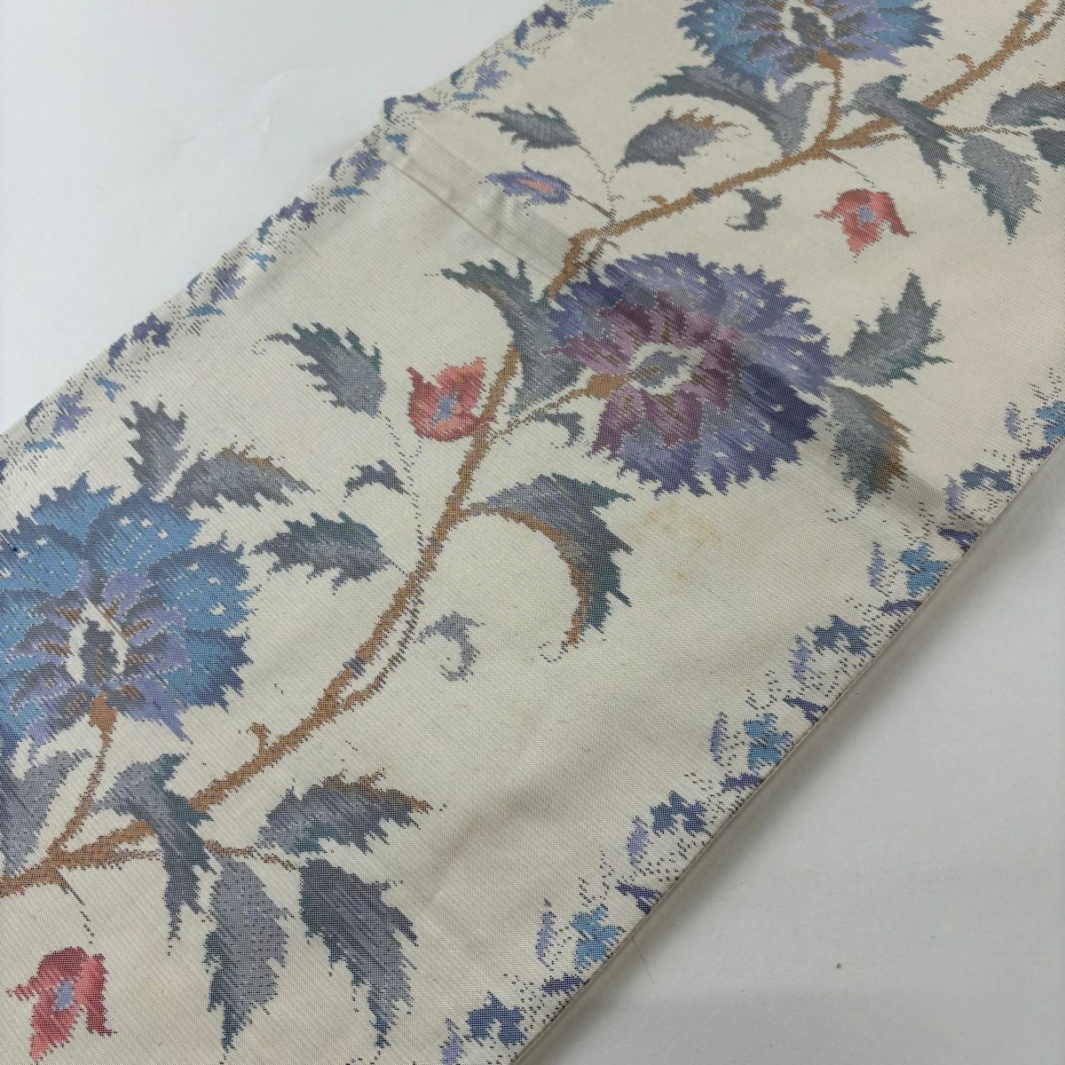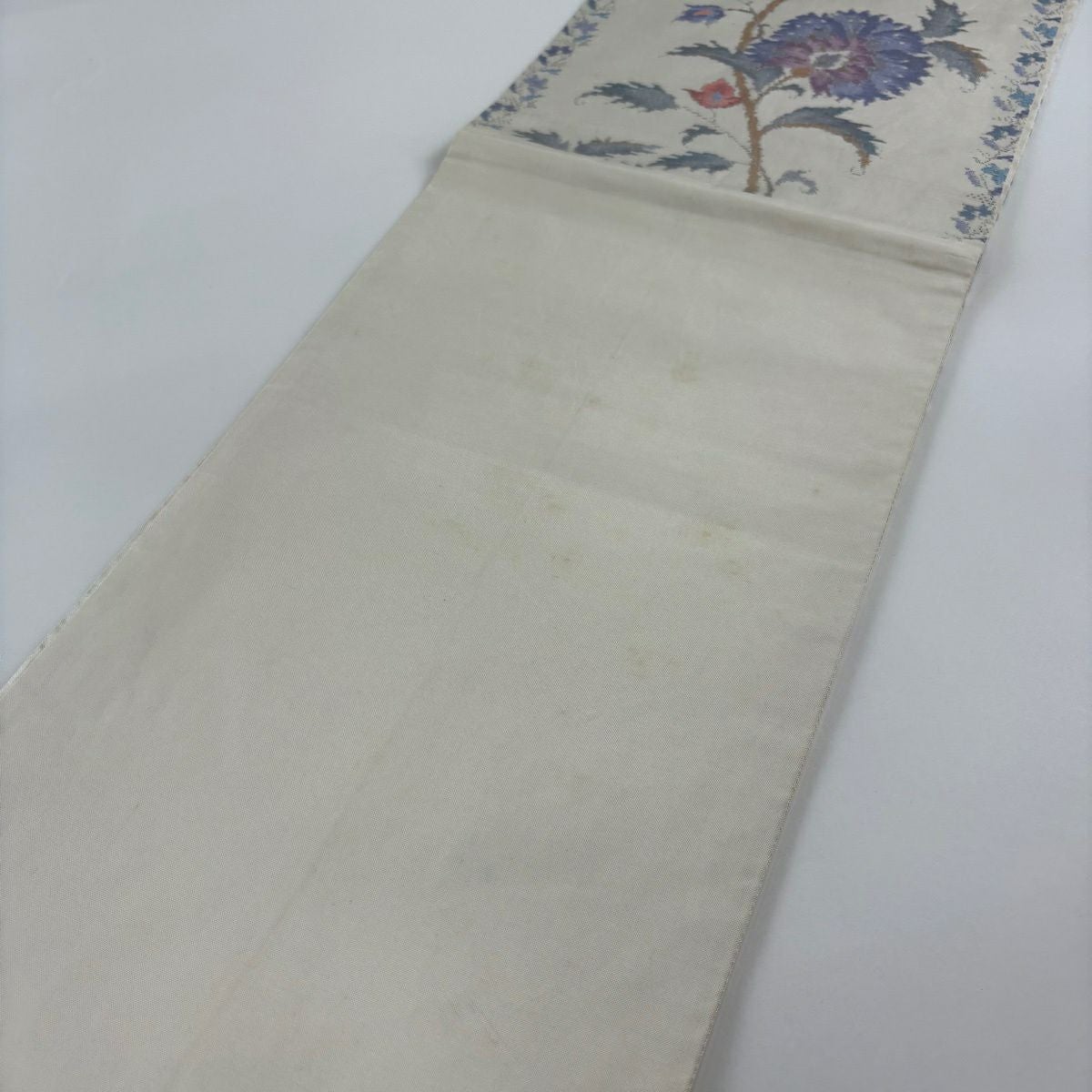 袋帯 秀品 草花 クリーム 六通 正絹