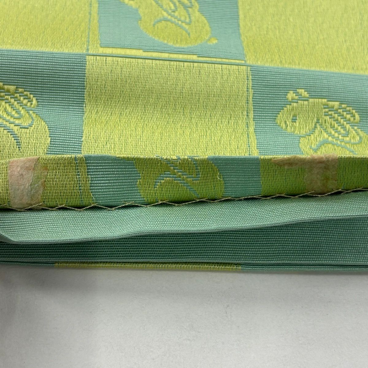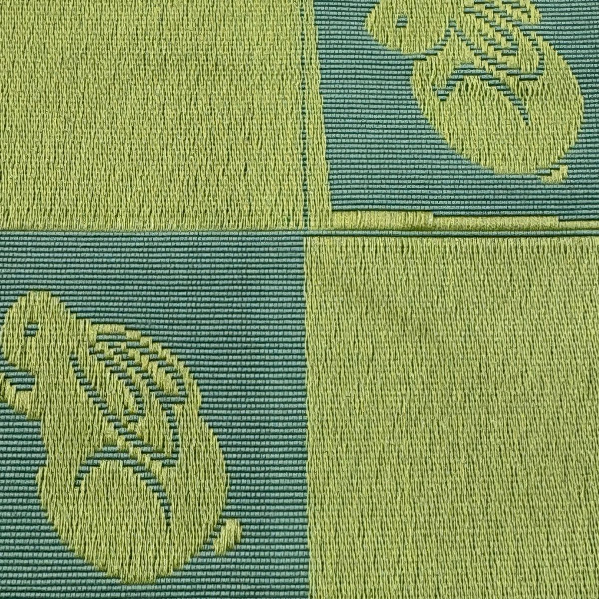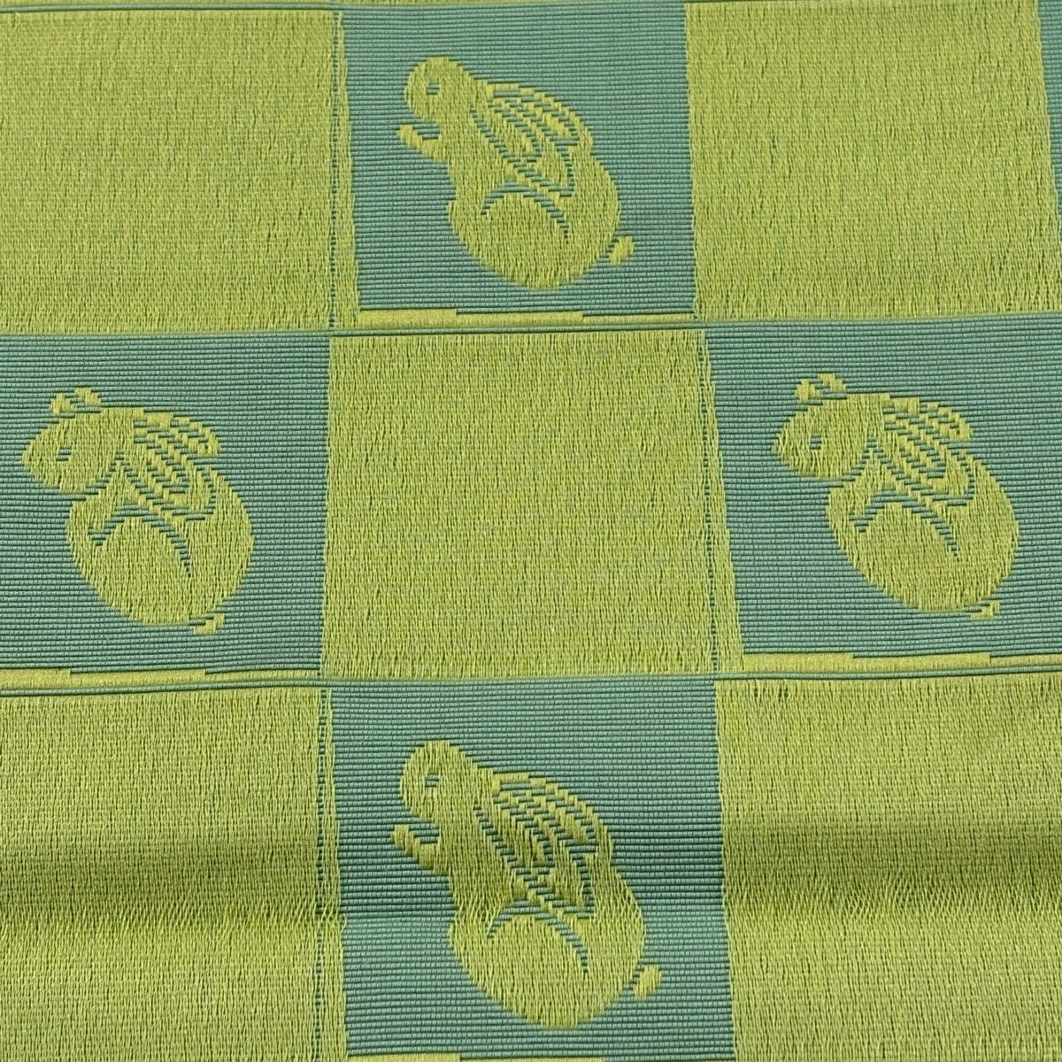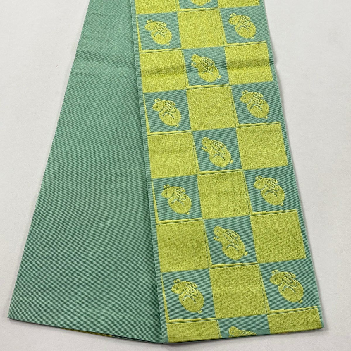 半幅帯 秀品 うさぎ 市松 薄緑 正絹