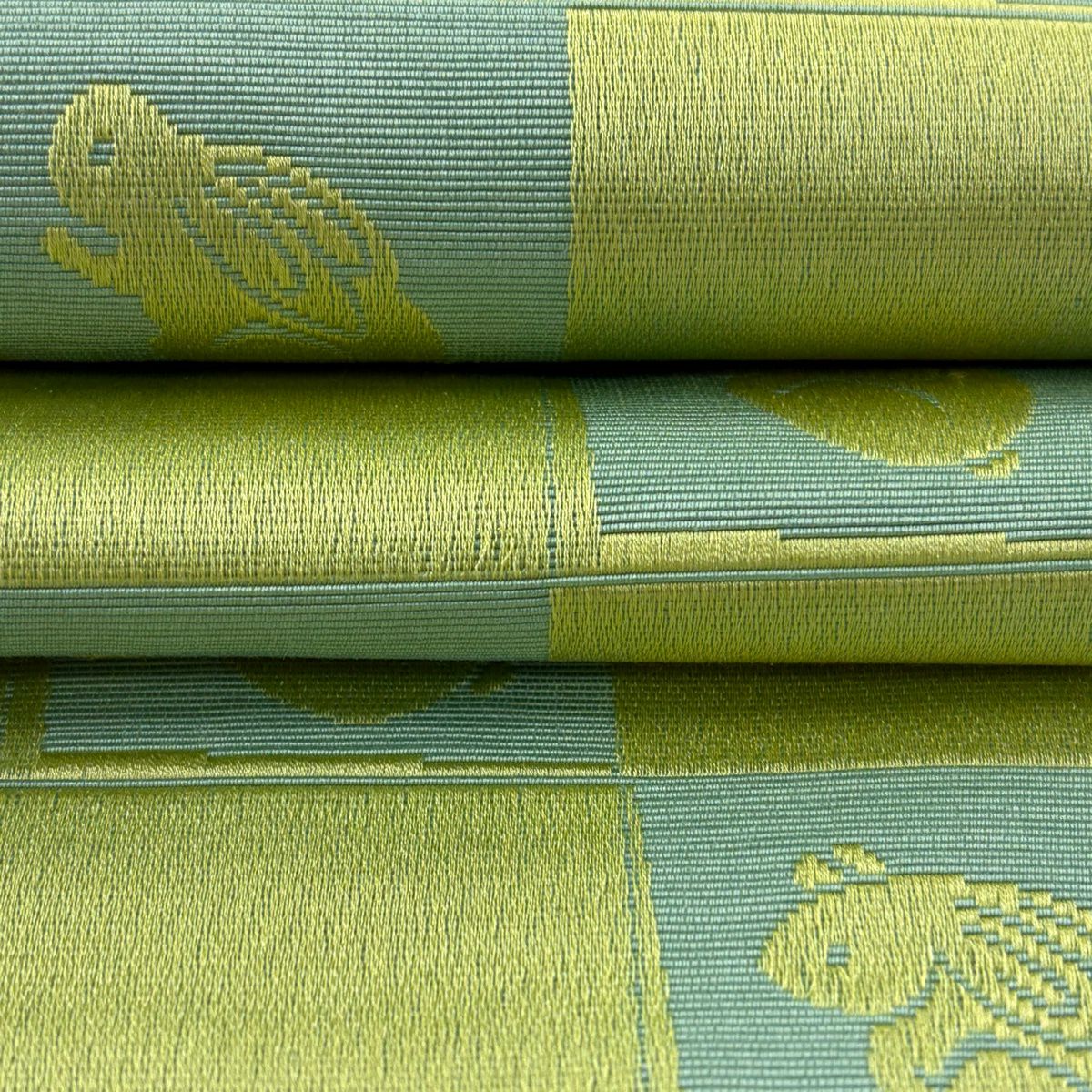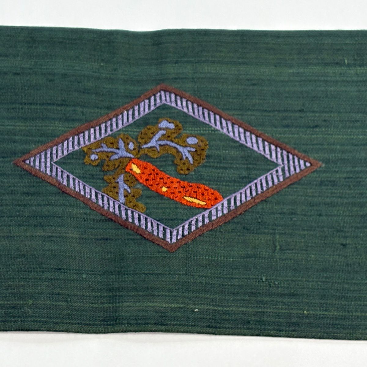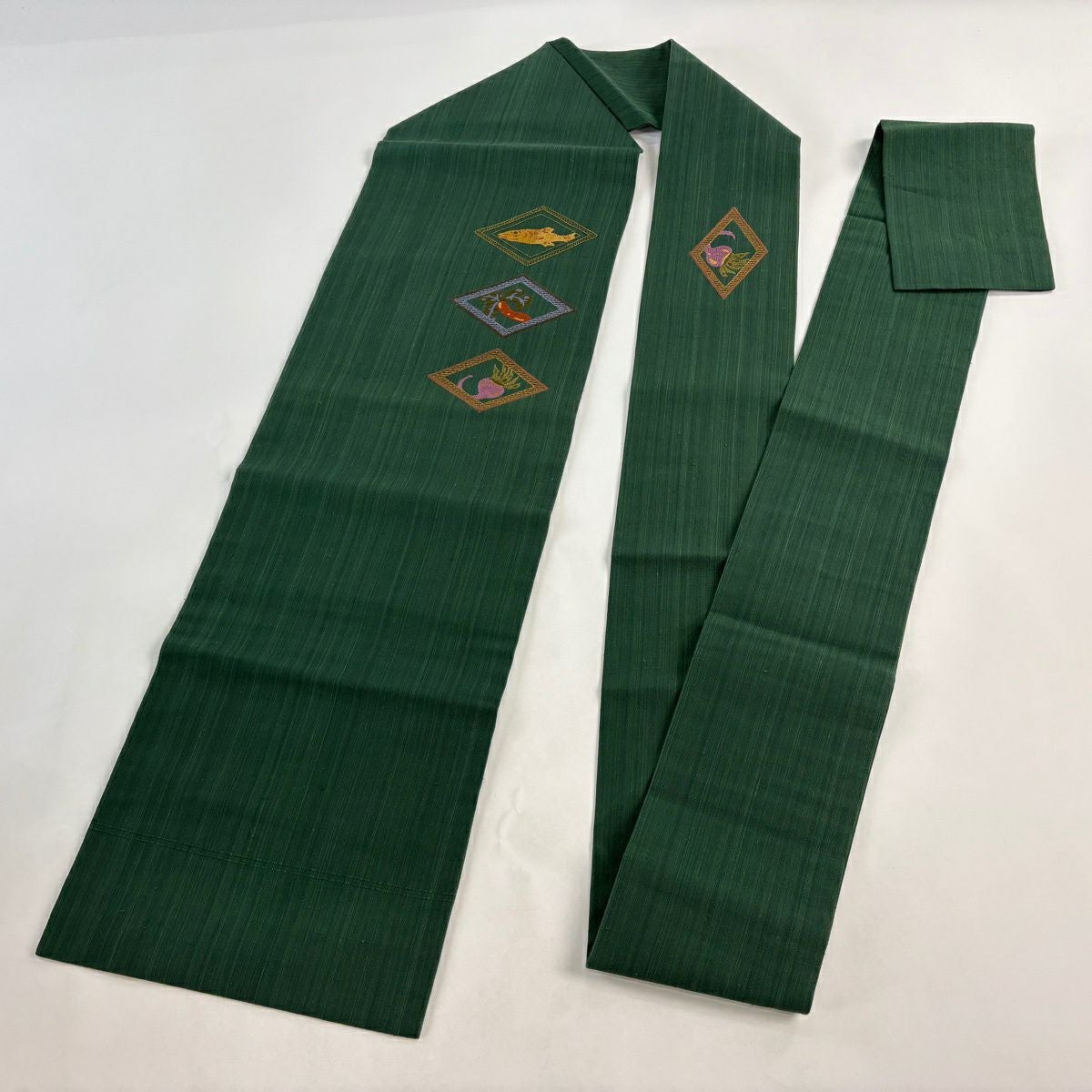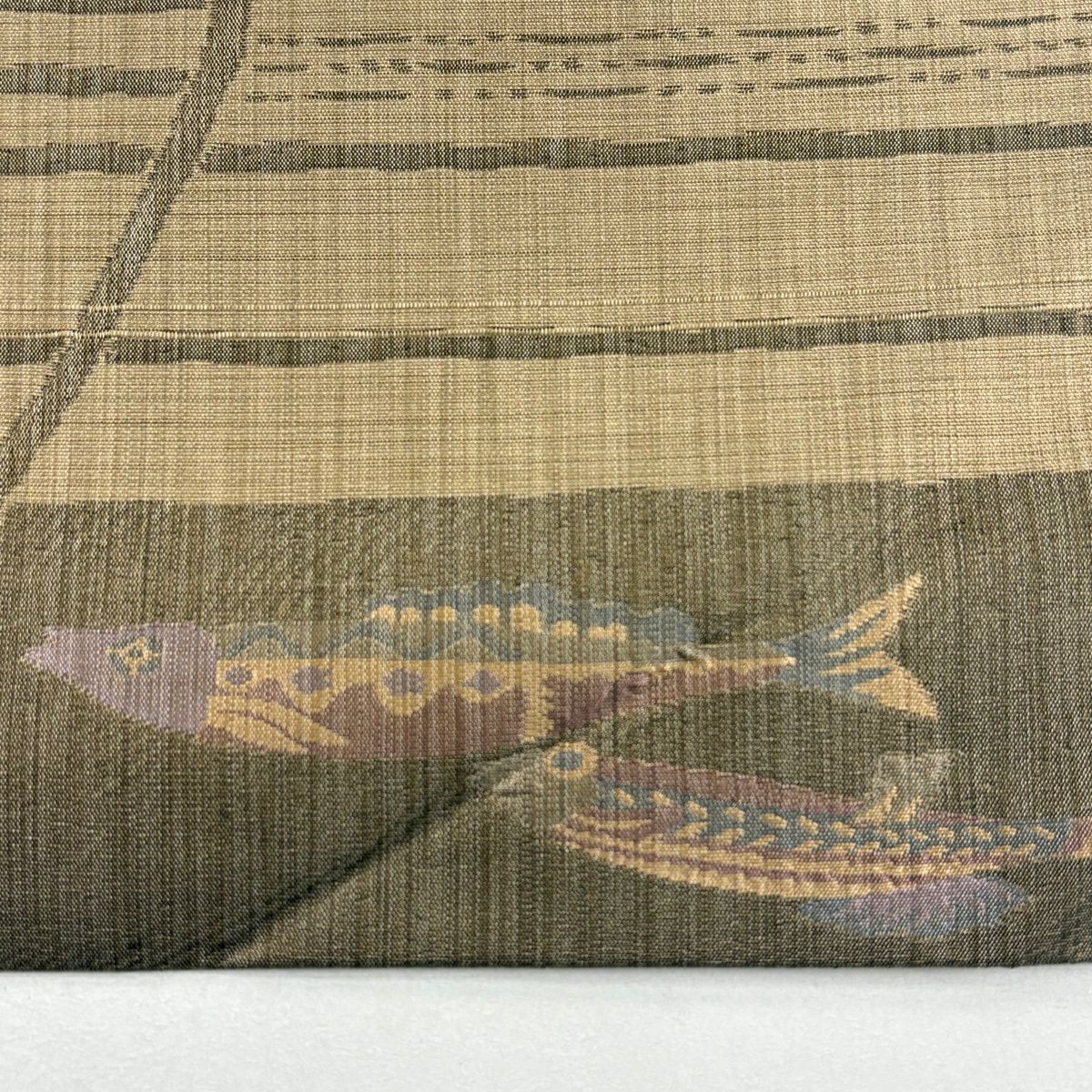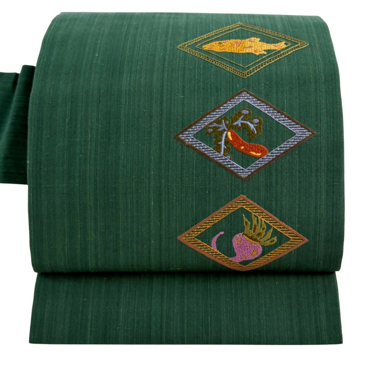 名古屋帯 秀品 魚 菱 刺繍 緑 正絹