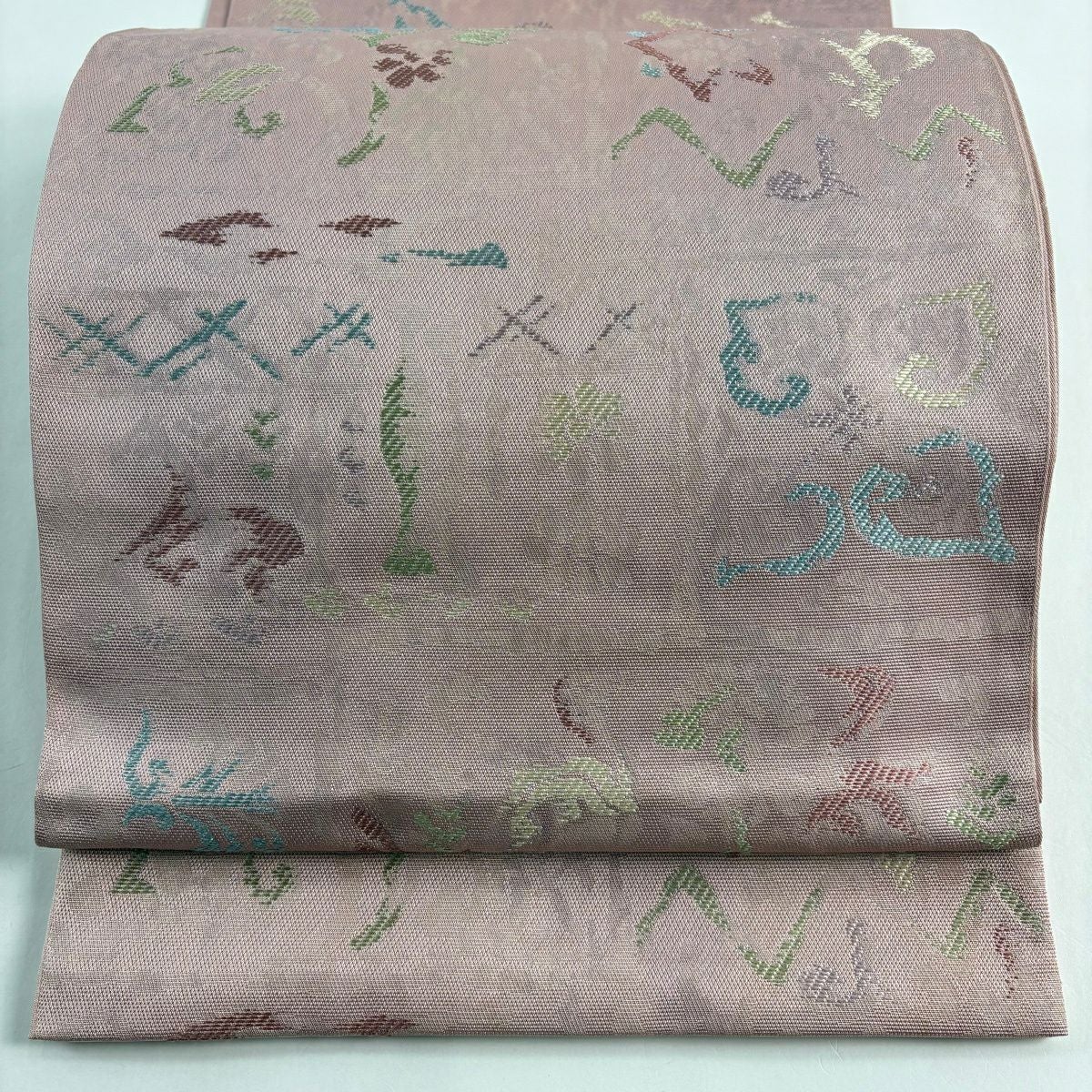 名古屋帯 秀品 幾何学 ピンク 正絹