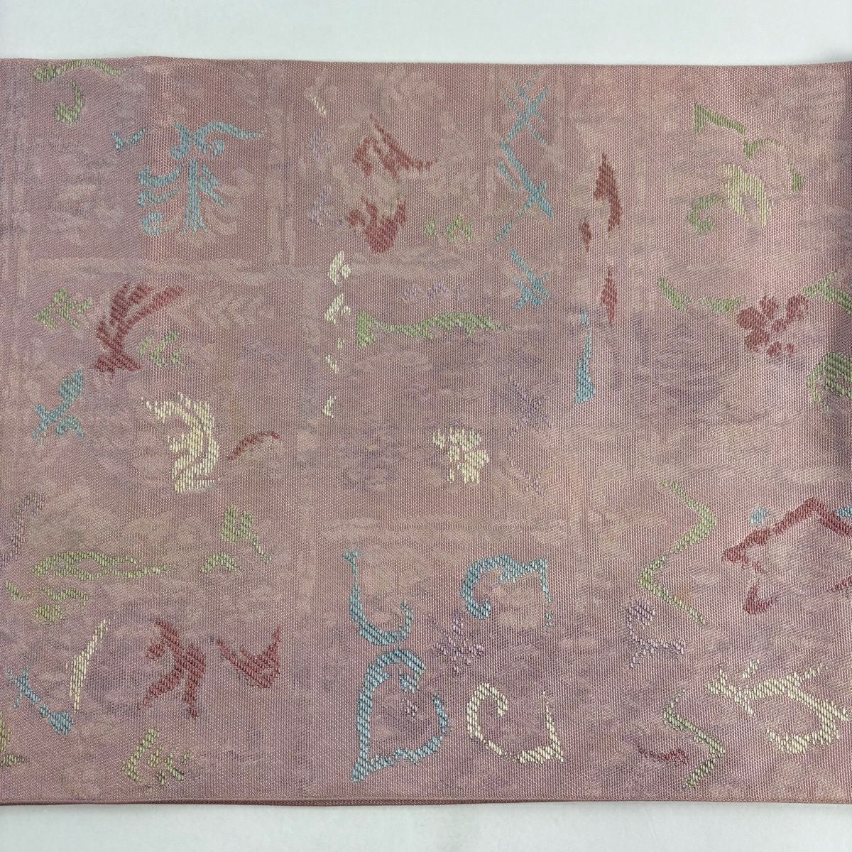 袋帯 秀品 草花 ピンク 六通 正絹