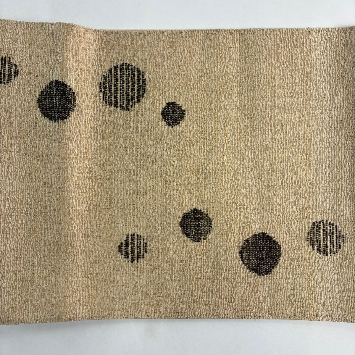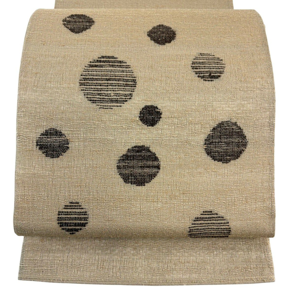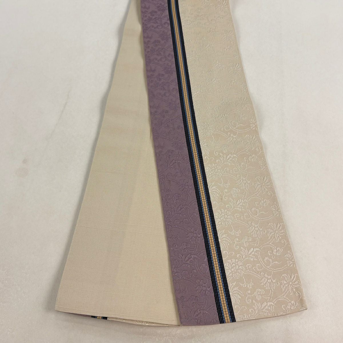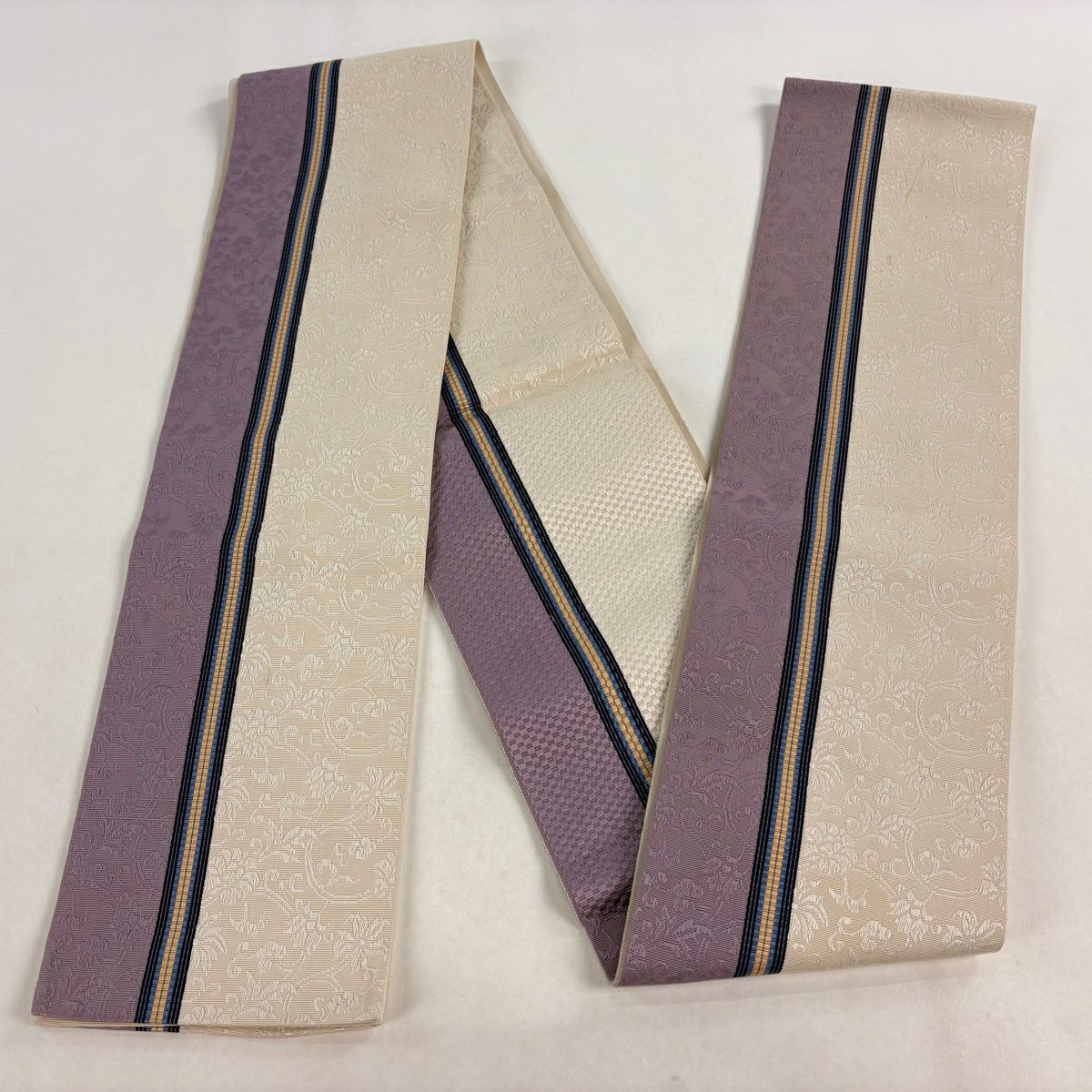 半幅帯 秀品 縞 地紋 クリーム 正絹