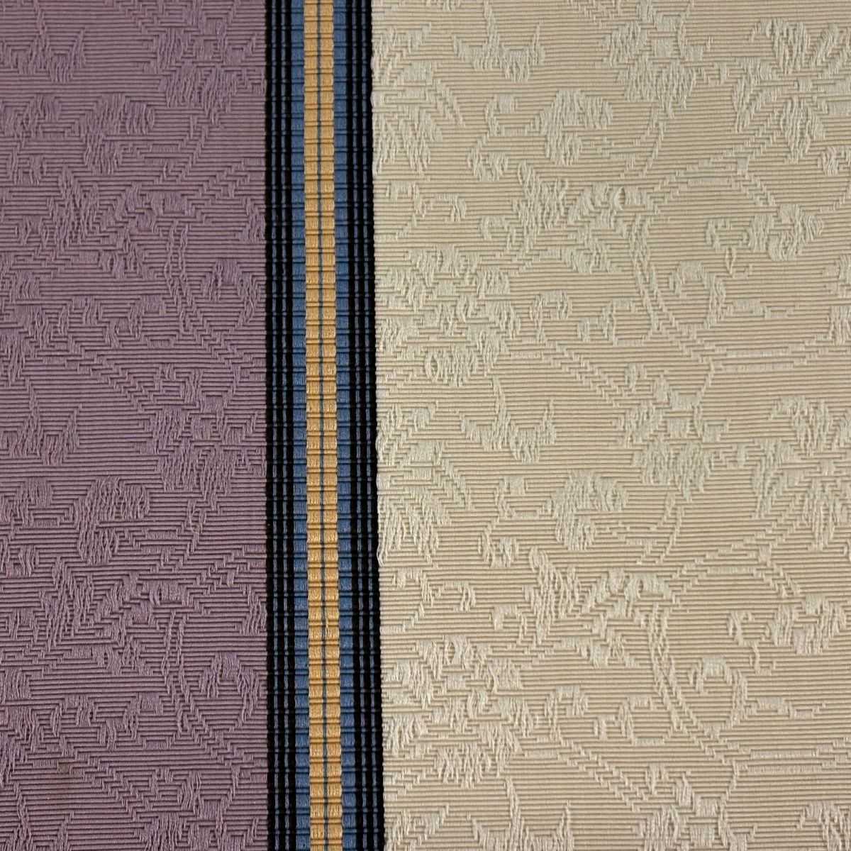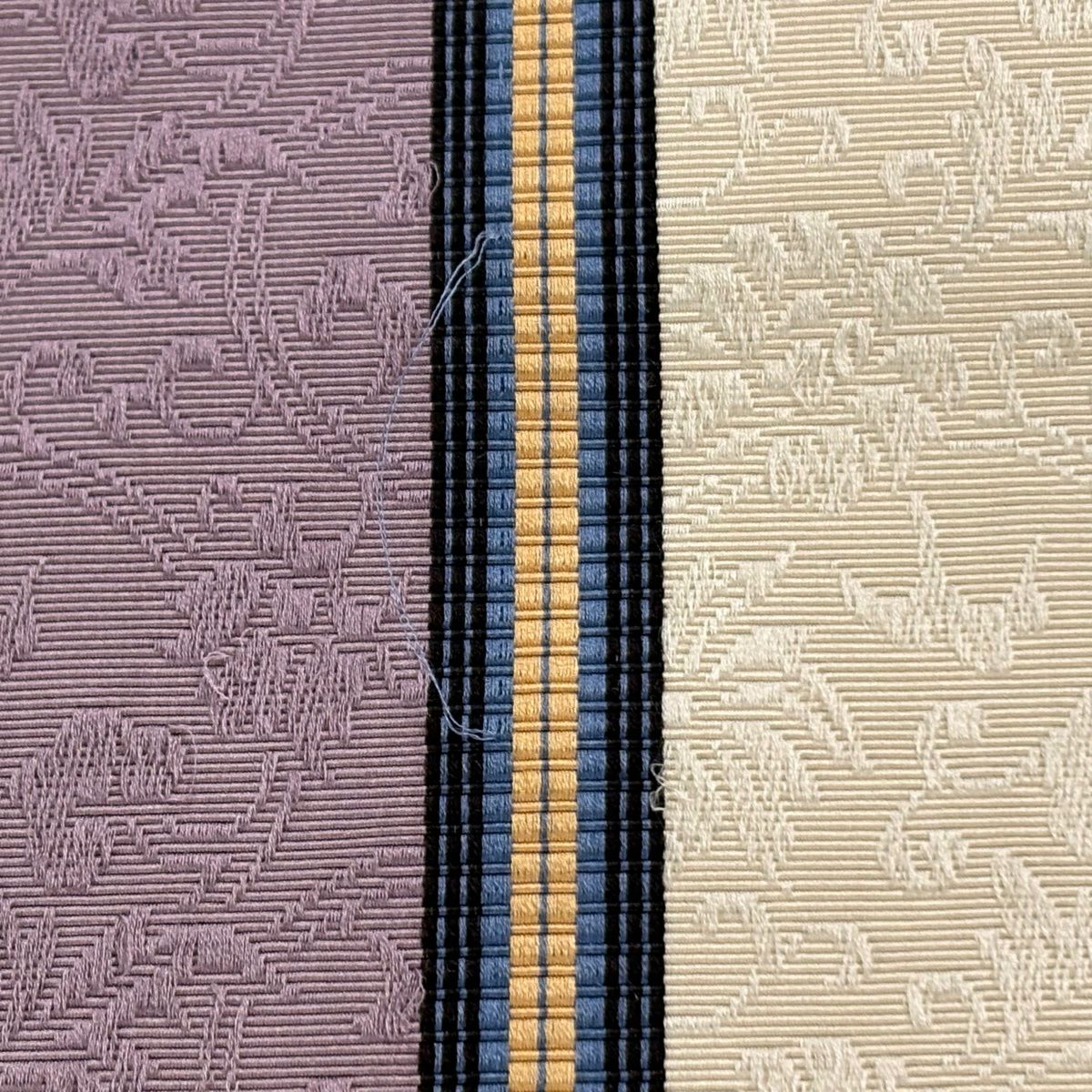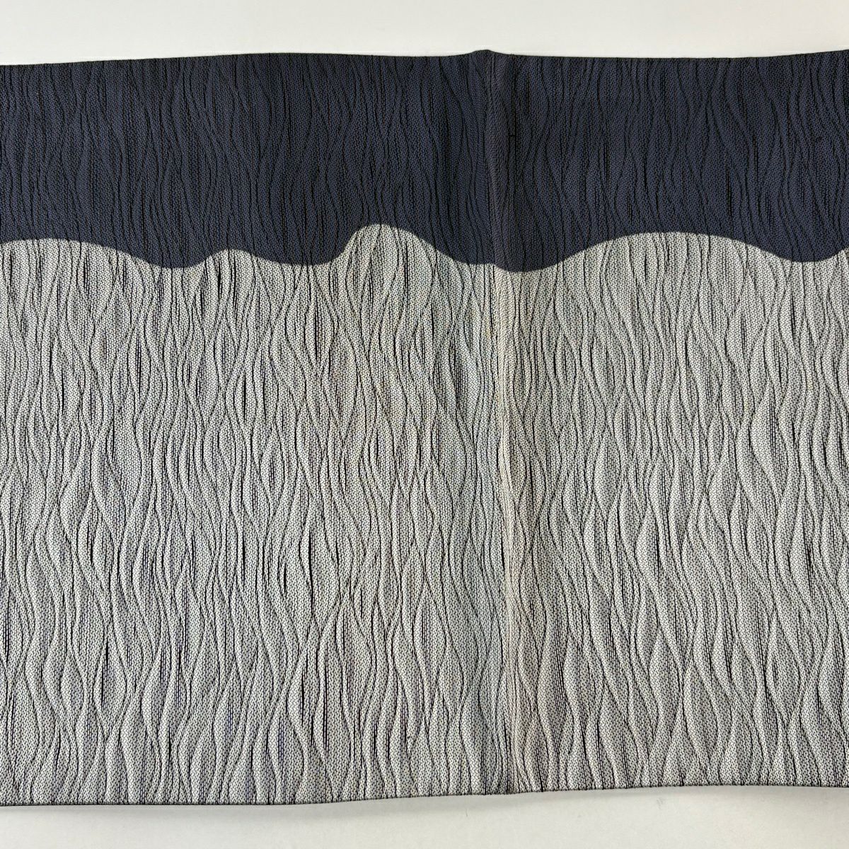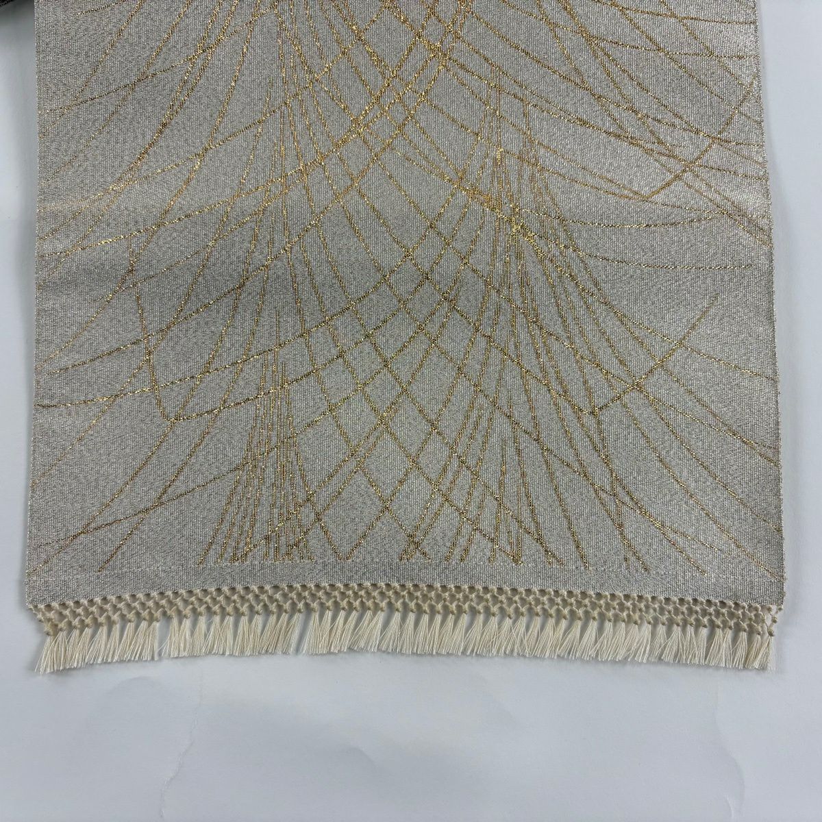 半幅帯 秀品 縞 地紋 クリーム 正絹