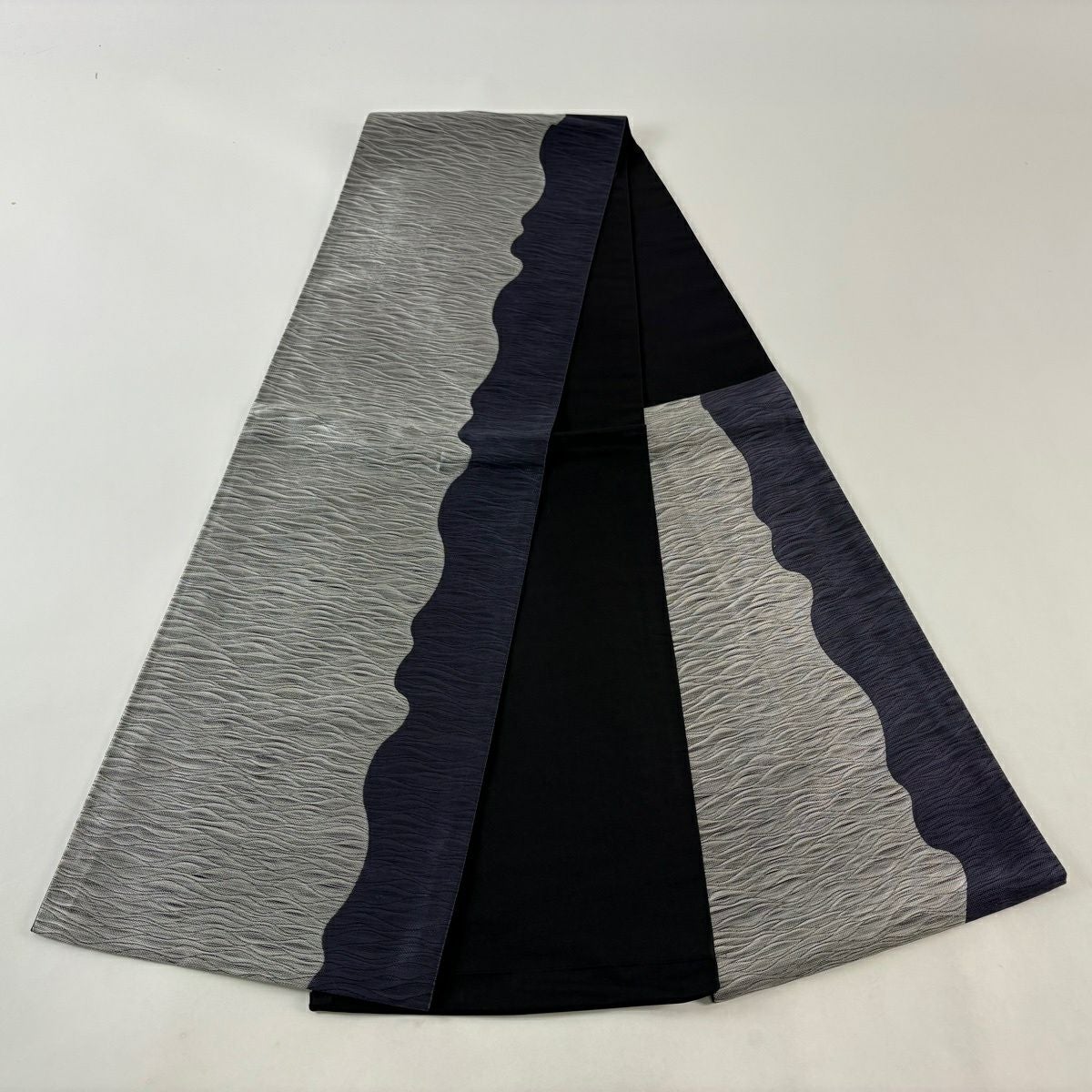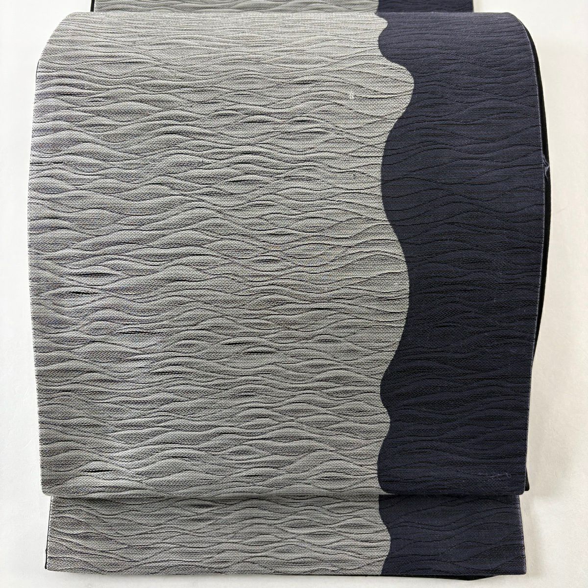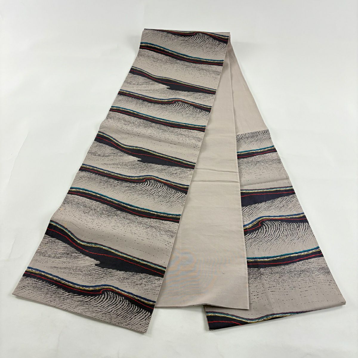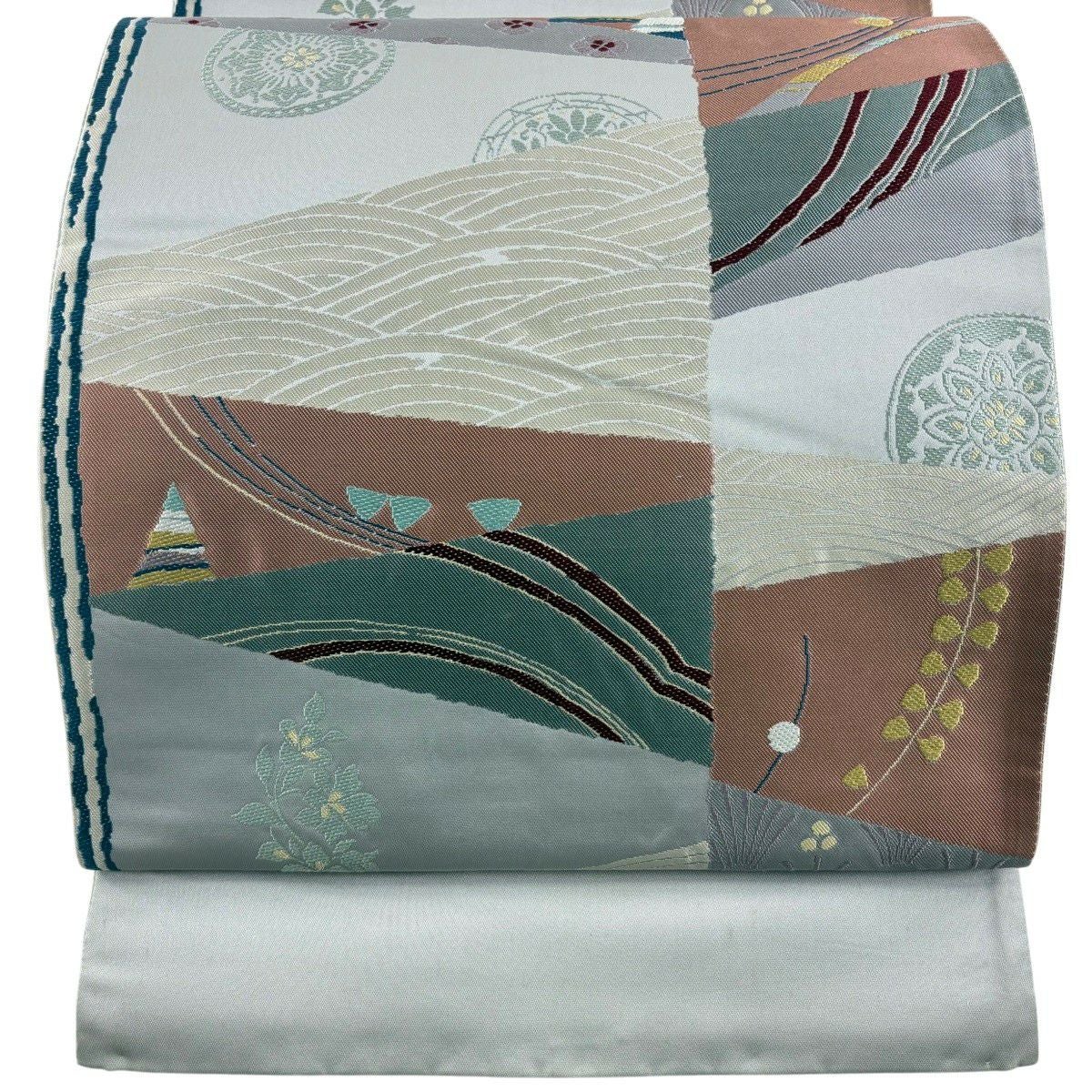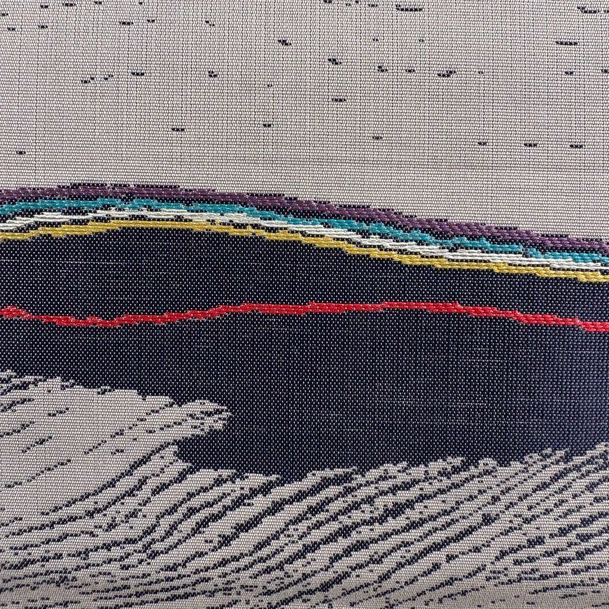 袋帯 秀品 波 草花 灰色 六通 正絹