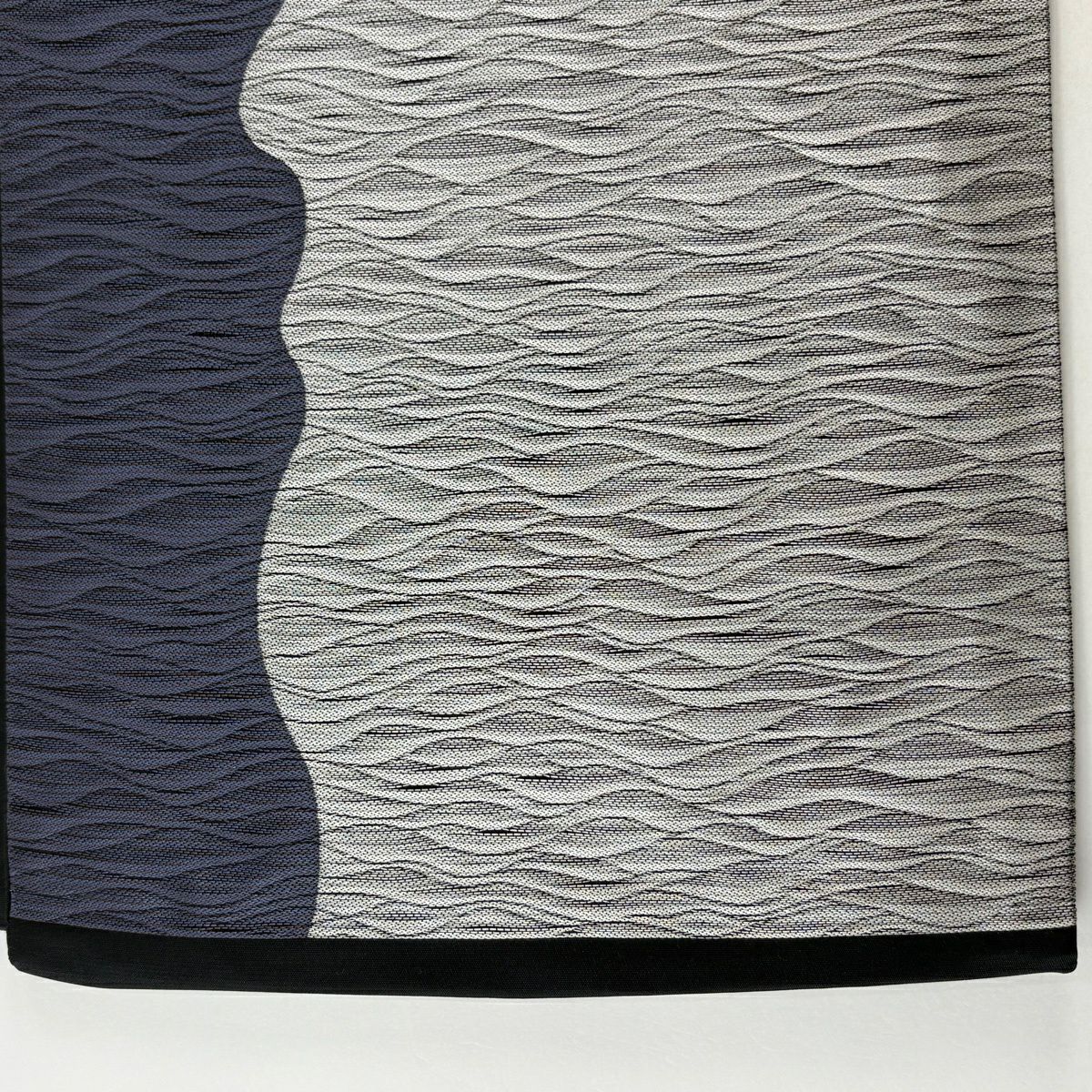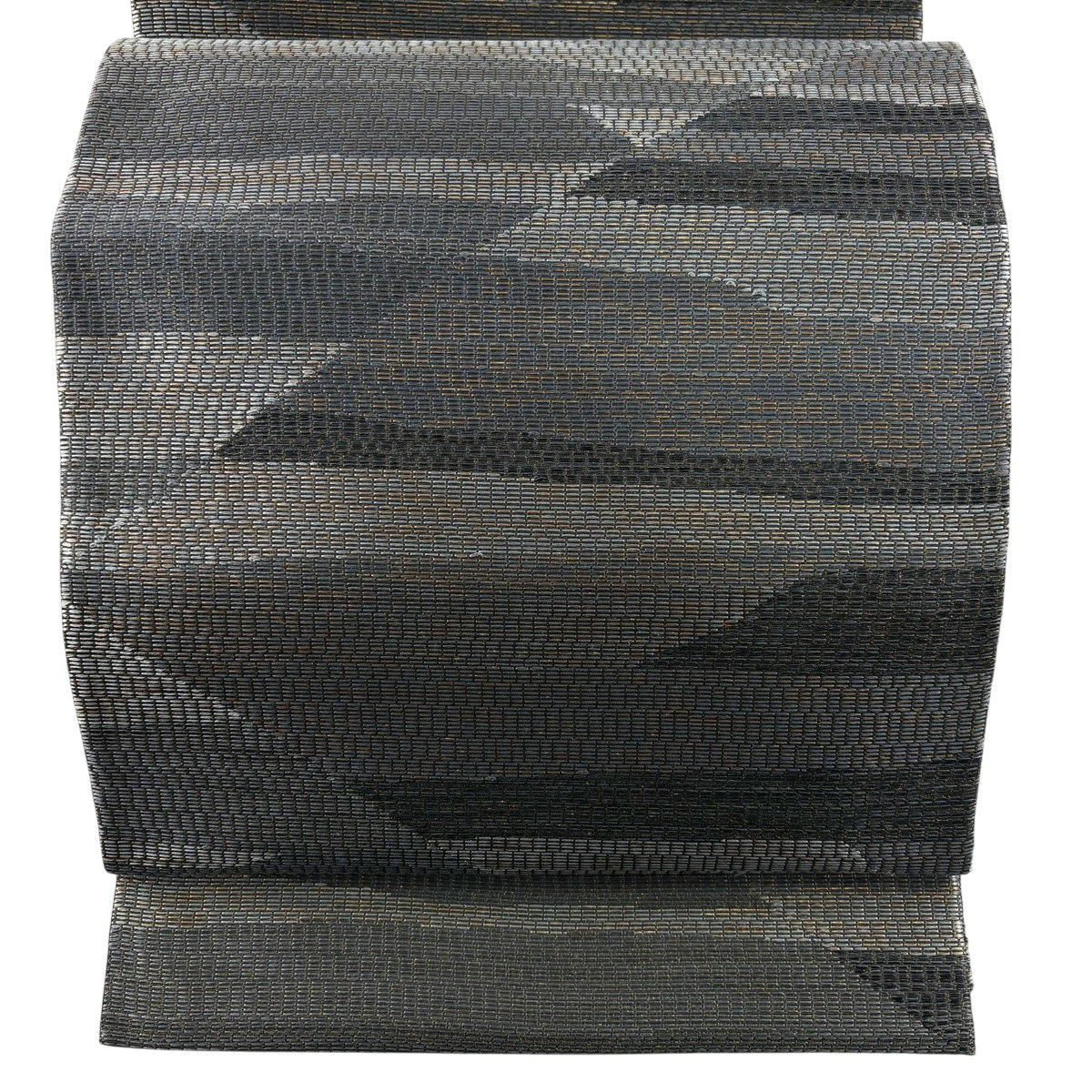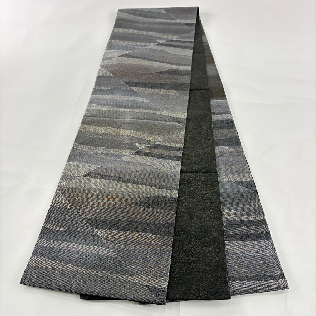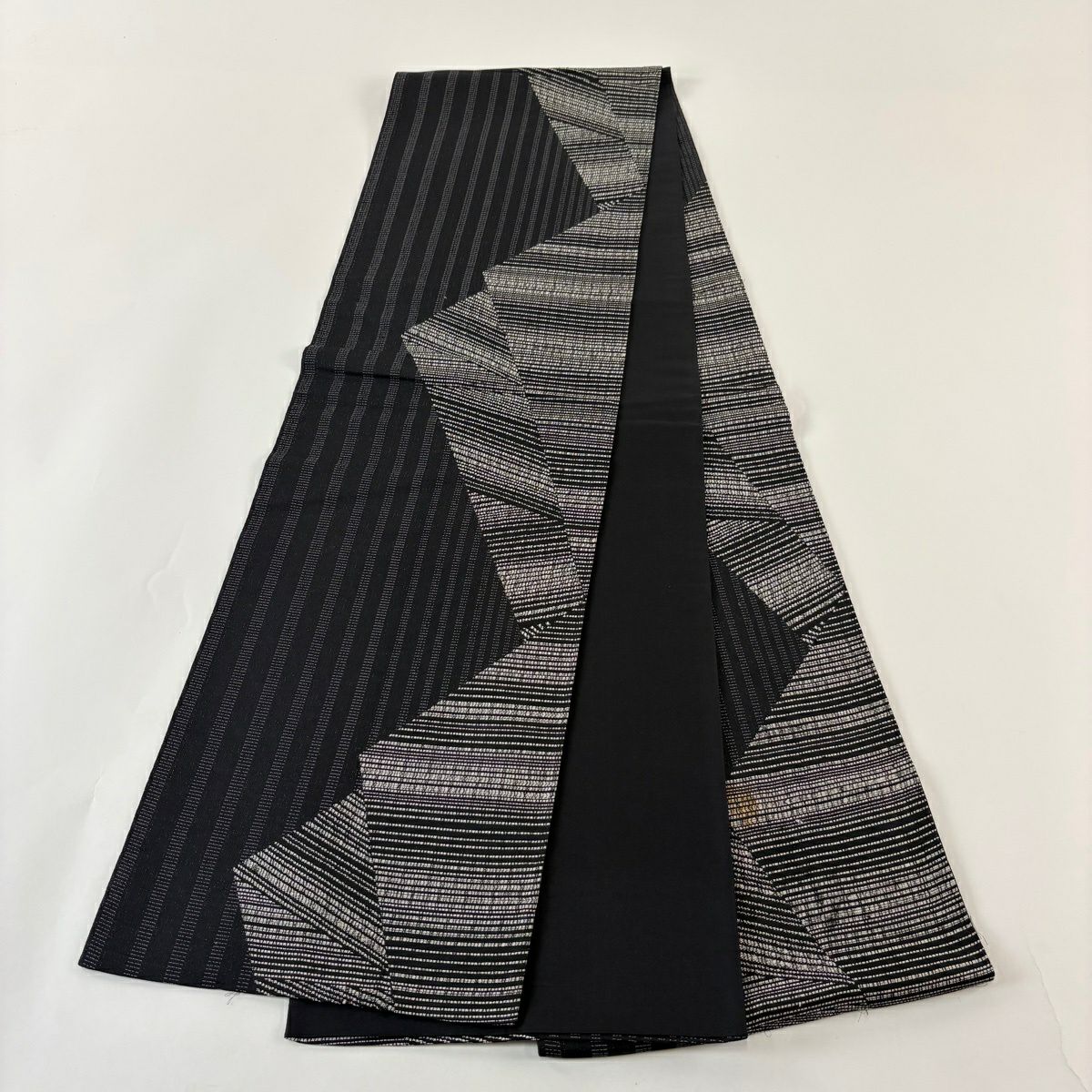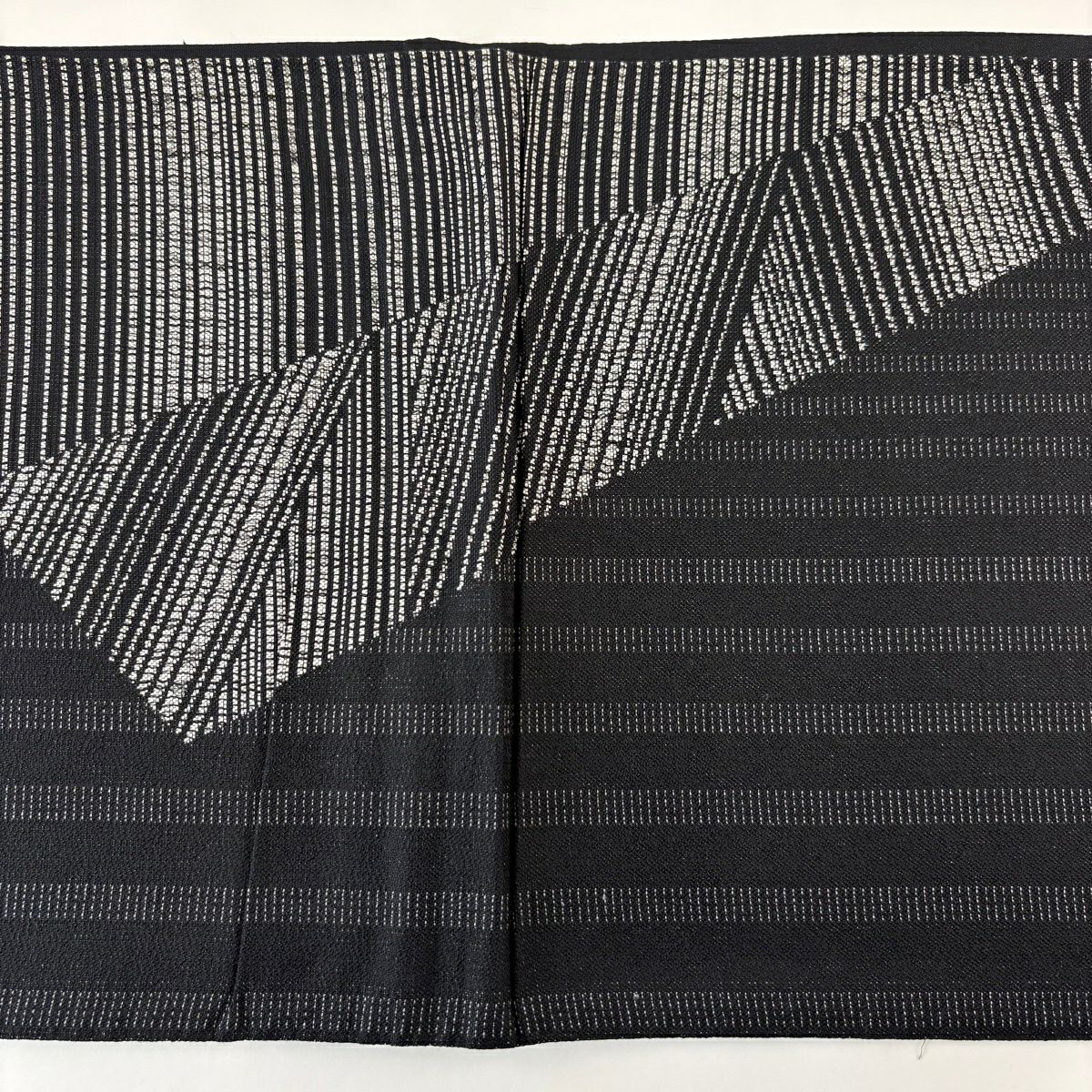 袋帯 秀品 幾何学 縞 黒 全通 正絹