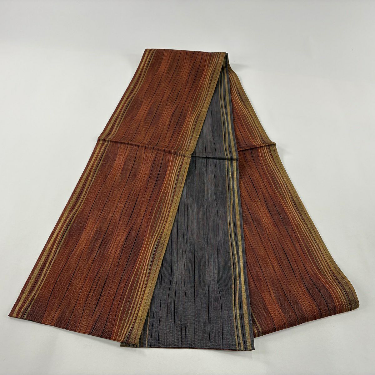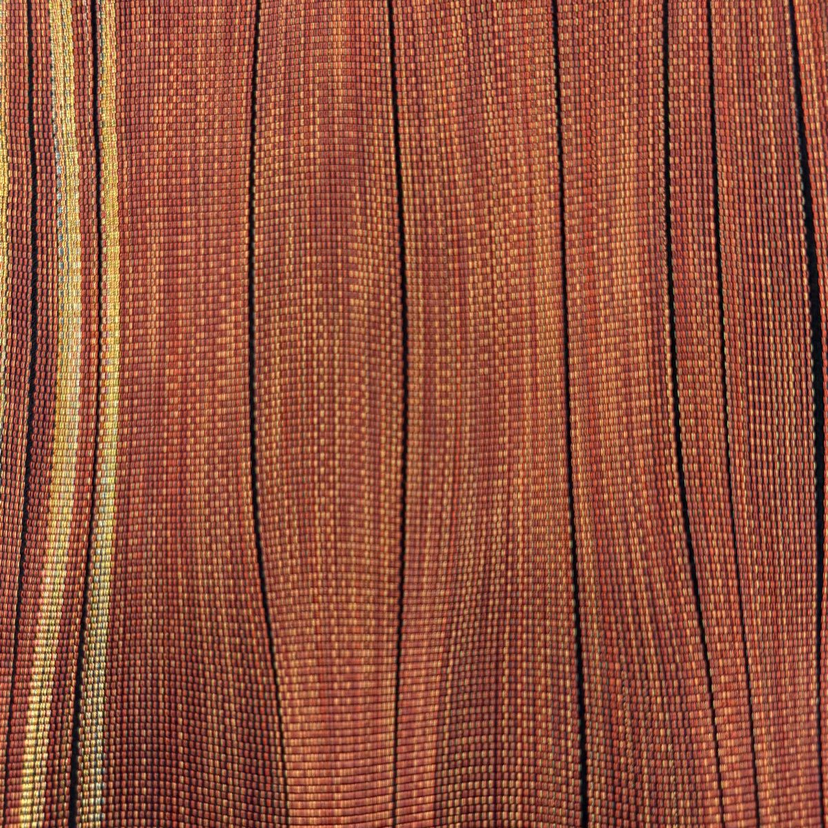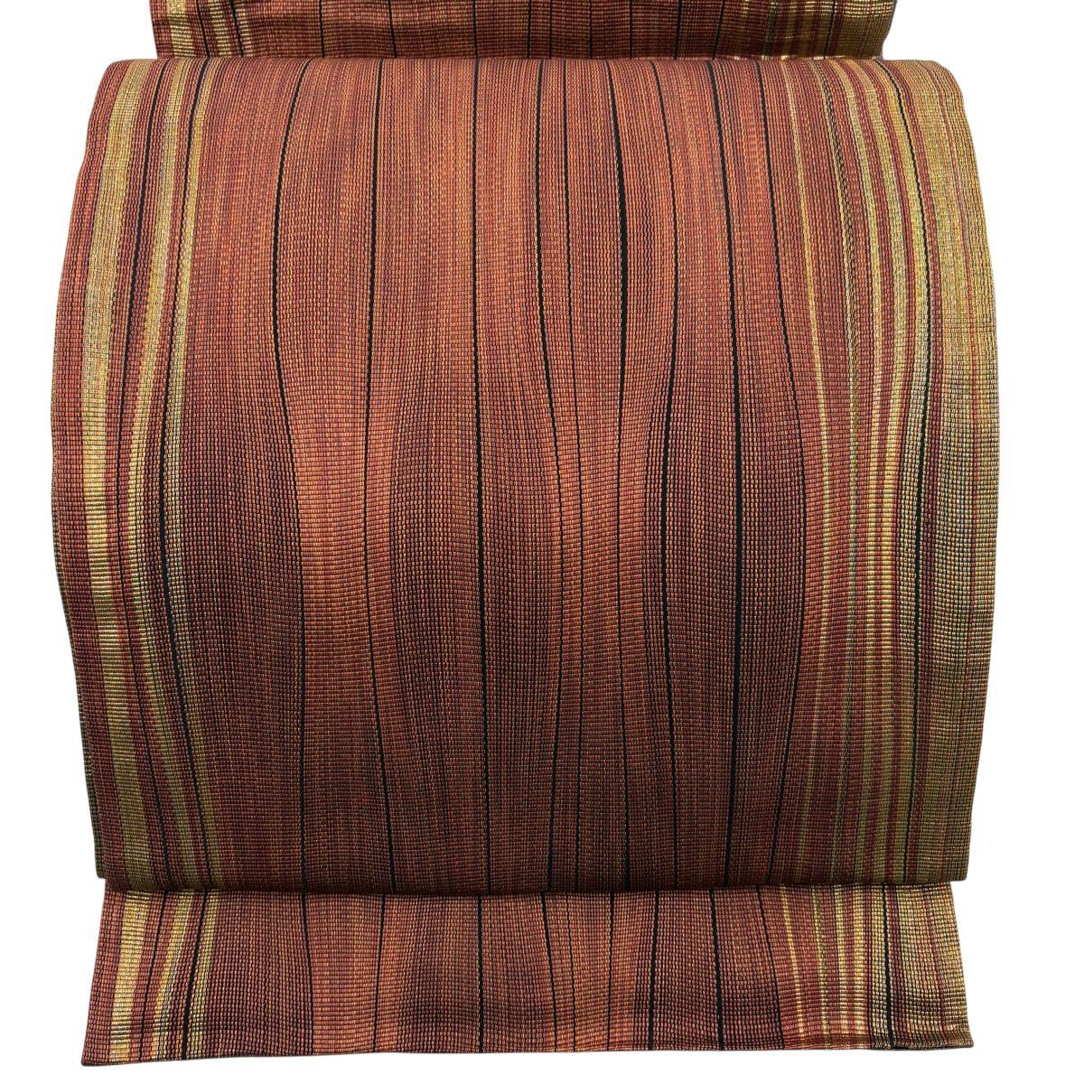 袋帯 秀品 縞 金糸 赤茶 全通 正絹