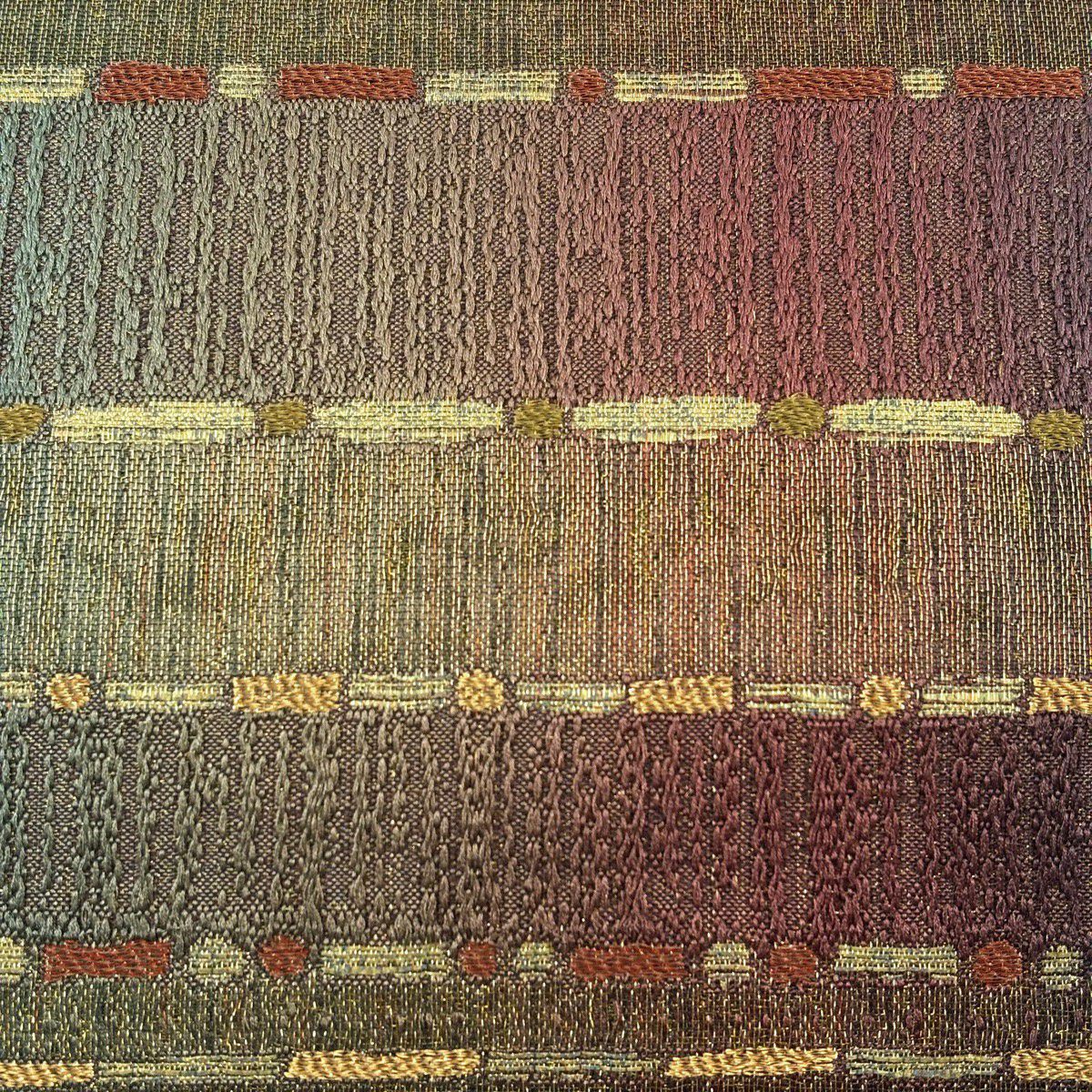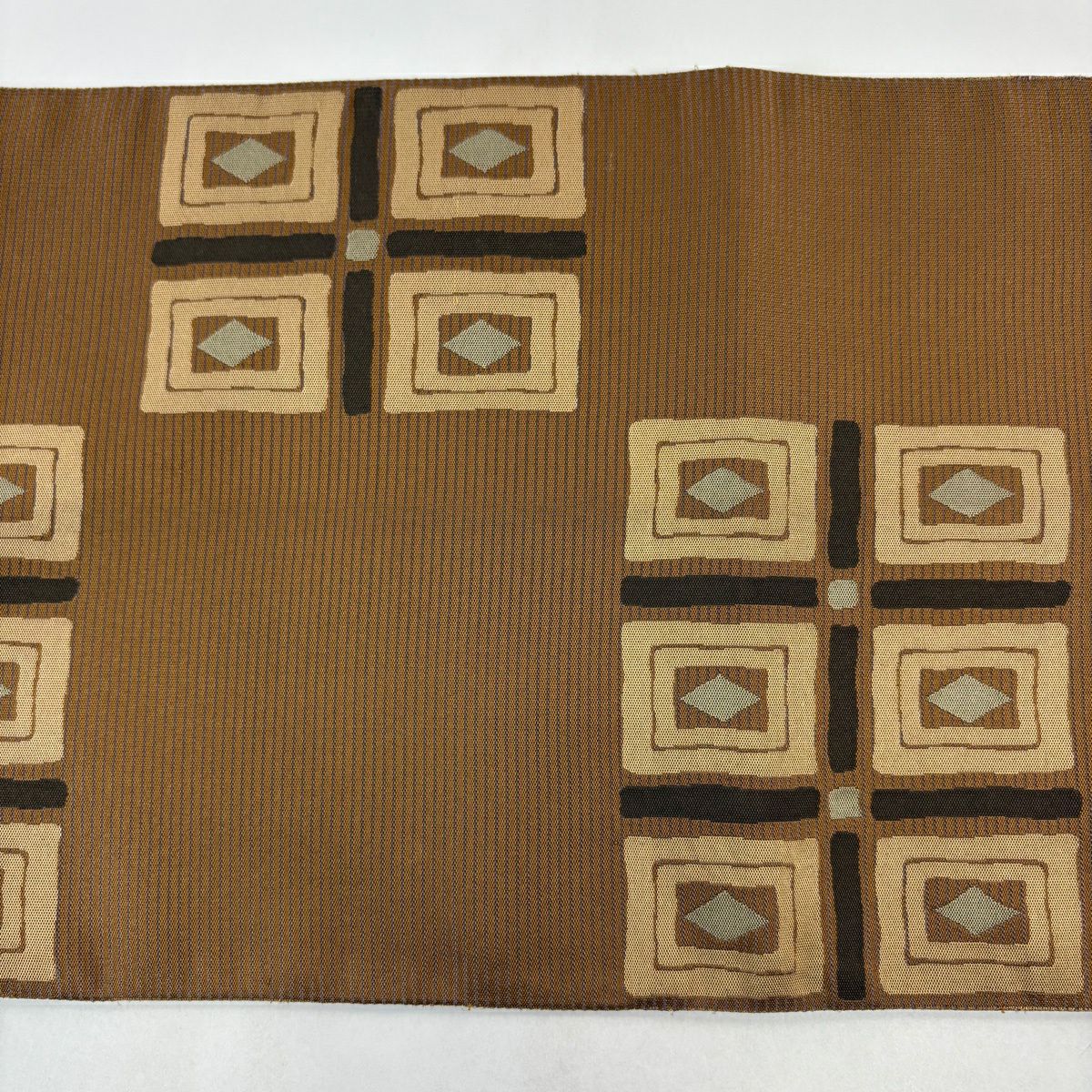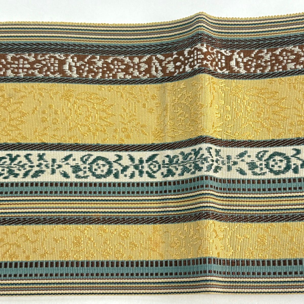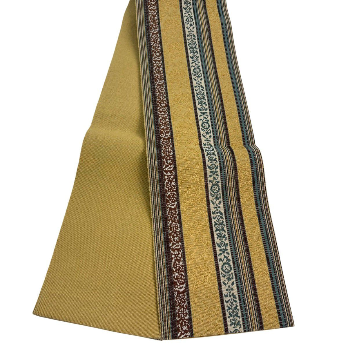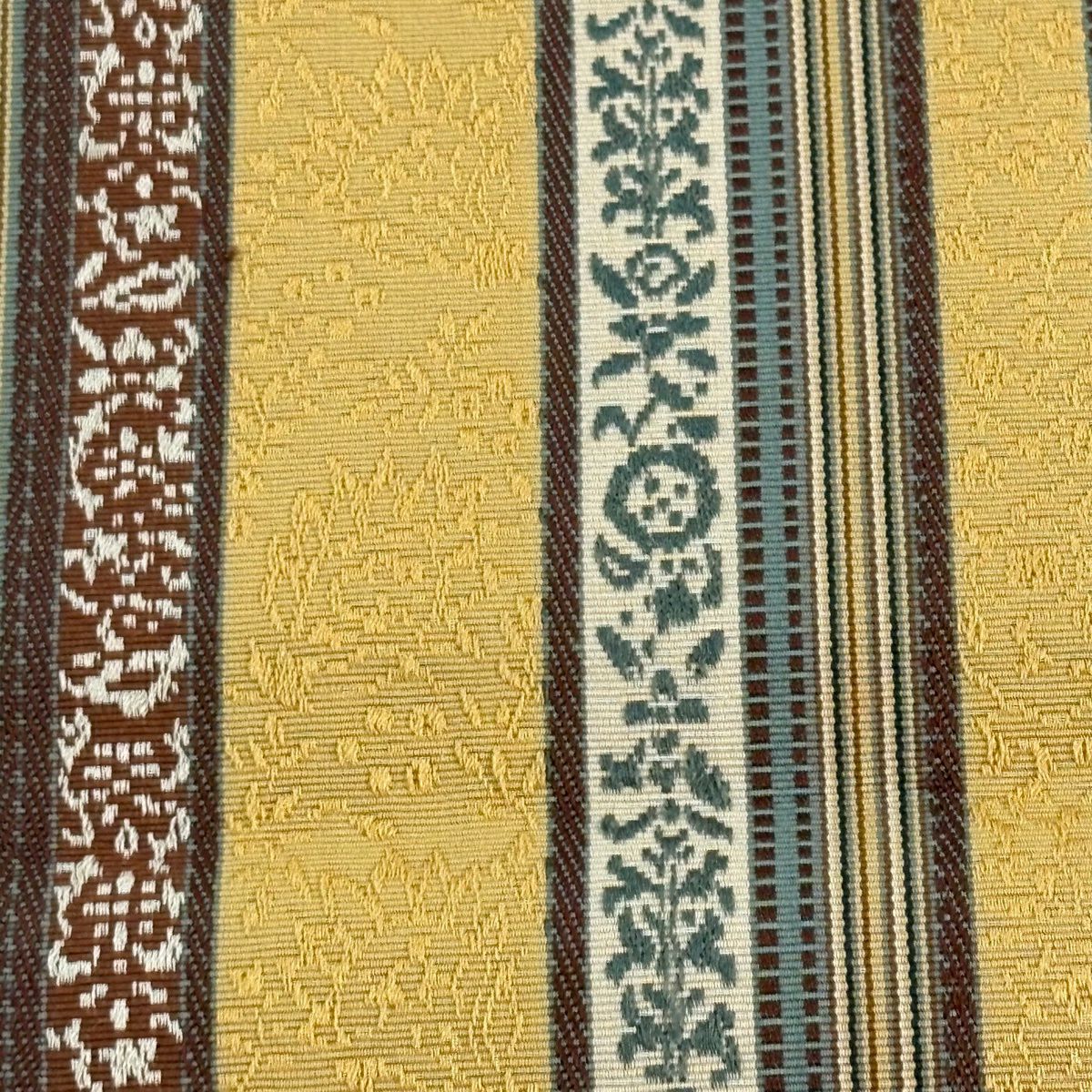 袋帯 秀品 縞 鳥 黄土色 全通 正絹