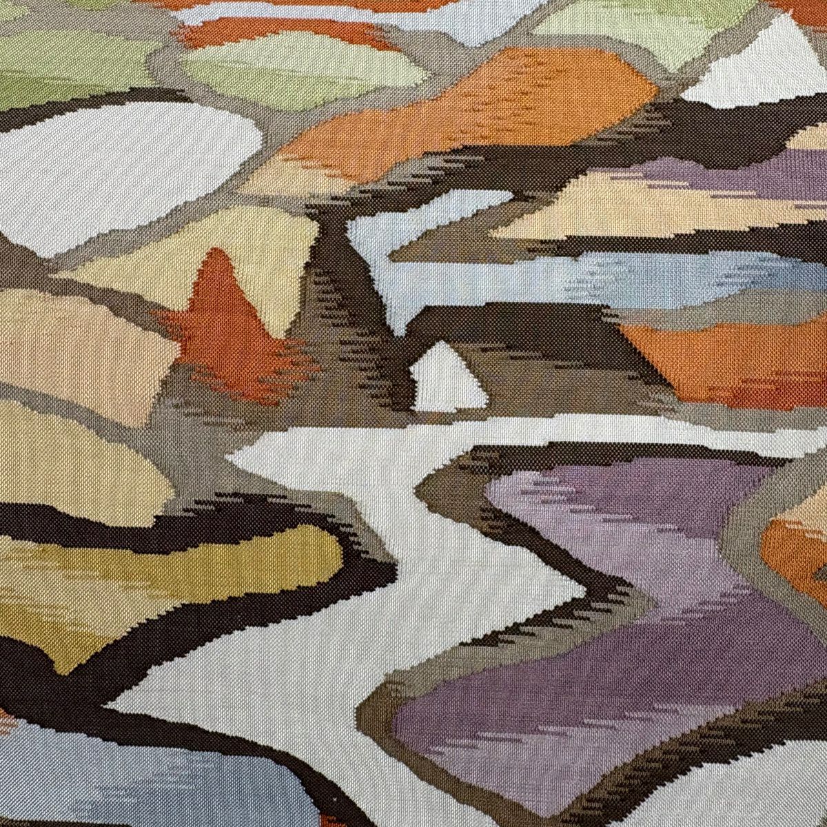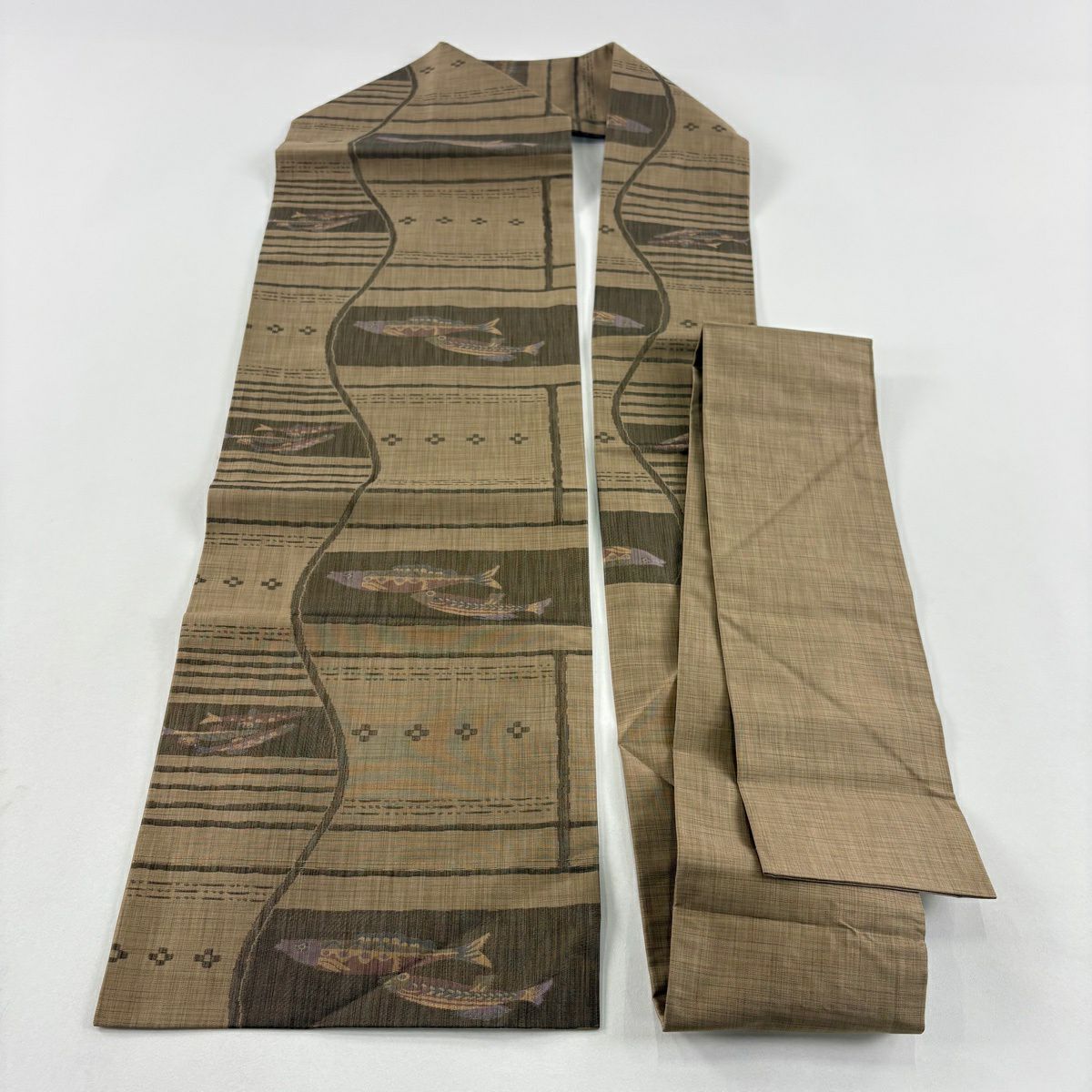 名古屋帯 秀品 魚 幾何学 灰茶 正絹