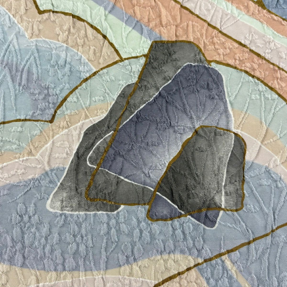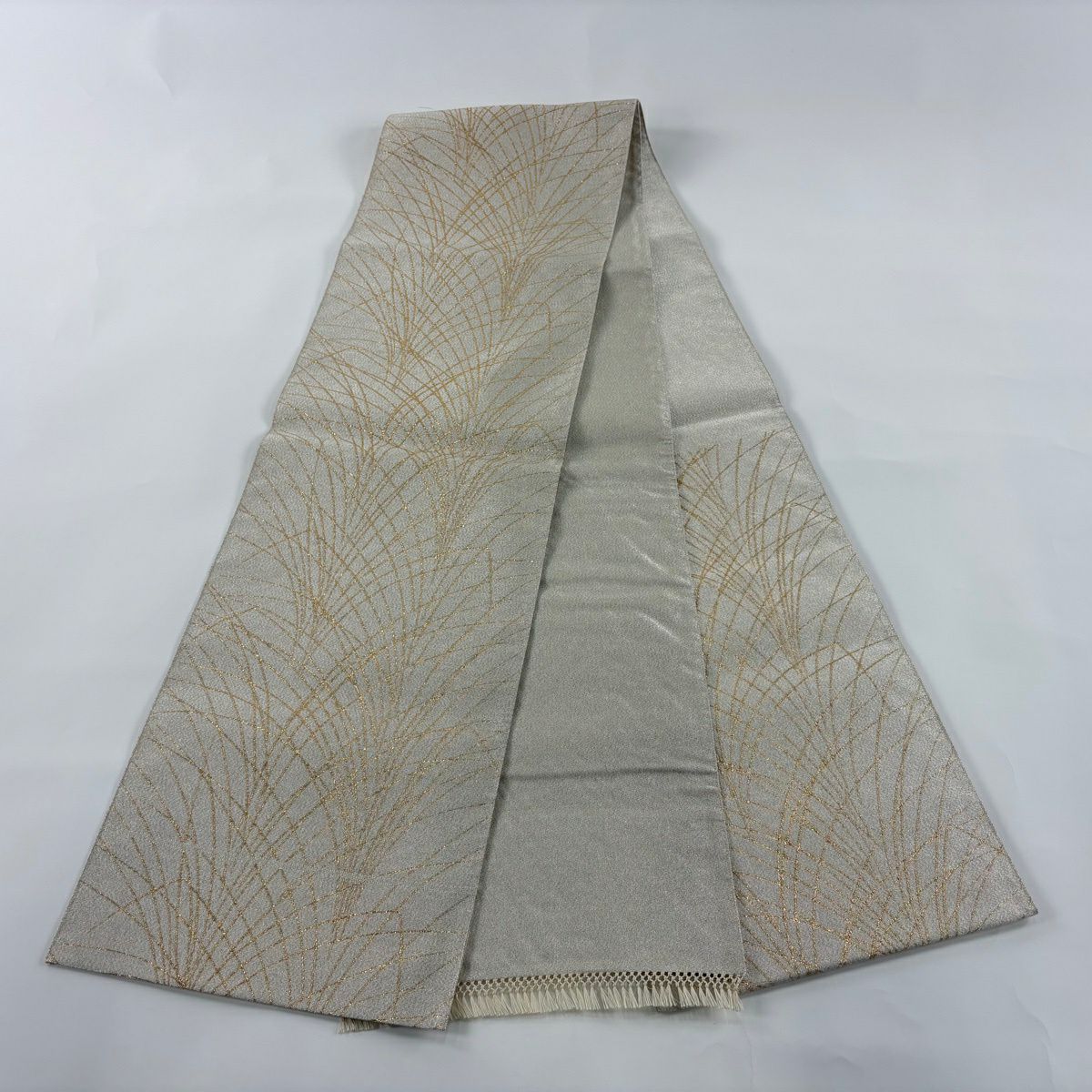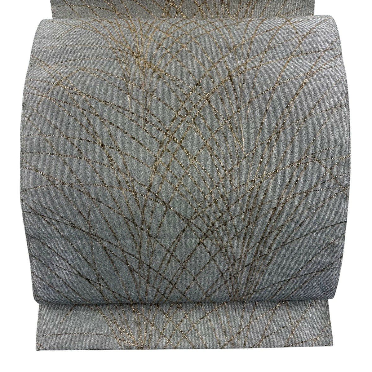 袋帯 秀品 霞 金糸 灰色 六通 正絹