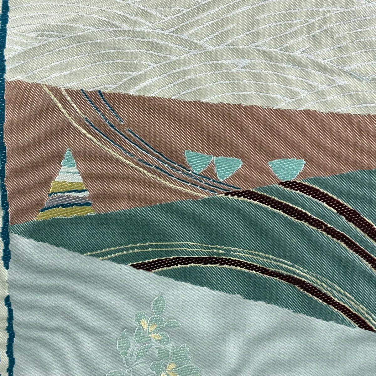 袋帯 秀品 風景 薄緑 お太鼓柄 正絹