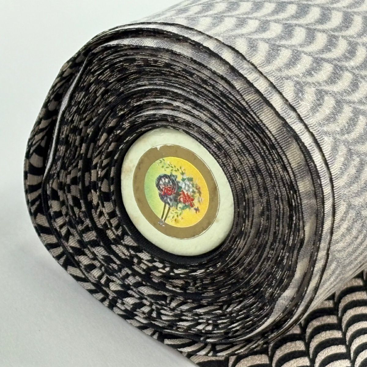 反物 秀品 小紋 幾何学模様 黒 正絹