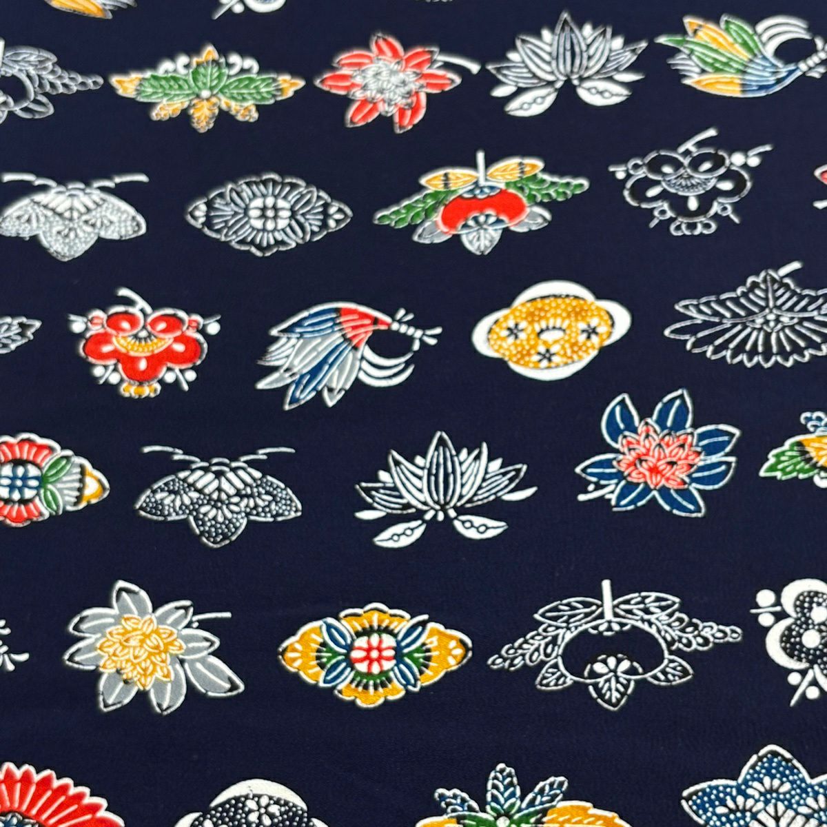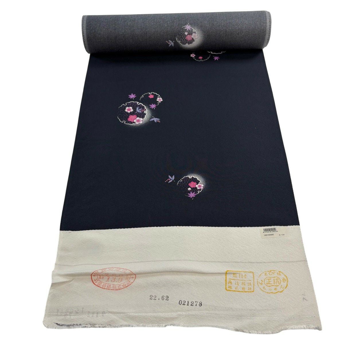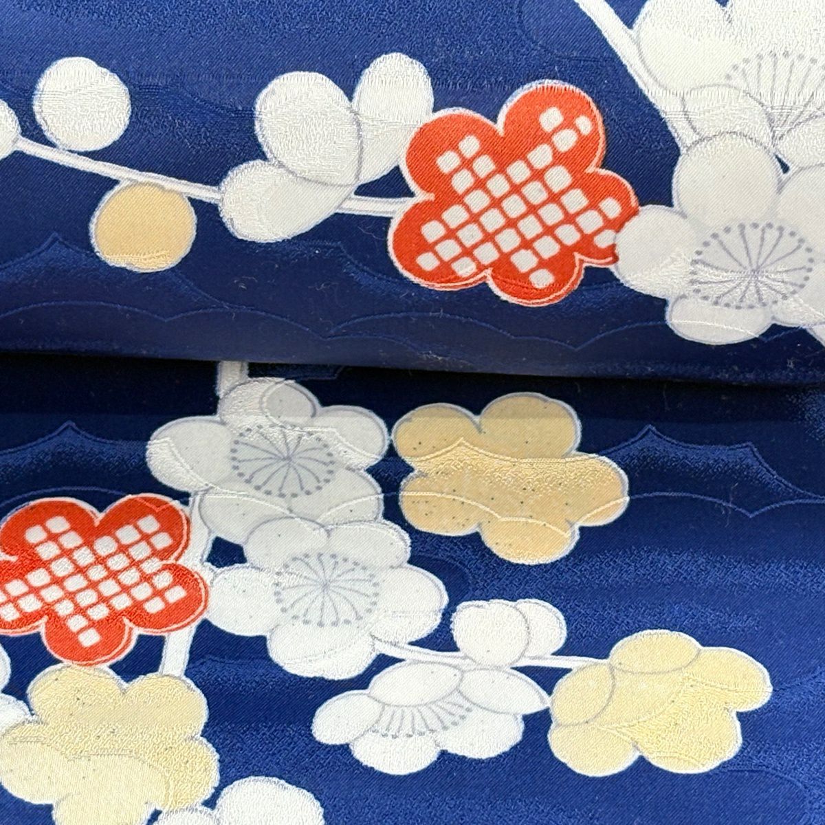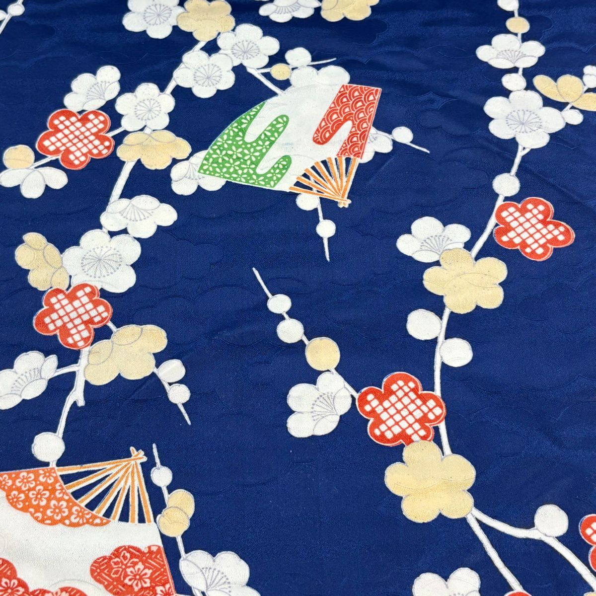 反物 秀品 小紋 梅 橘花 濃紺 正絹