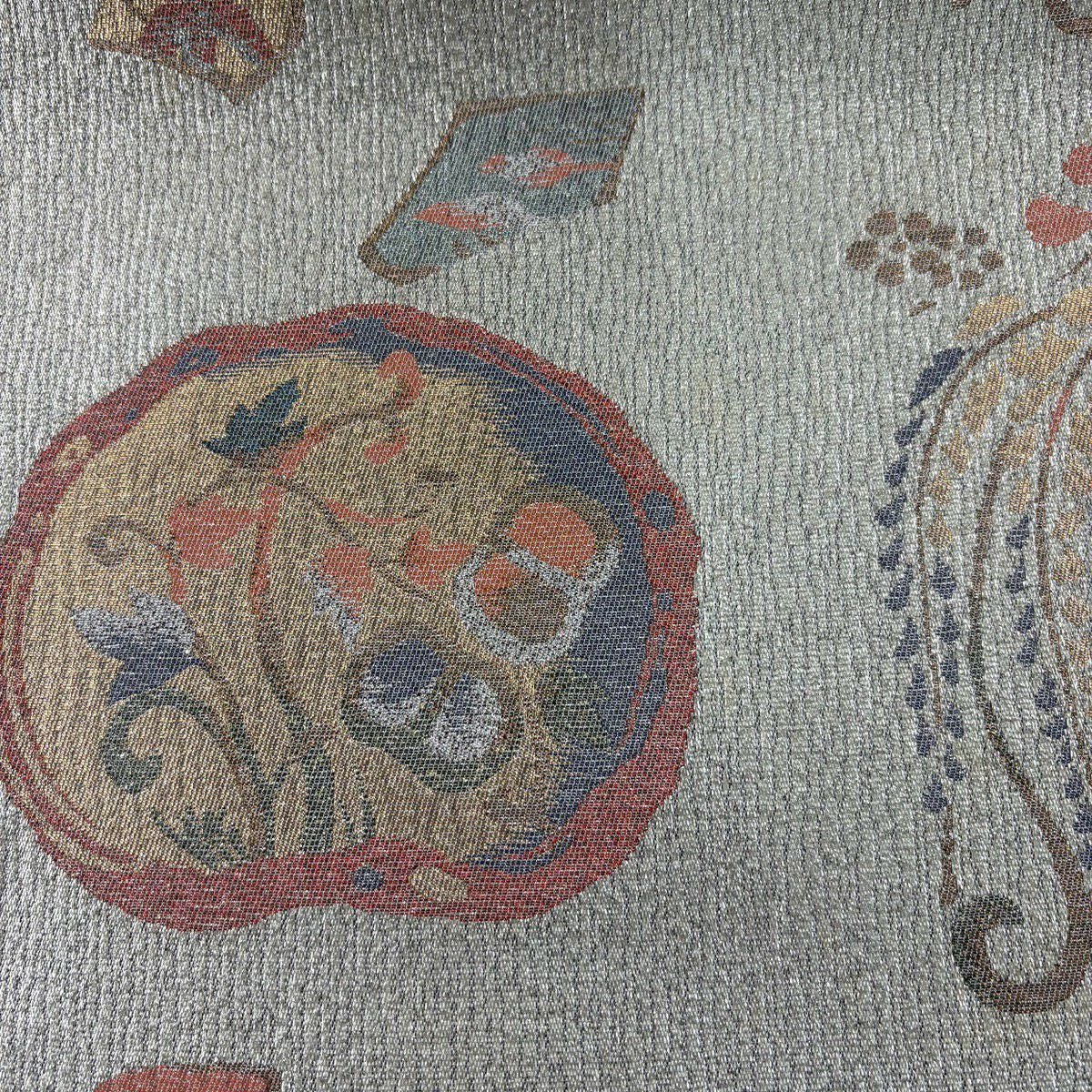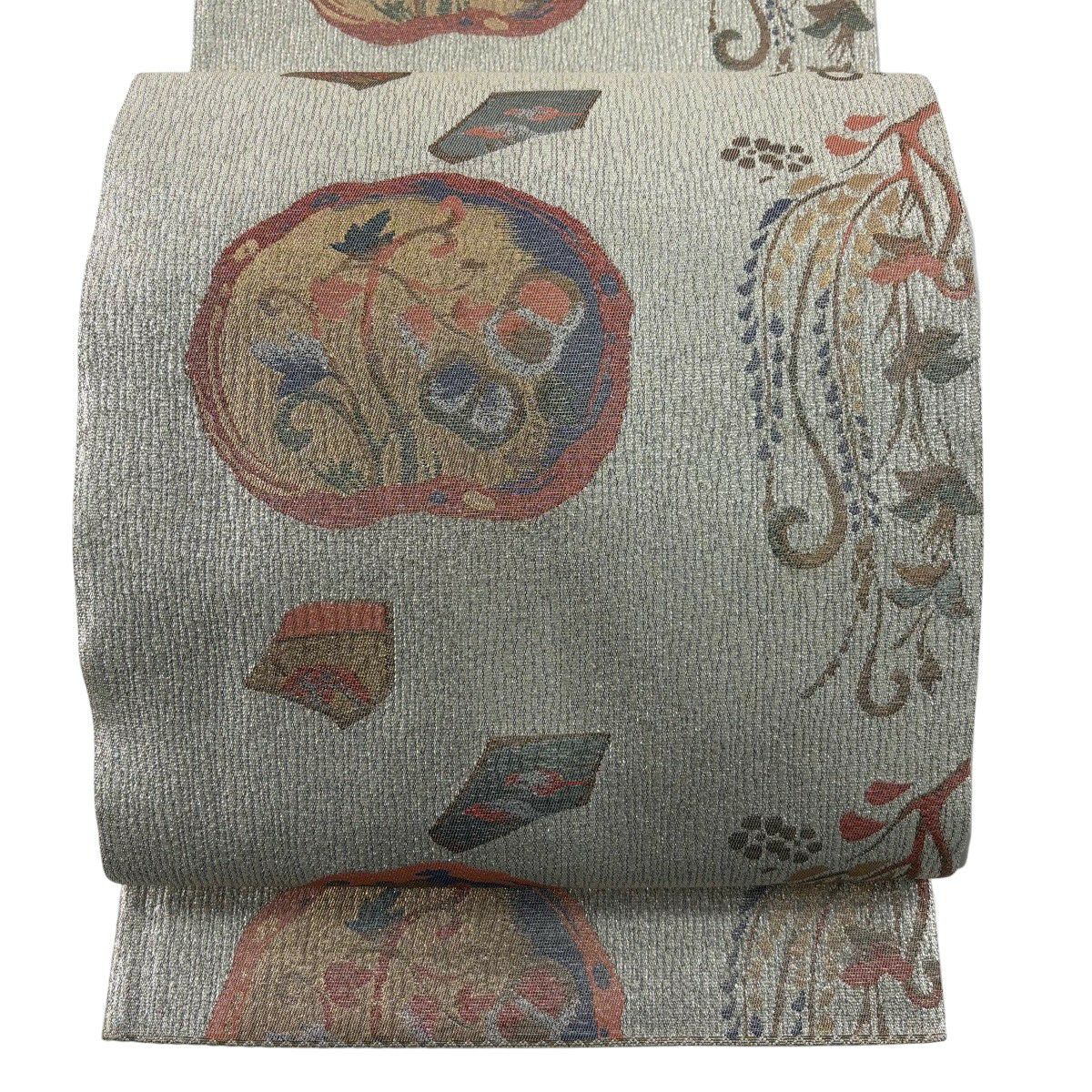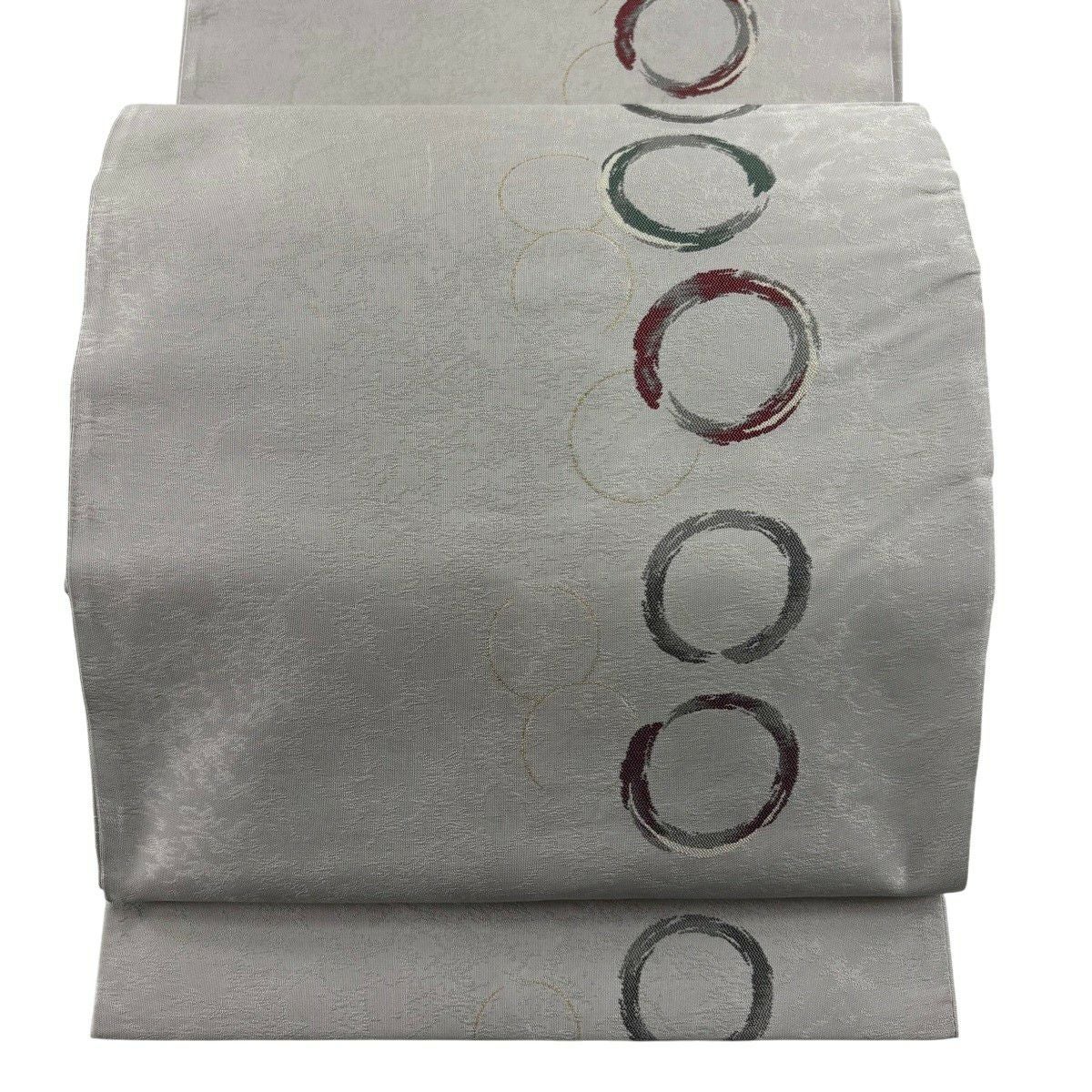 袋帯 秀品 丸文 箔 灰色 六通 正絹