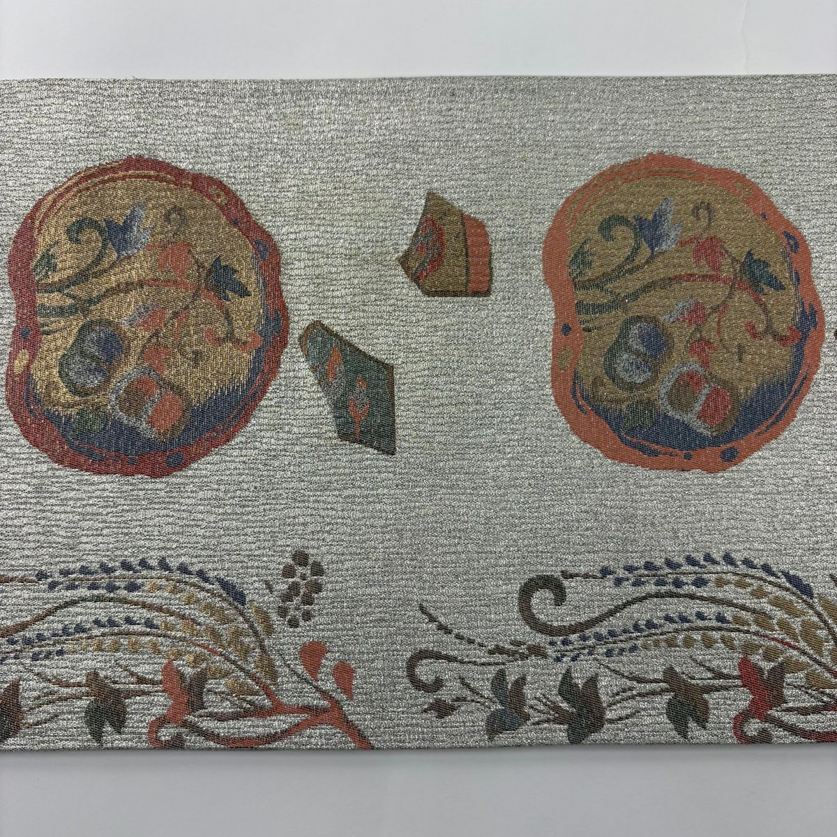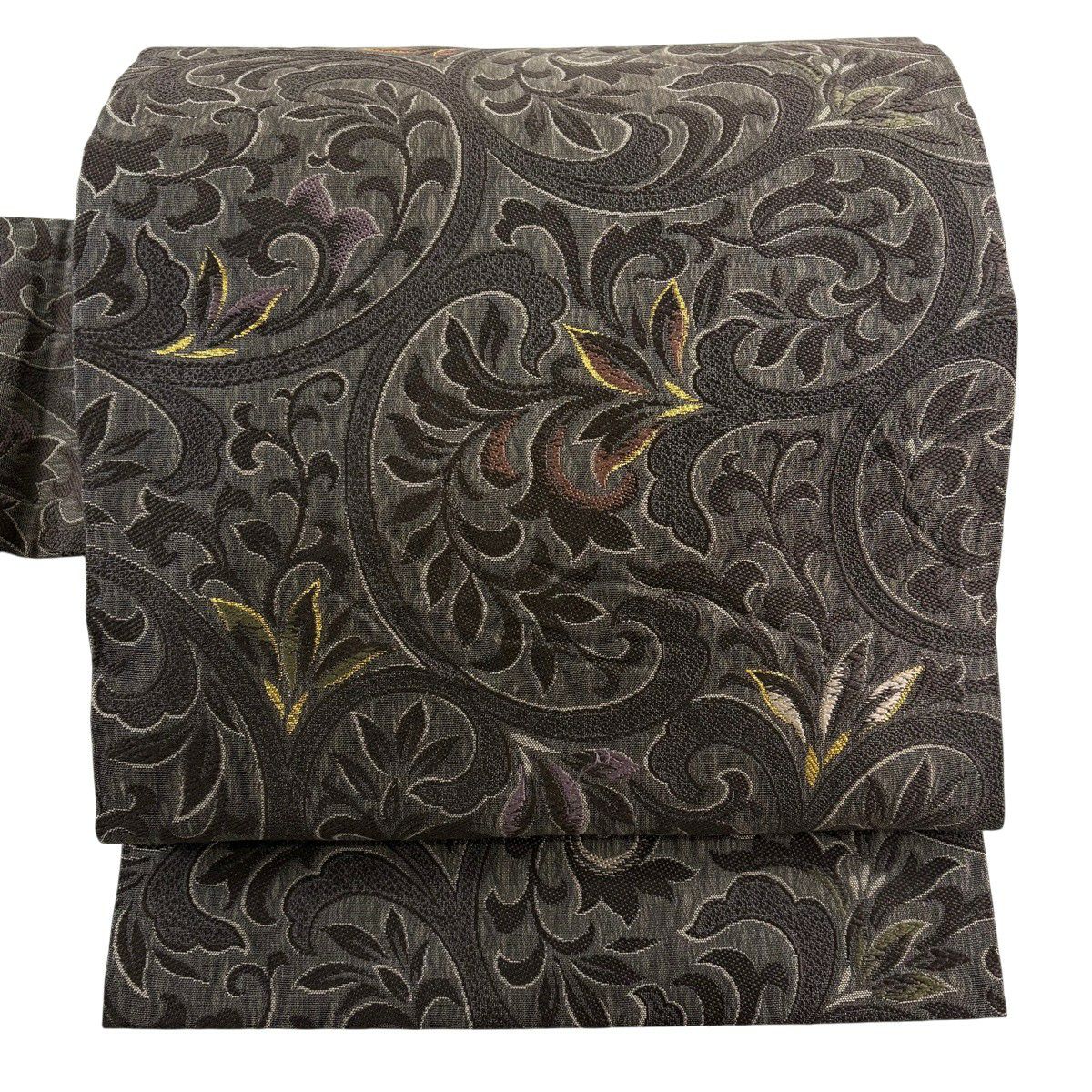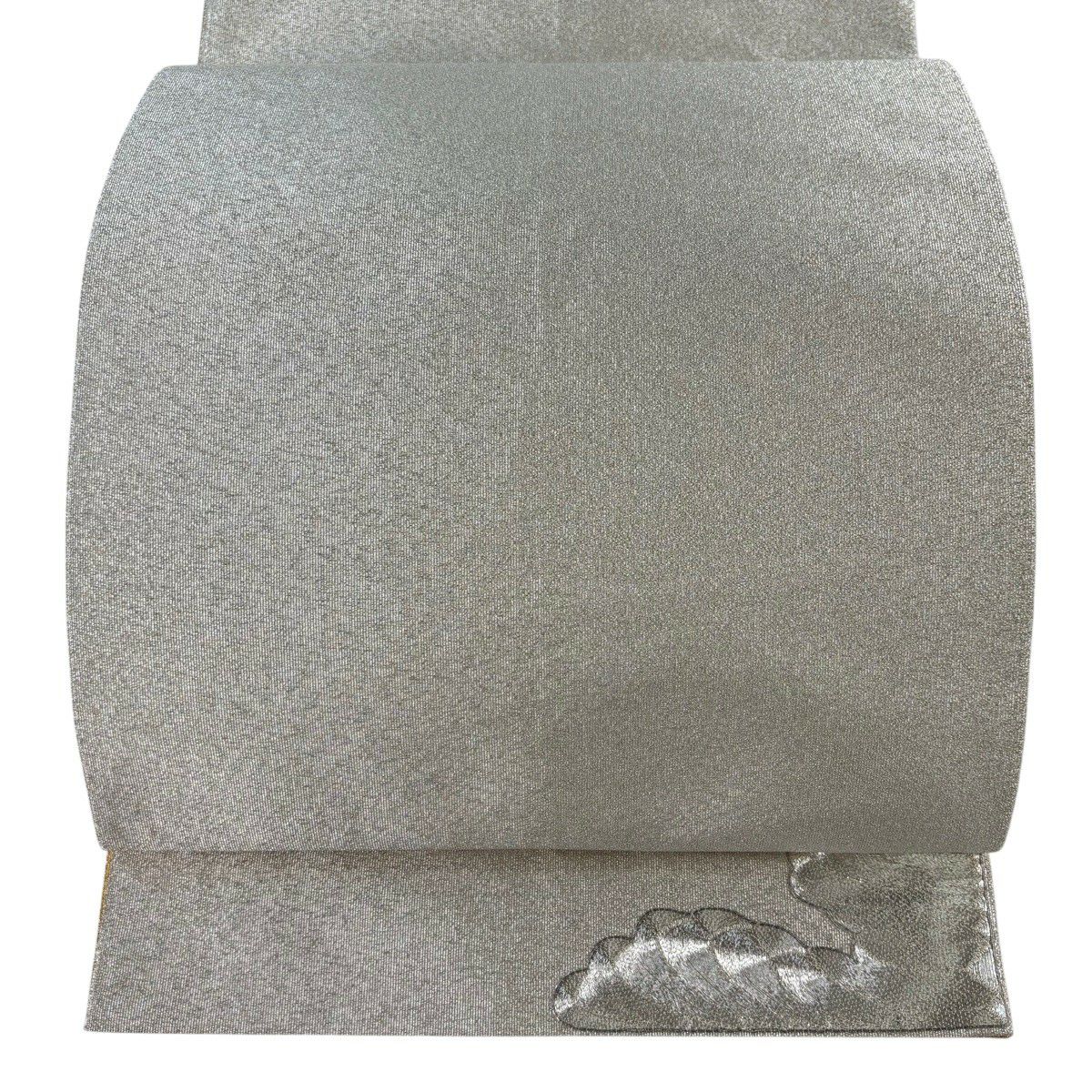 袋帯 秀品 草花 箔 銀色 六通 正絹