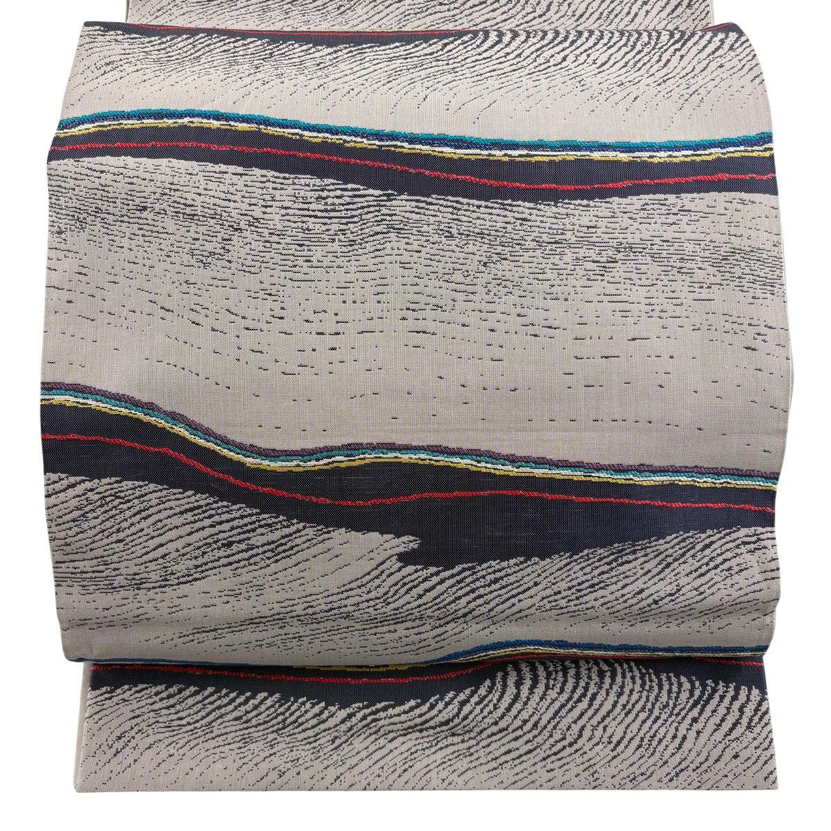 袋帯 秀品 よろけ縞 灰色 六通 正絹