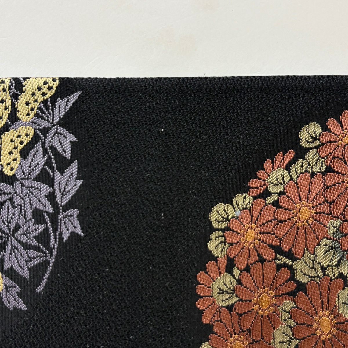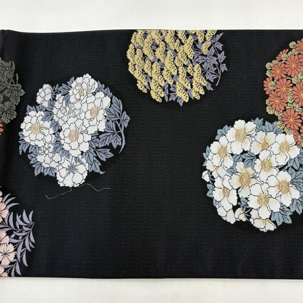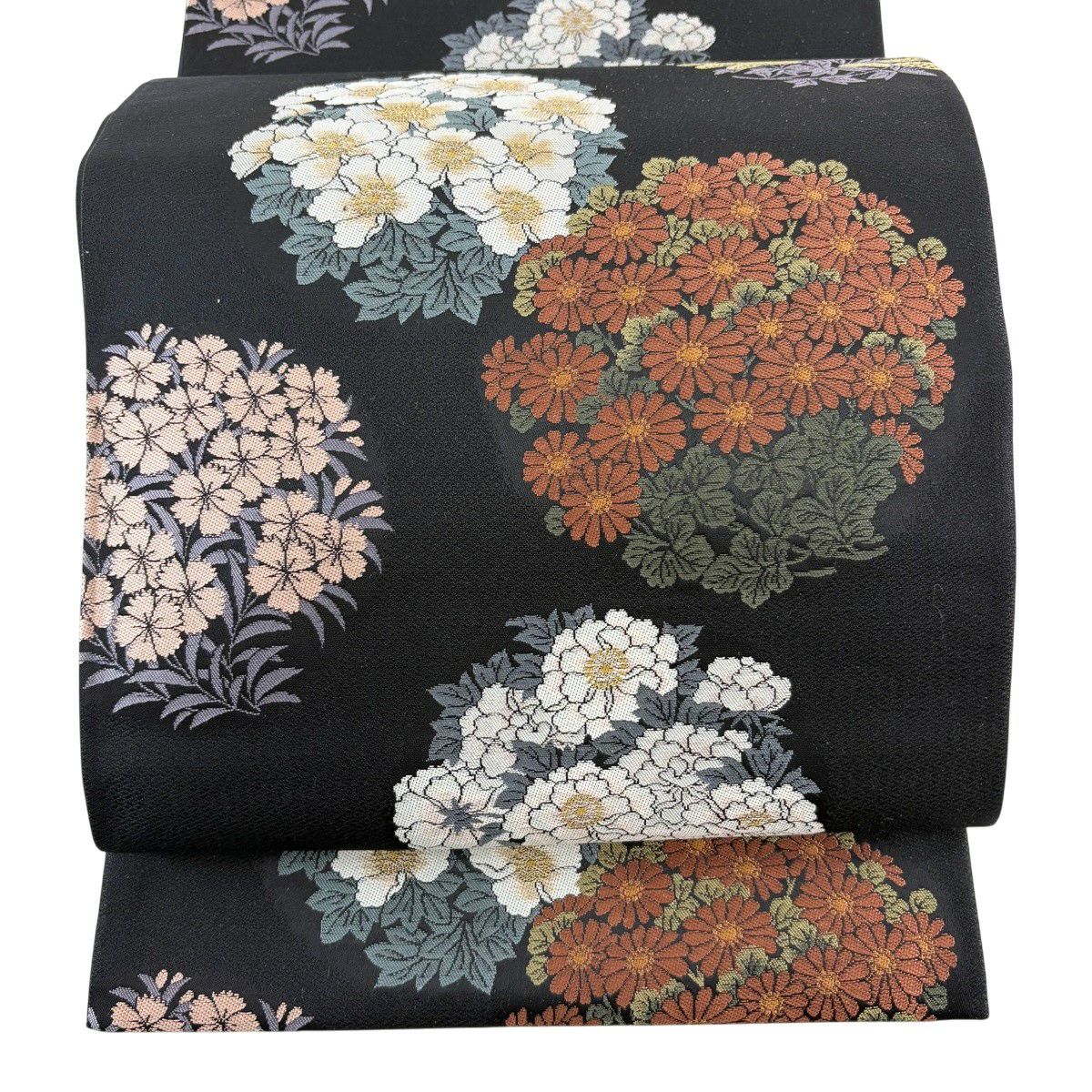 袋帯 秀品 花丸文 菊 黒 六通 正絹
