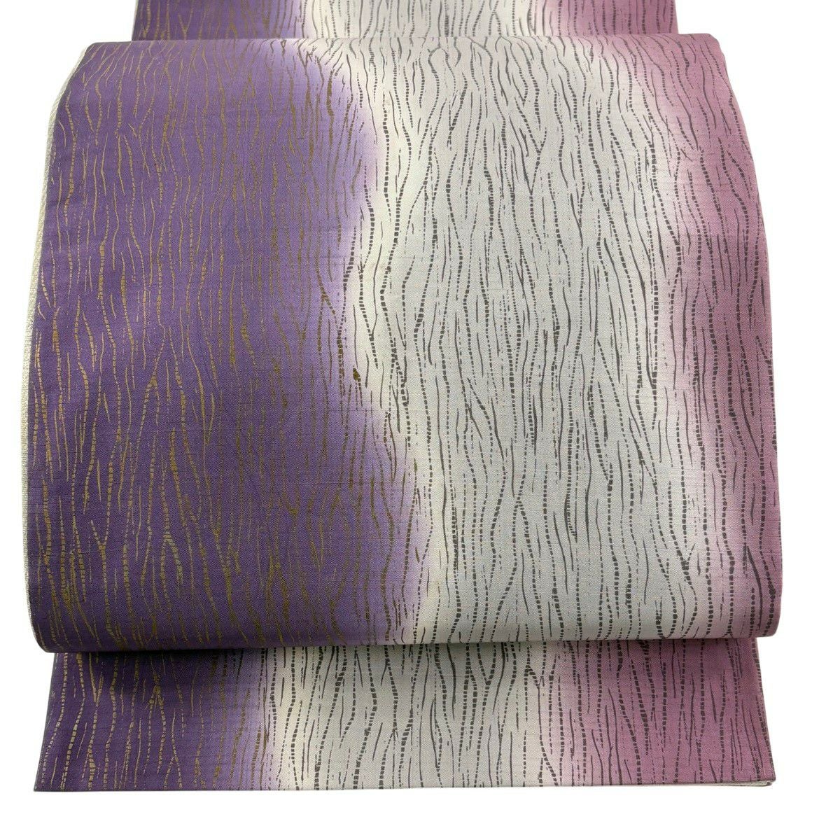 袋帯 秀品 流水 金彩 紫 全通 正絹
