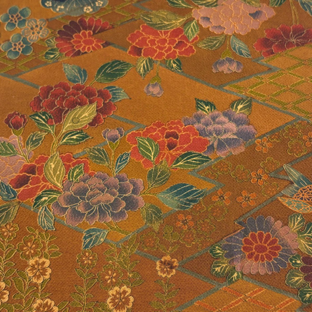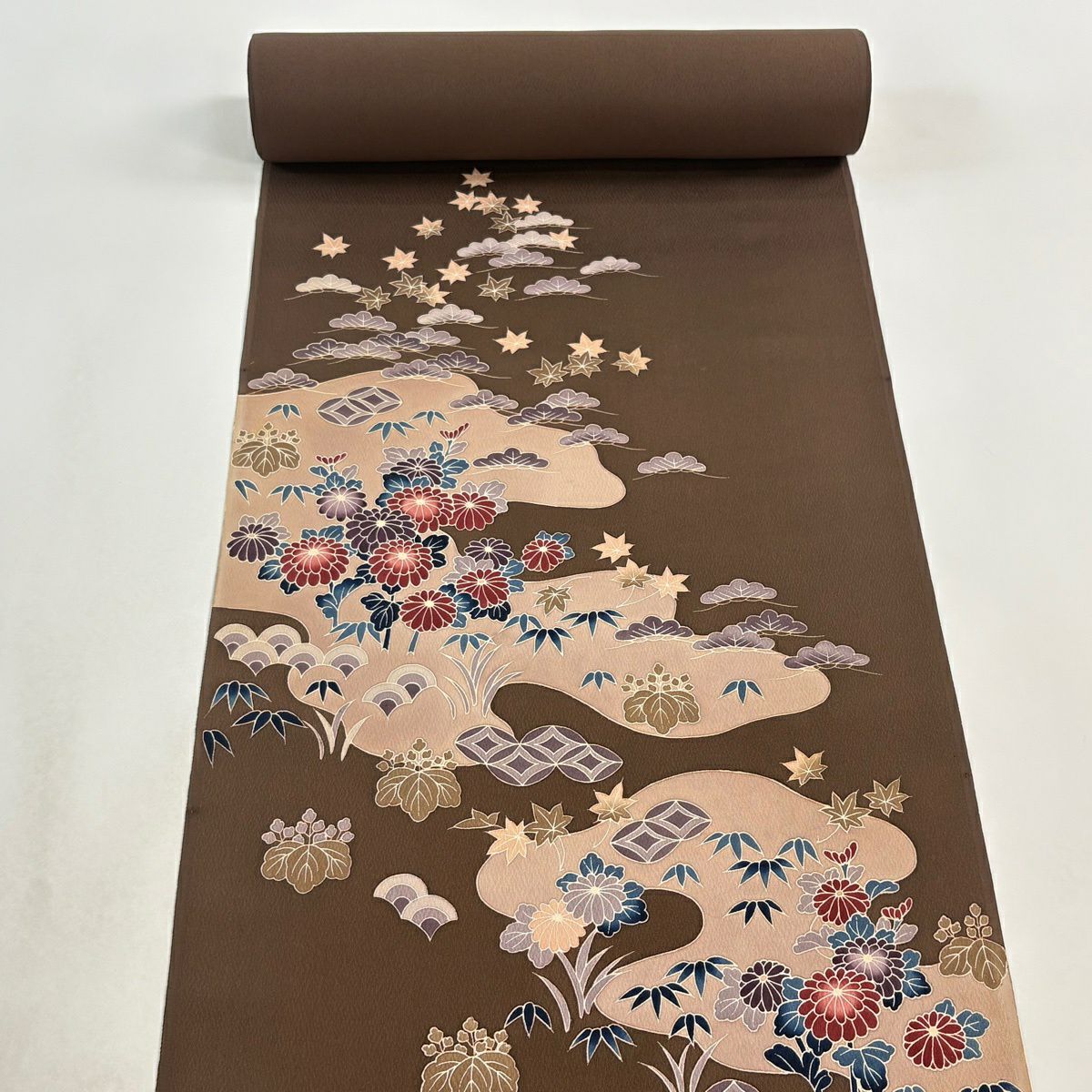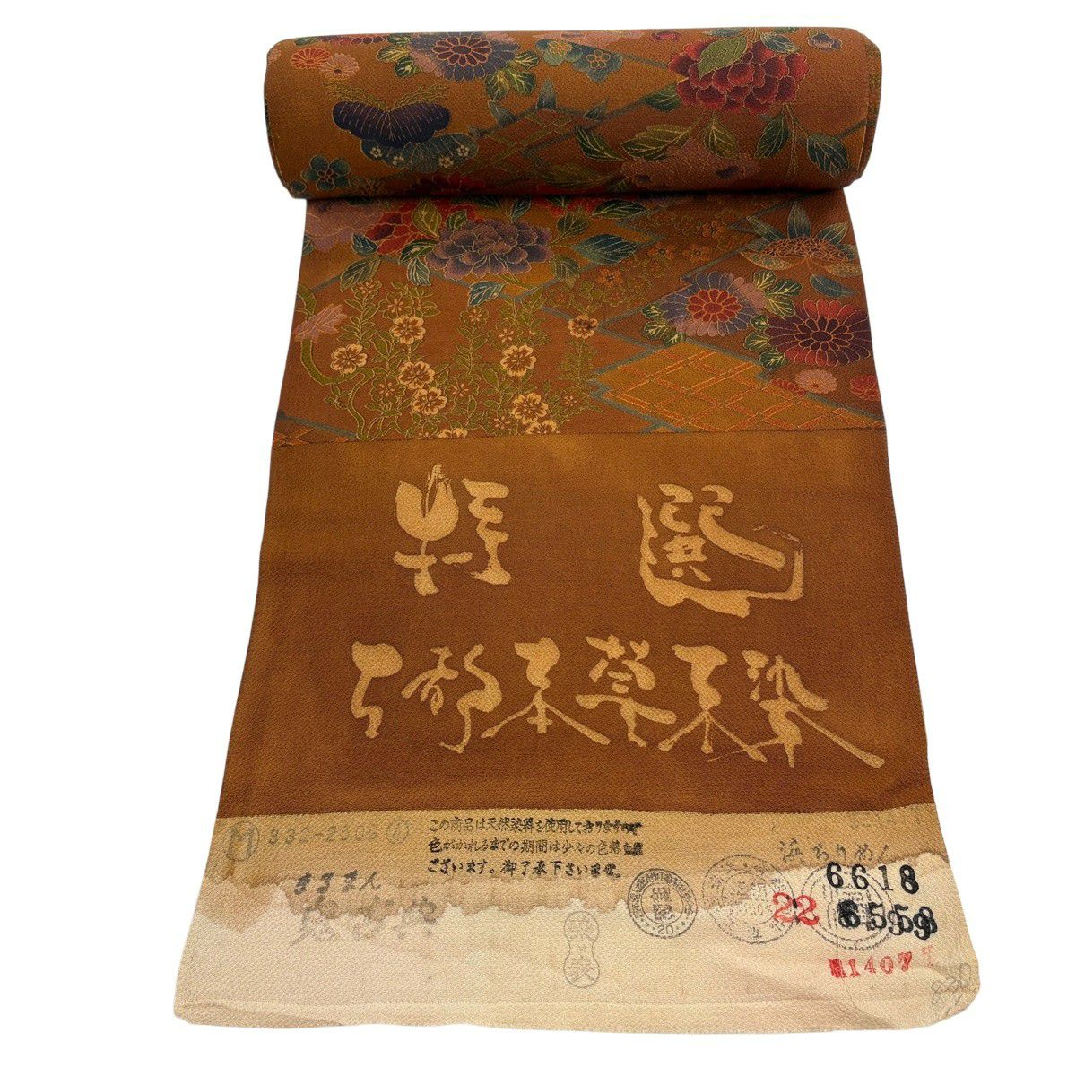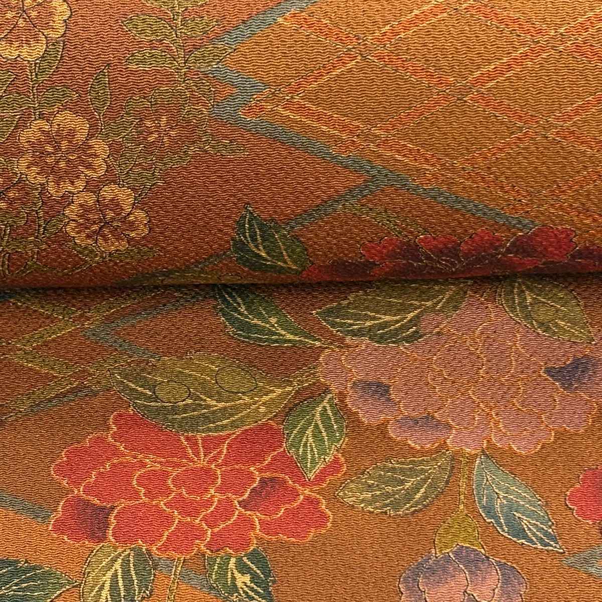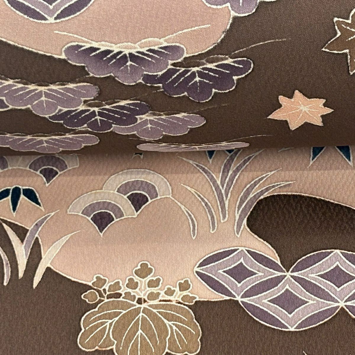 反物 秀品 小紋 草花 菱 茶色 正絹